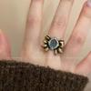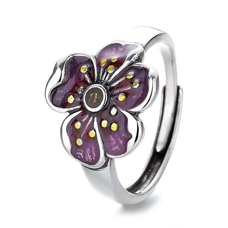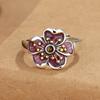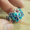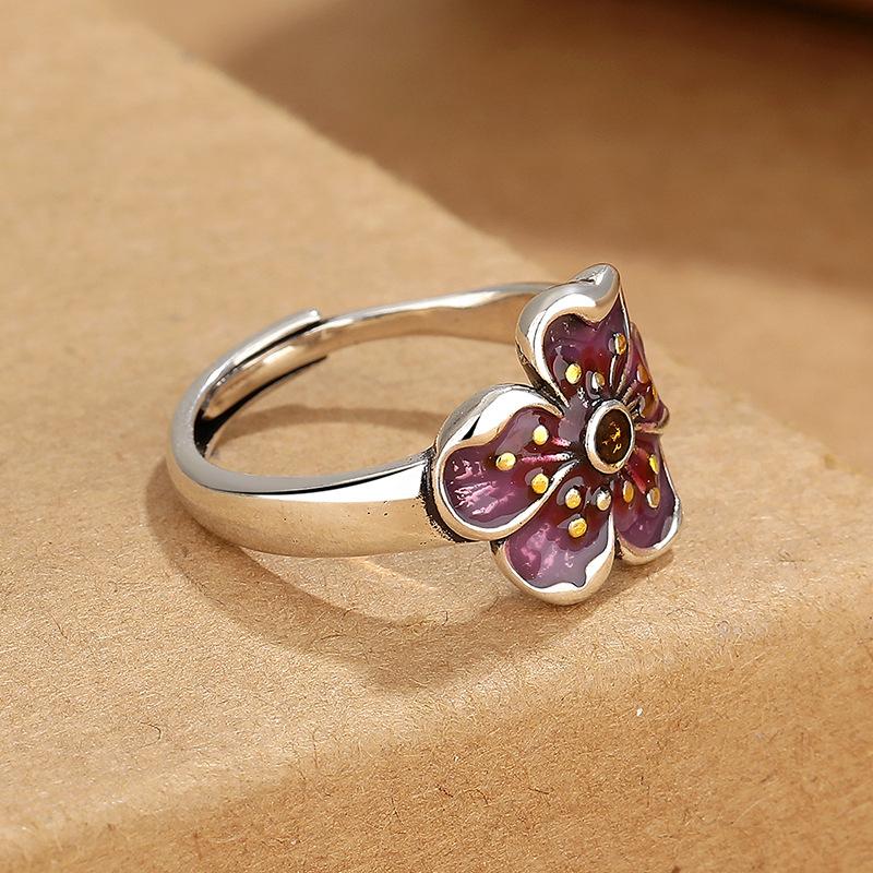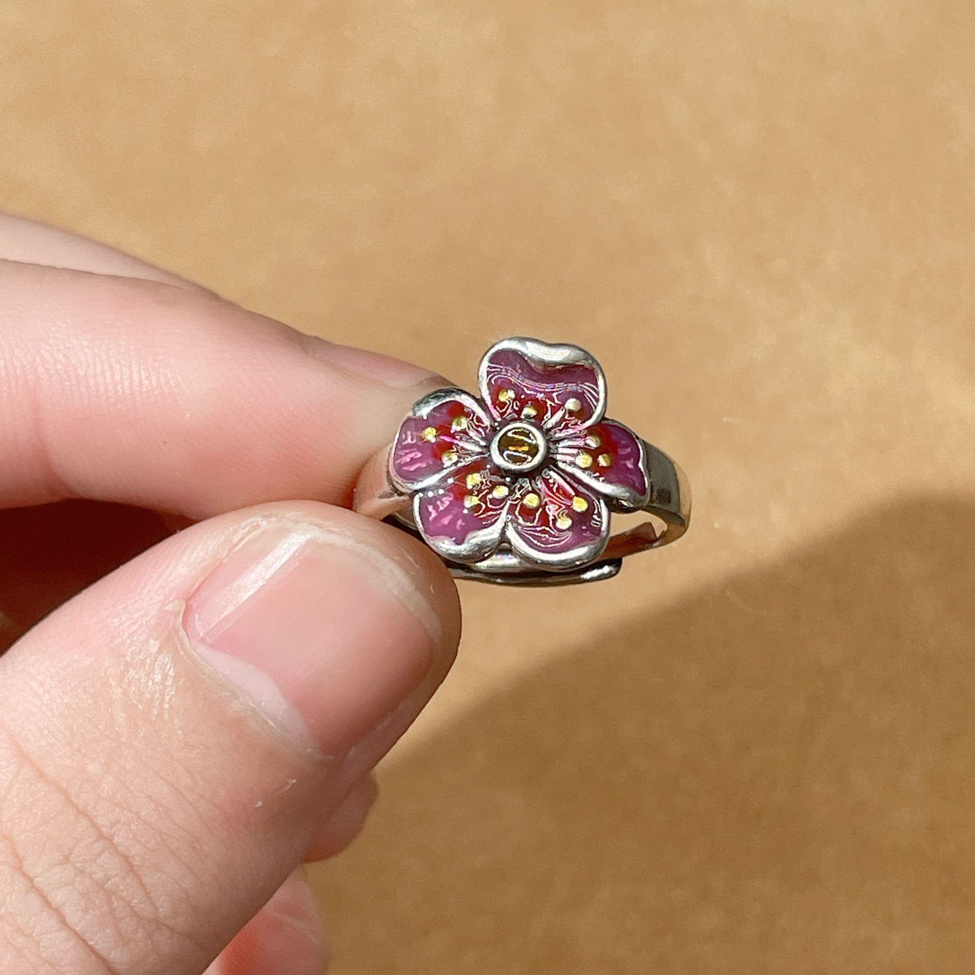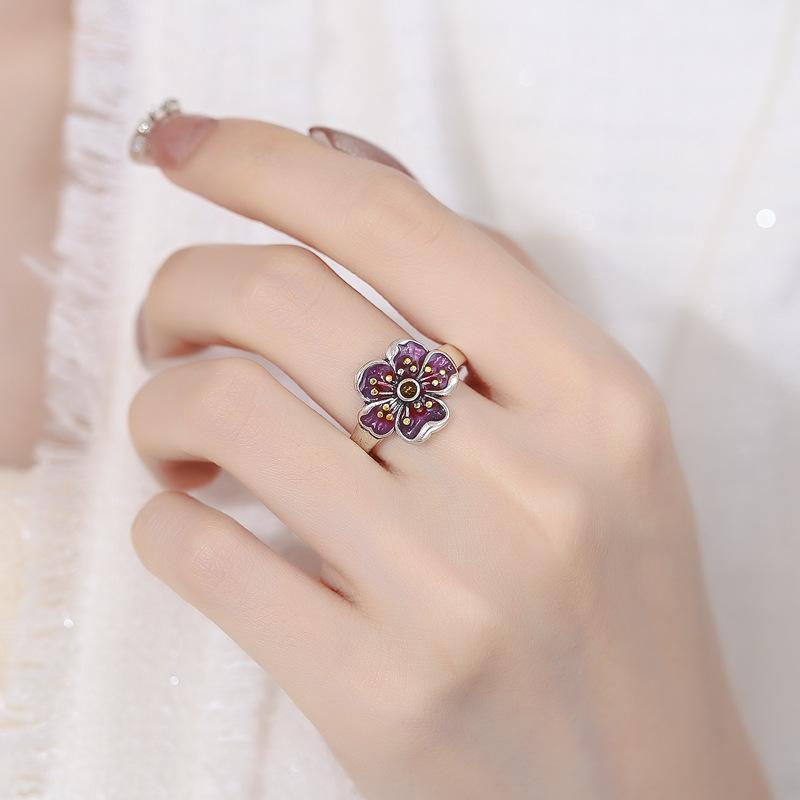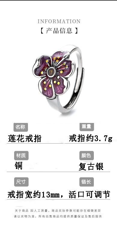 Anillo de loto rojo de esmalte cloisonné de estilo étnico para mujer, moda nacional, abierto ajustable, estilo literario, creativo, para el dedo índice