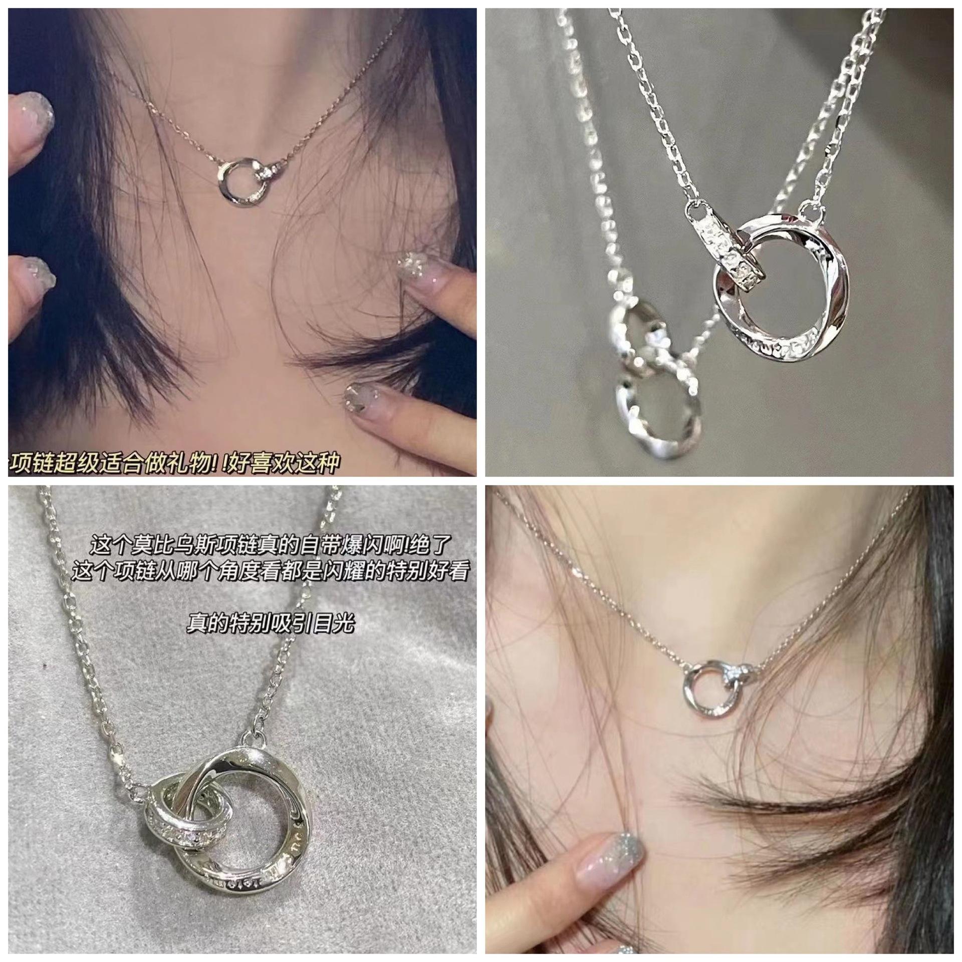 Collar con anillo Mobius estilo Ins, collar geométrico con doble anillo y letra, diseño de pareja, luz de sentido, cadena de clavícula de lujo de nicho.