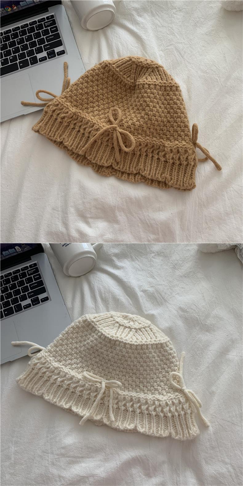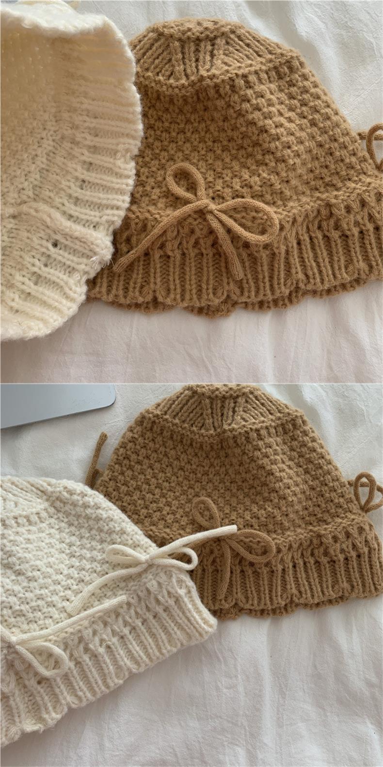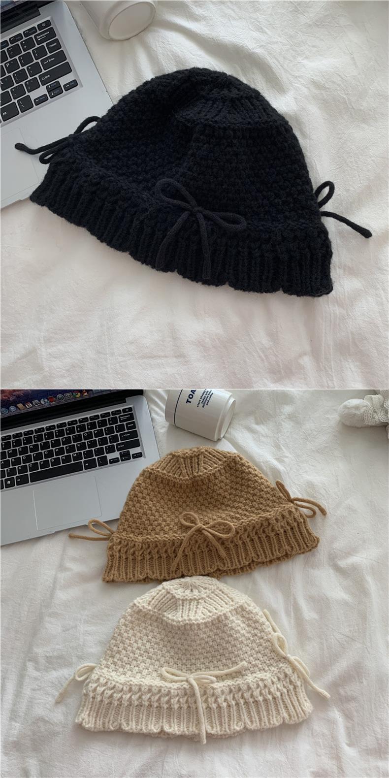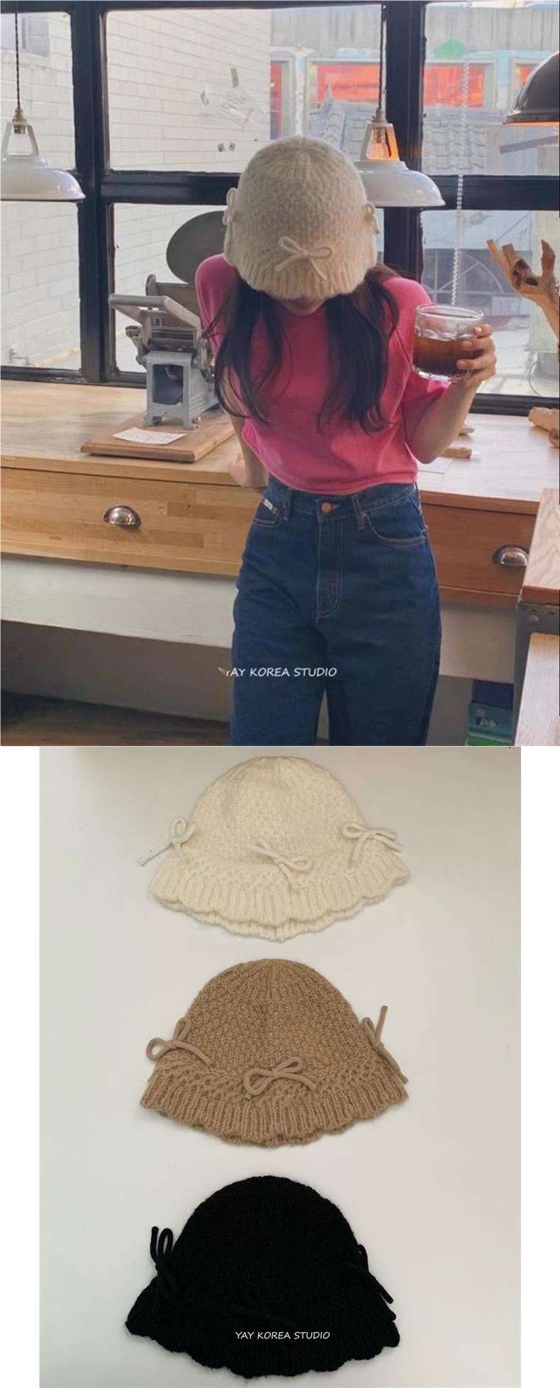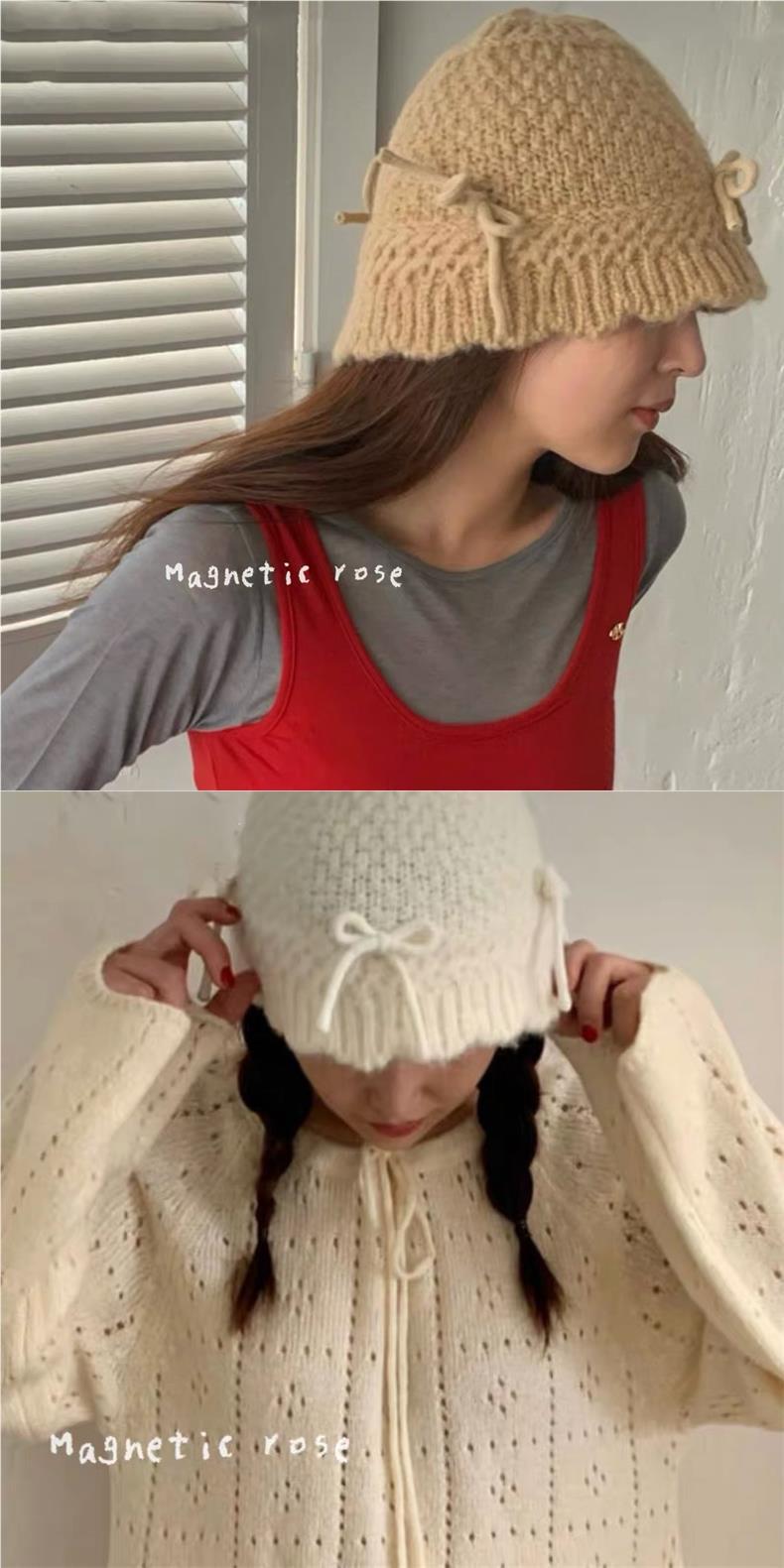 23 Corea del Sur nuevo agente de compras mismo otoño e invierno lazo tejido sombrero de pescador lana sombrero de cuenca femenino ins versátil nicho
