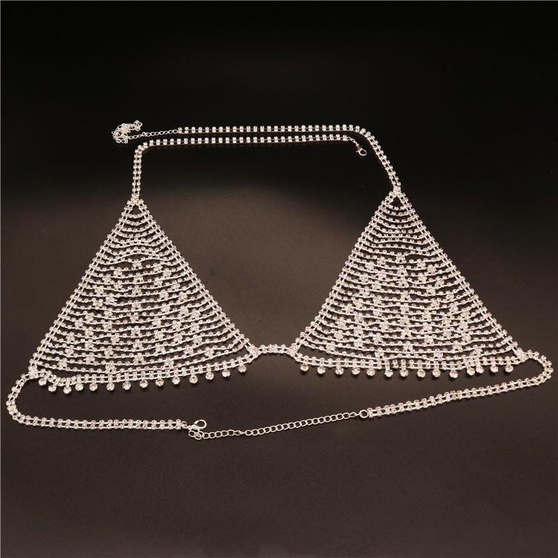 Cadena de cuerpo hueco sexy europea y americana para discoteca, cadena de sujetador con borlas multicapa y brillantes diamantes de imitación, accesorios transfronterizos, cadena para mujer
