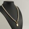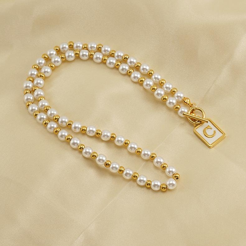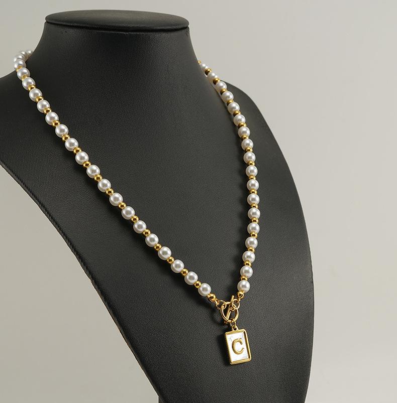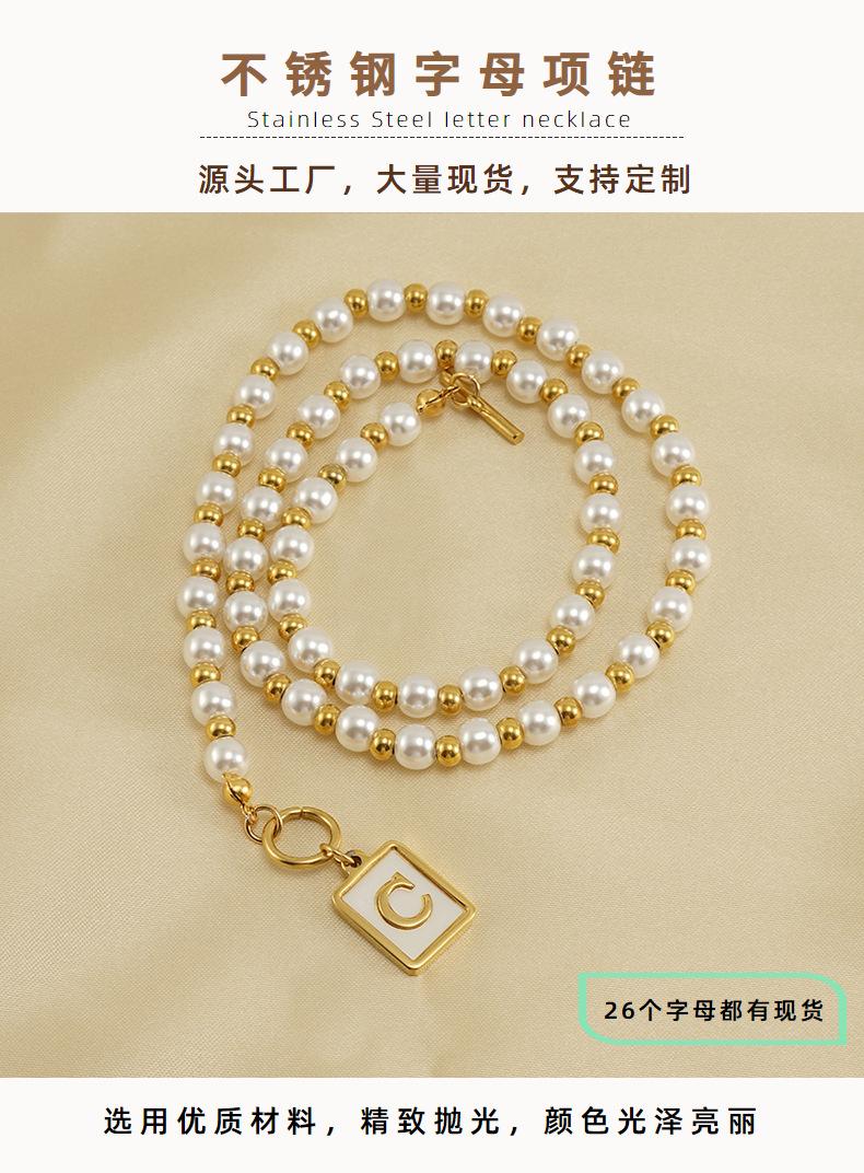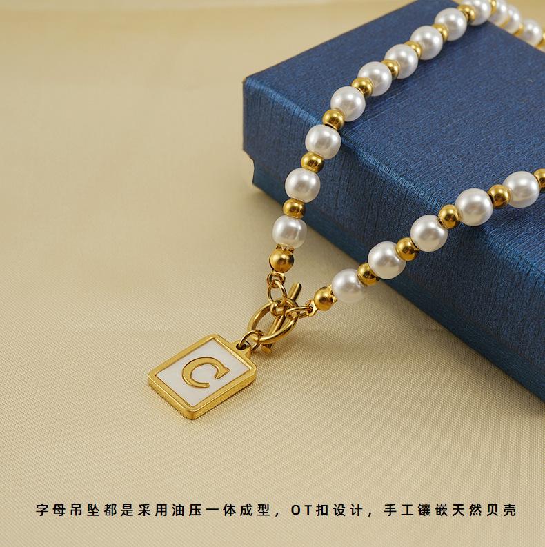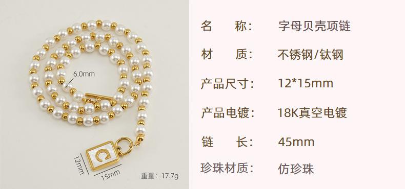 Collar de Acero de Titanio Cuadrado 26 Letras Mayúsculas Concha Europeo y Americano Acero Inoxidable 18K Cierre OT Colgante de Letra con Perla para Mujer