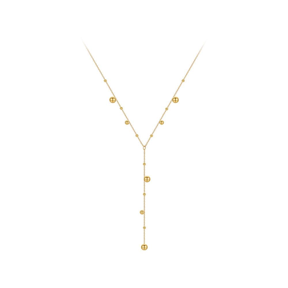 Collar de cadena de bolas de acero de titanio chapado en oro de 18 quilates con diseño de nicho, cadena de suéter personalizada, P233418