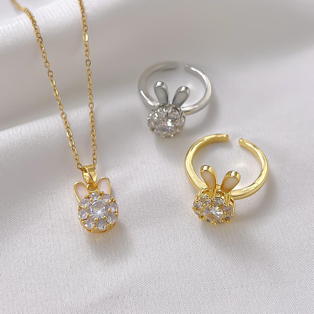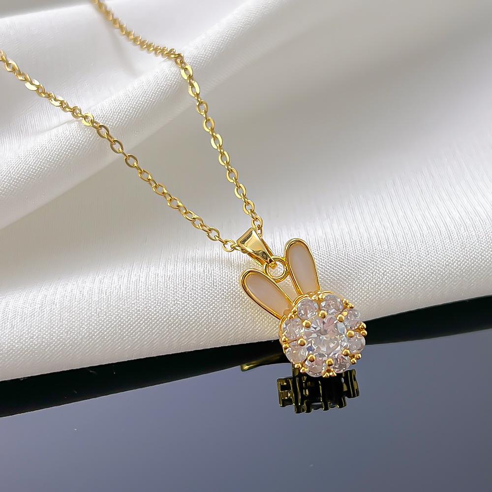 Collar de acero de titanio con diseño de conejo, dulce y fresco, accesorio decorativo para mujer, anillo de cobre, para el Año Nuevo Ben 2023