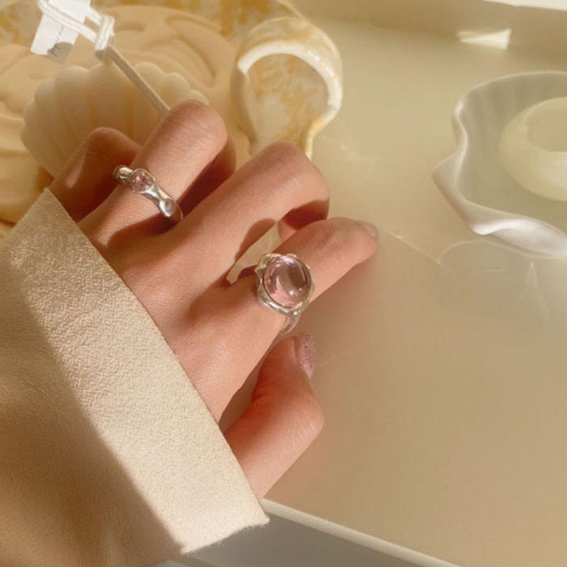 Anillo de Circonita Rosa Irregular Único de Lujo Ligero Estilo Coreano para Mujer Ins Minimalista Nicho Ajustable Anillo Abierto