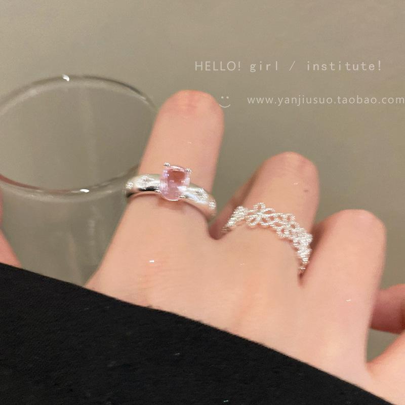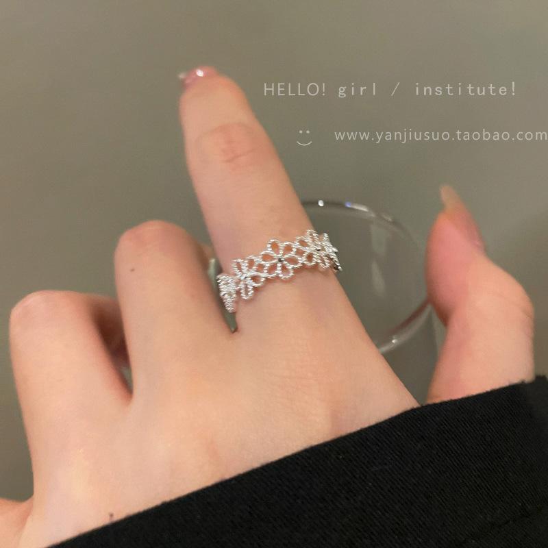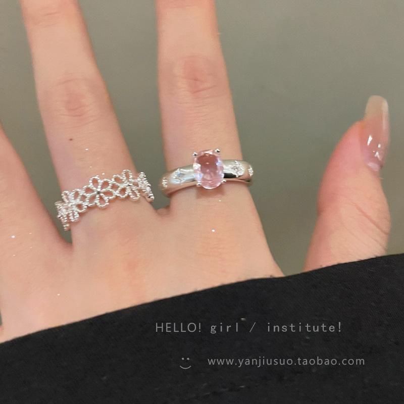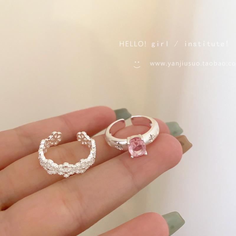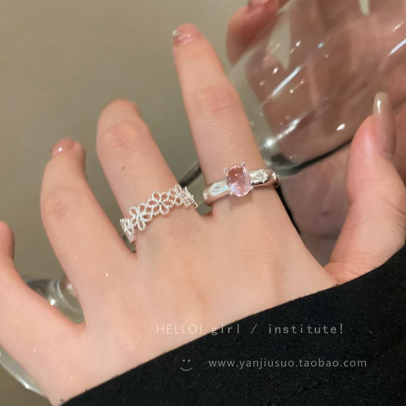 Anillo de Flor Hueca de Diamante Rosa Dulce Anillo Abierto de Temperamento Gentil para Mujer Diseño de Nicho Único Anillo para Dedo Índice