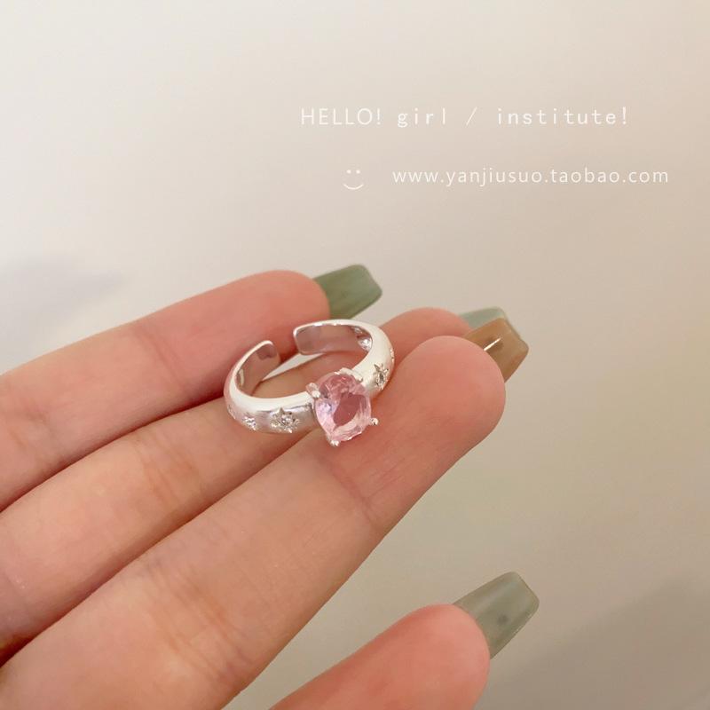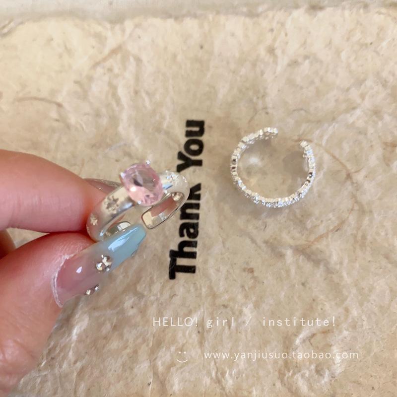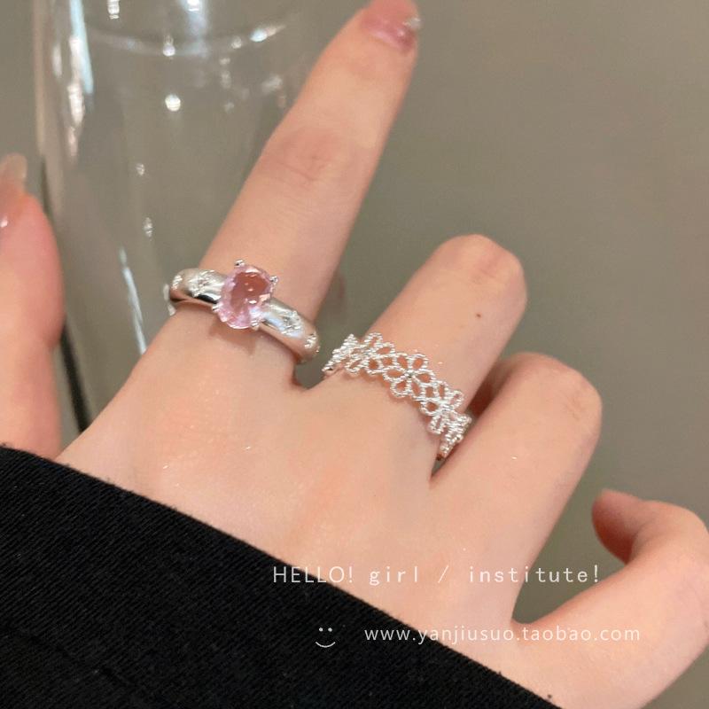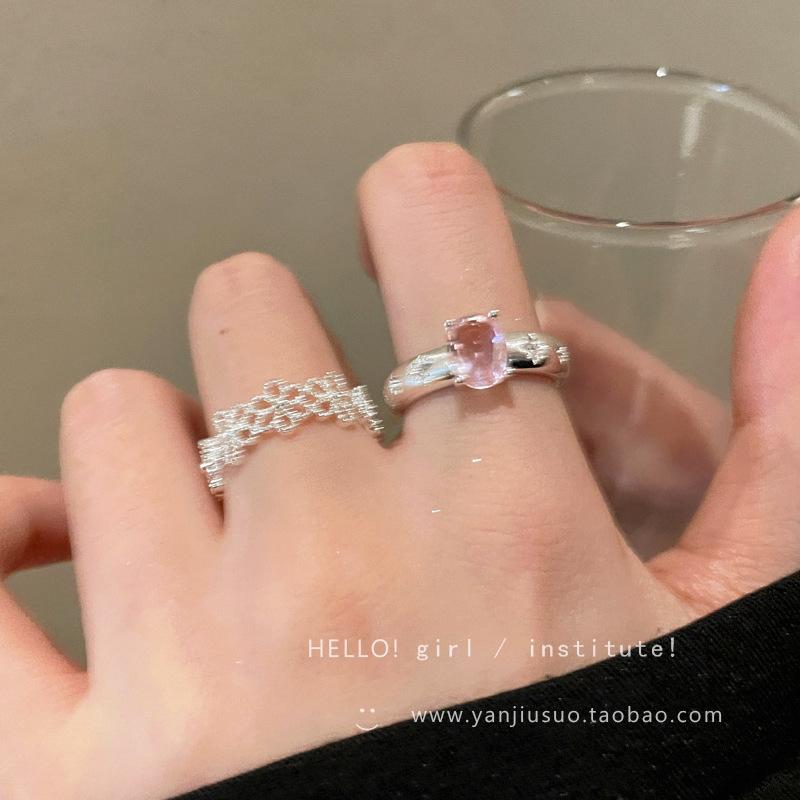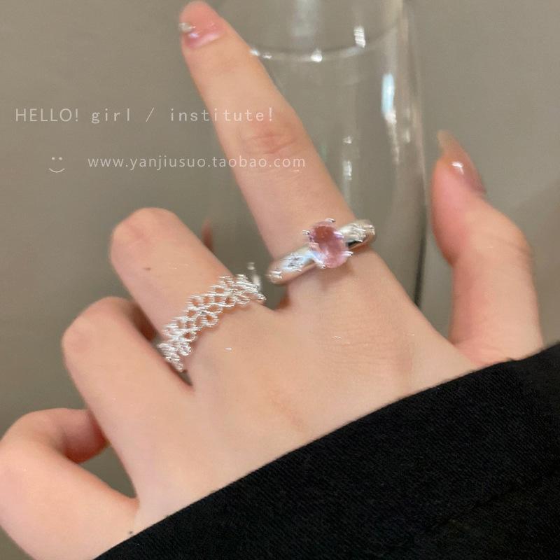 Anillo de Flor Hueca de Diamante Rosa Dulce Anillo Abierto de Temperamento Gentil para Mujer Diseño de Nicho Único Anillo para Dedo Índice