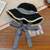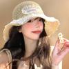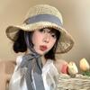 Sombrero de paja calado con cordones para mujer, verano, vacaciones junto al mar, sombrero de paja francés, ala grande, sombrero de playa para protección solar, moda