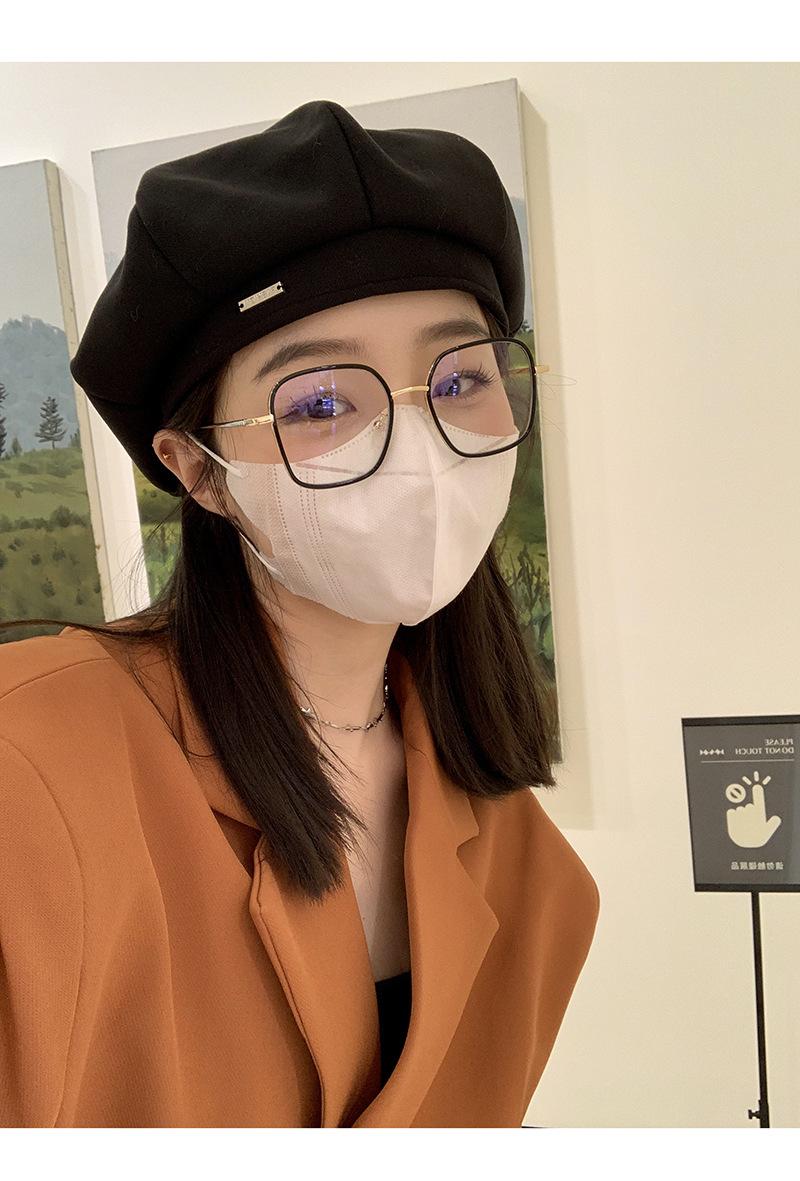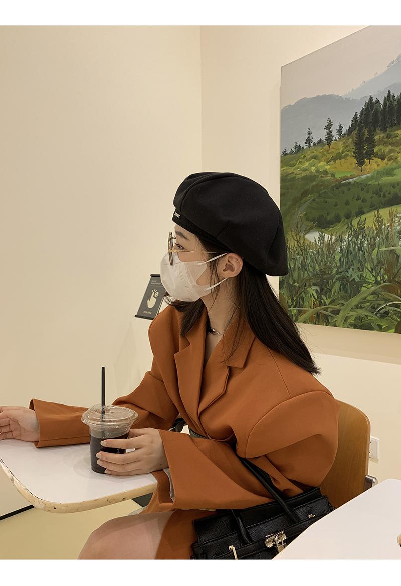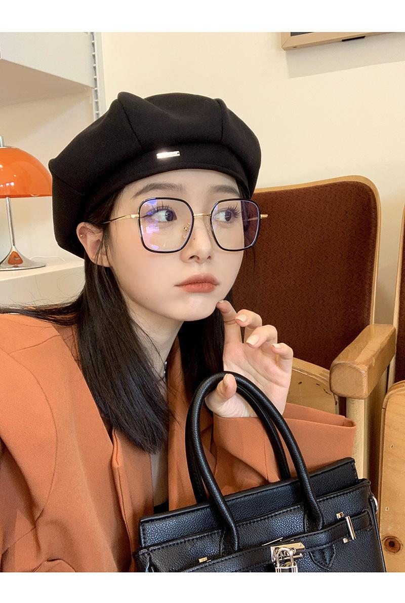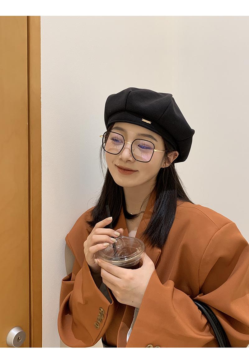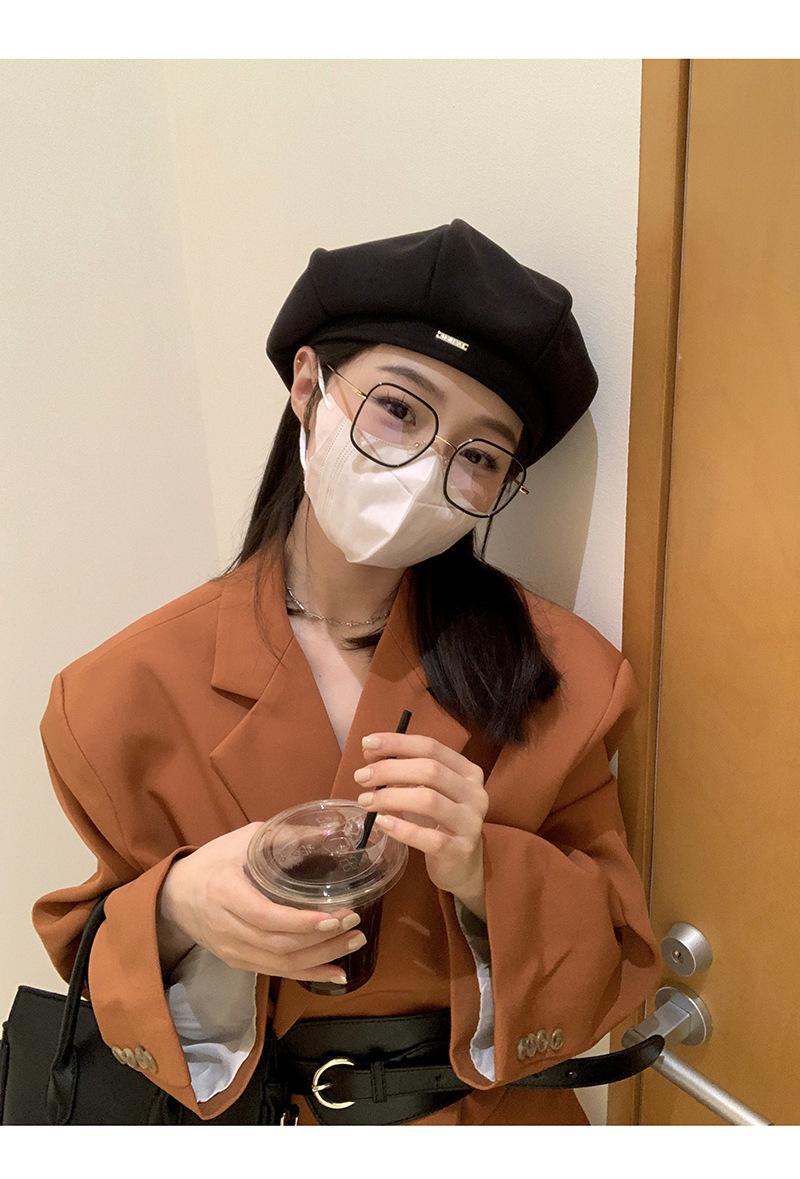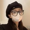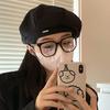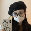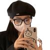 Boina negra para mujer, otoño e invierno, estilo japonés, gran circunferencia de la cabeza, sombrero de pintor octogonal de lana retro, que hace que el rostro parezca pequeño