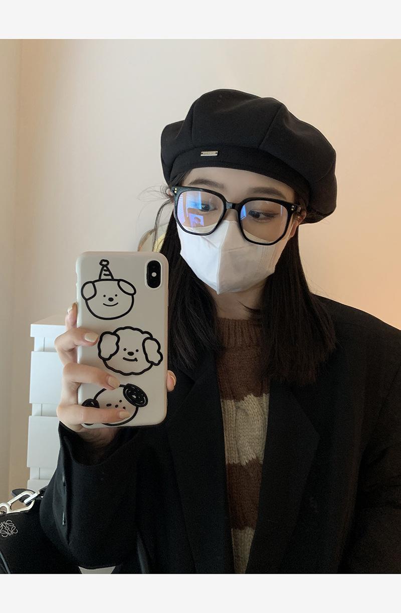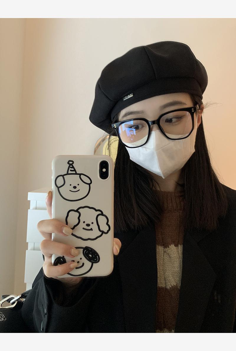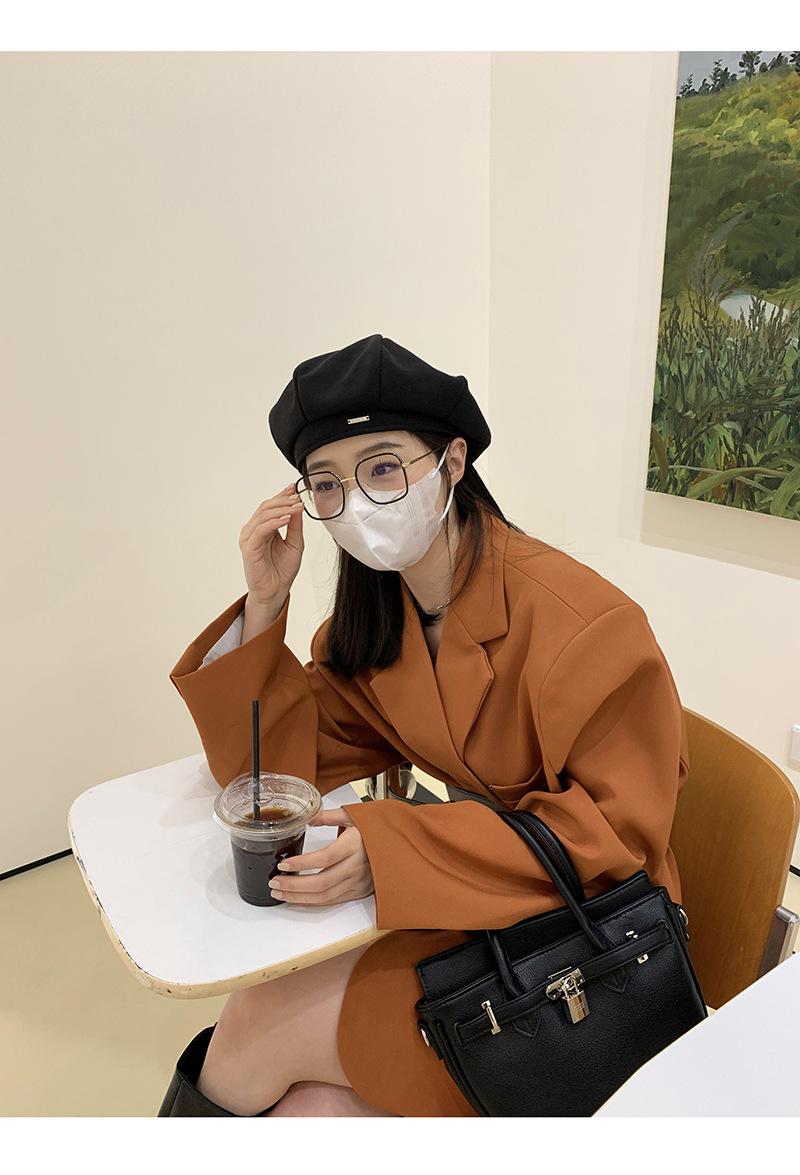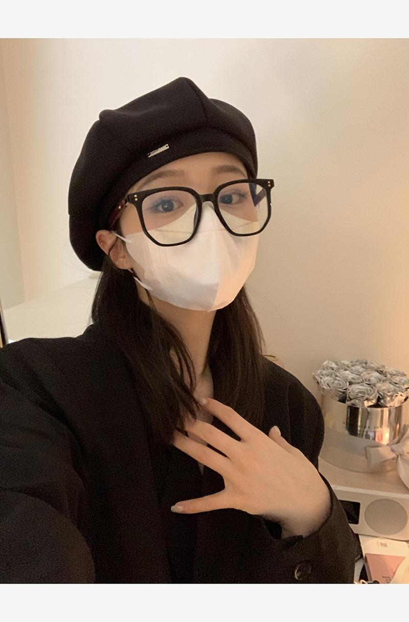 Boina negra para mujer, otoño e invierno, estilo japonés, gran circunferencia de la cabeza, sombrero de pintor octogonal de lana retro, que hace que el rostro parezca pequeño