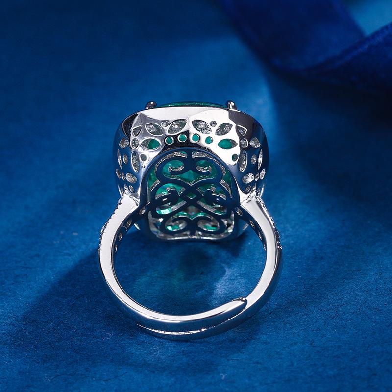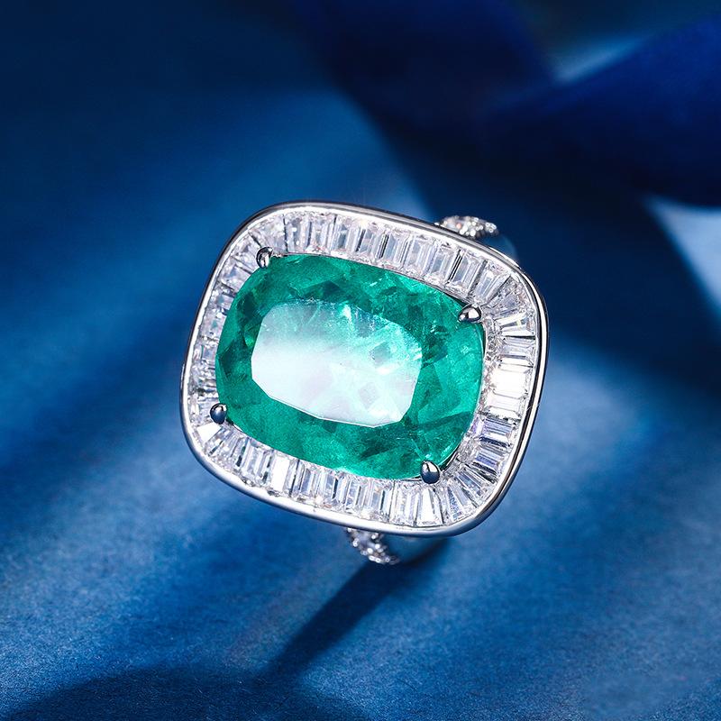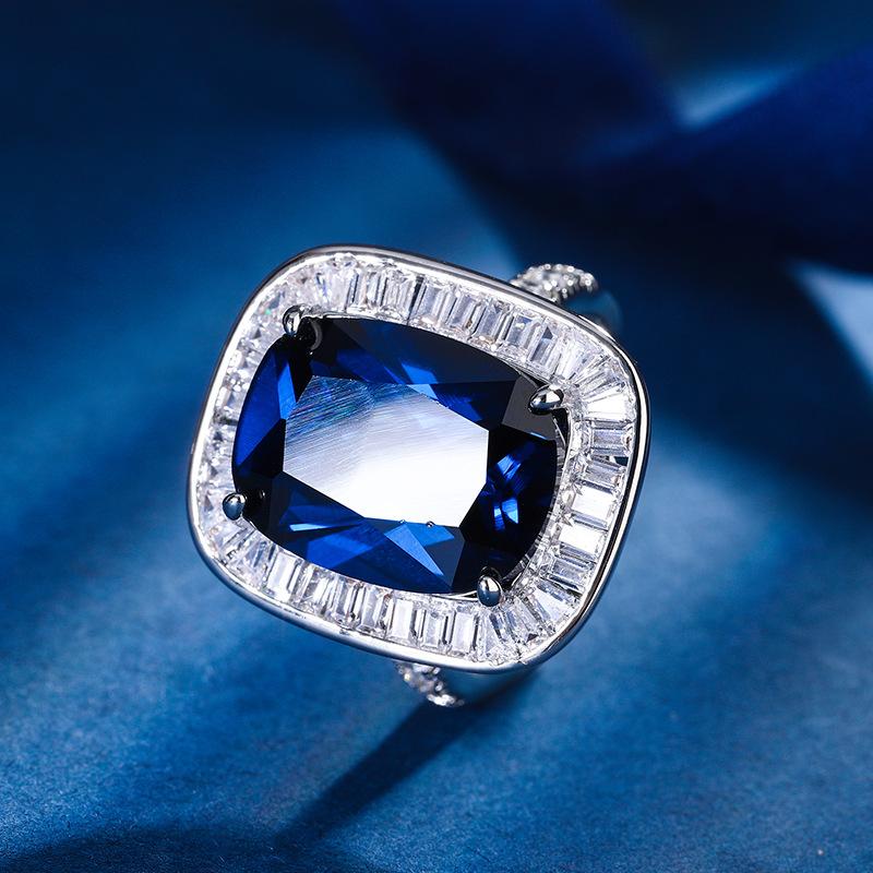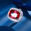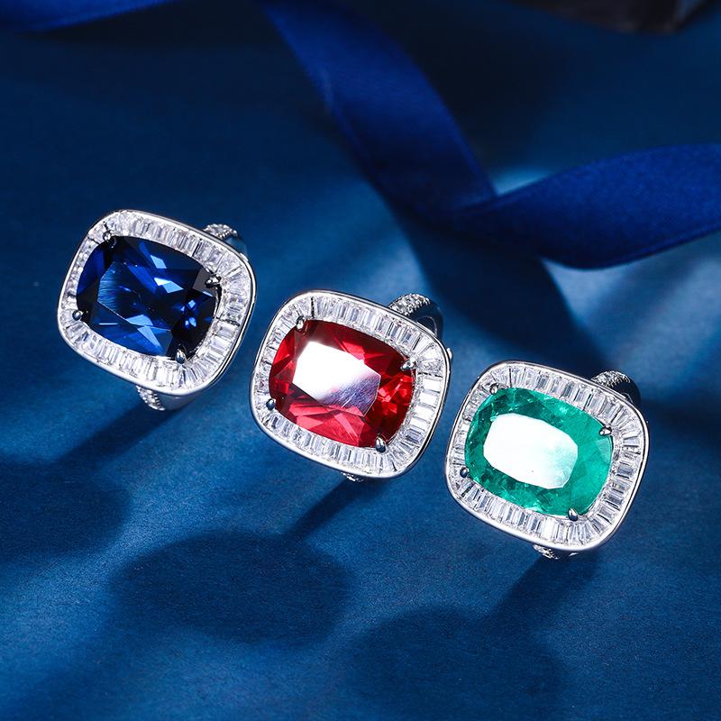 Anillo de lujo rectangular con luz y corindón de imitación chapado en oro y fondo de cobre de Zhuang Sheng, nuevo estilo 2024, para mujer, 12 x 16