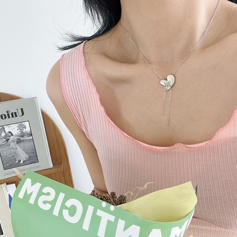 Collar con colgante de cadena de clavícula con estilo coreano, de plata de ley S925, ligero y lujoso, ideal como regalo de cumpleaños para mujer.