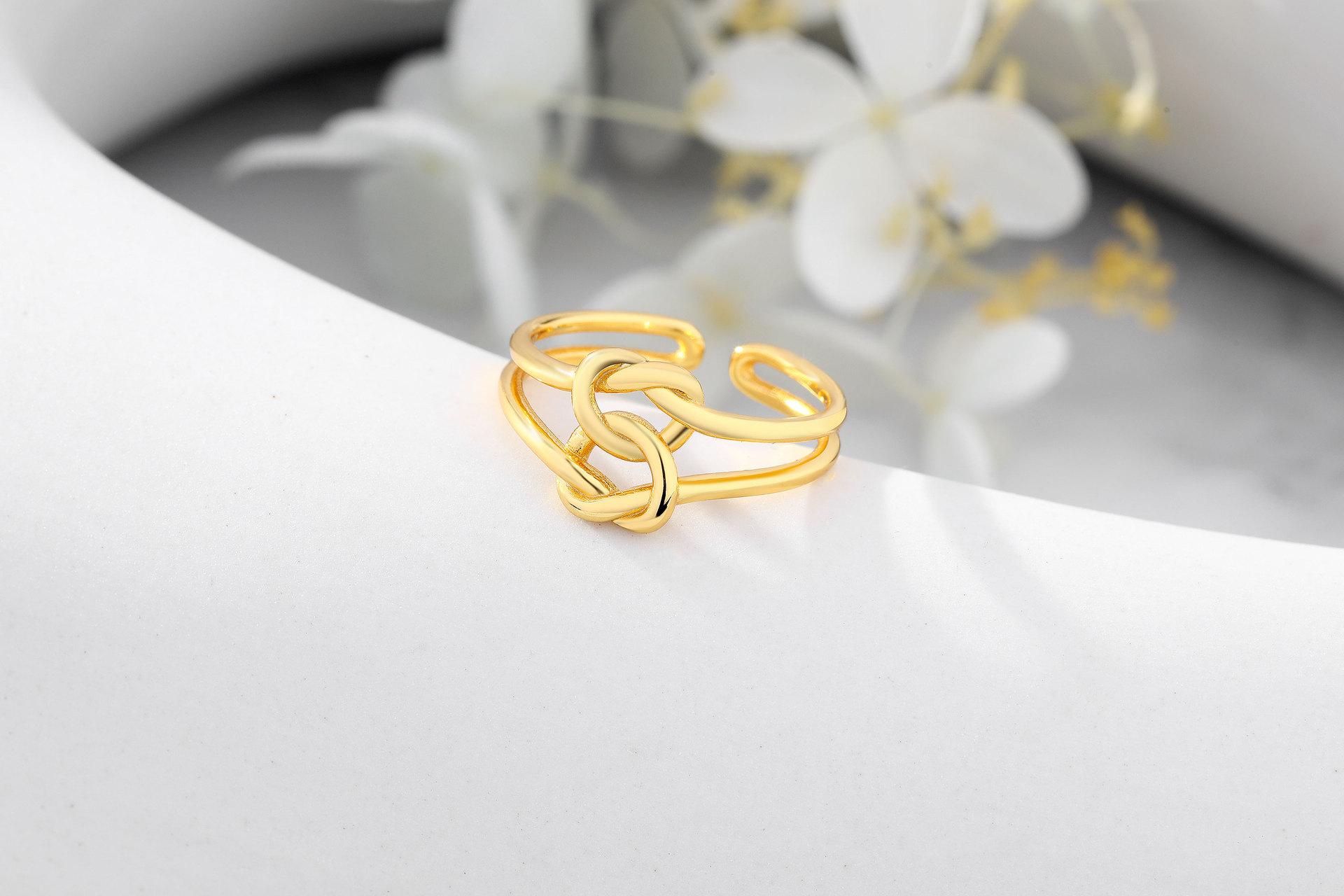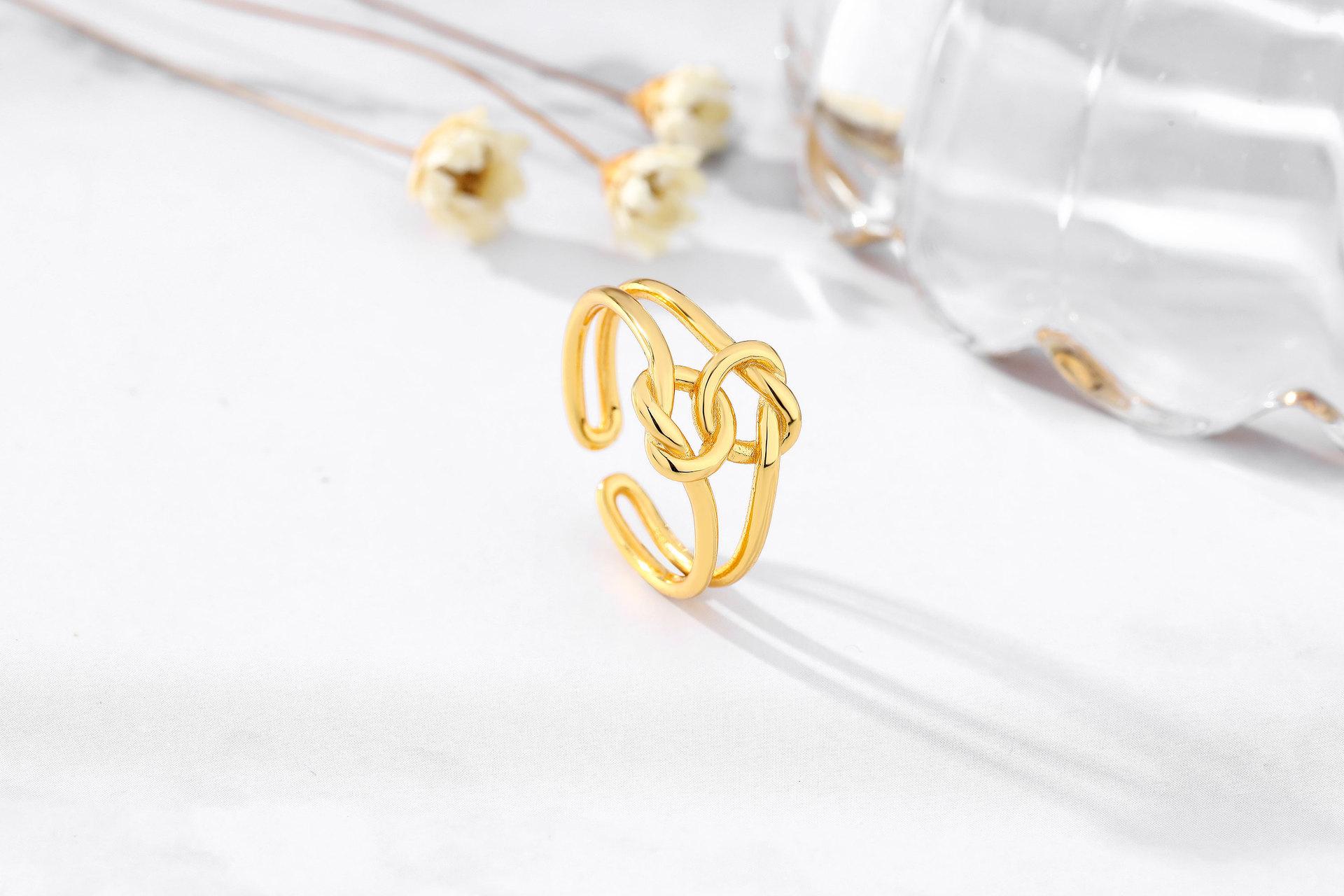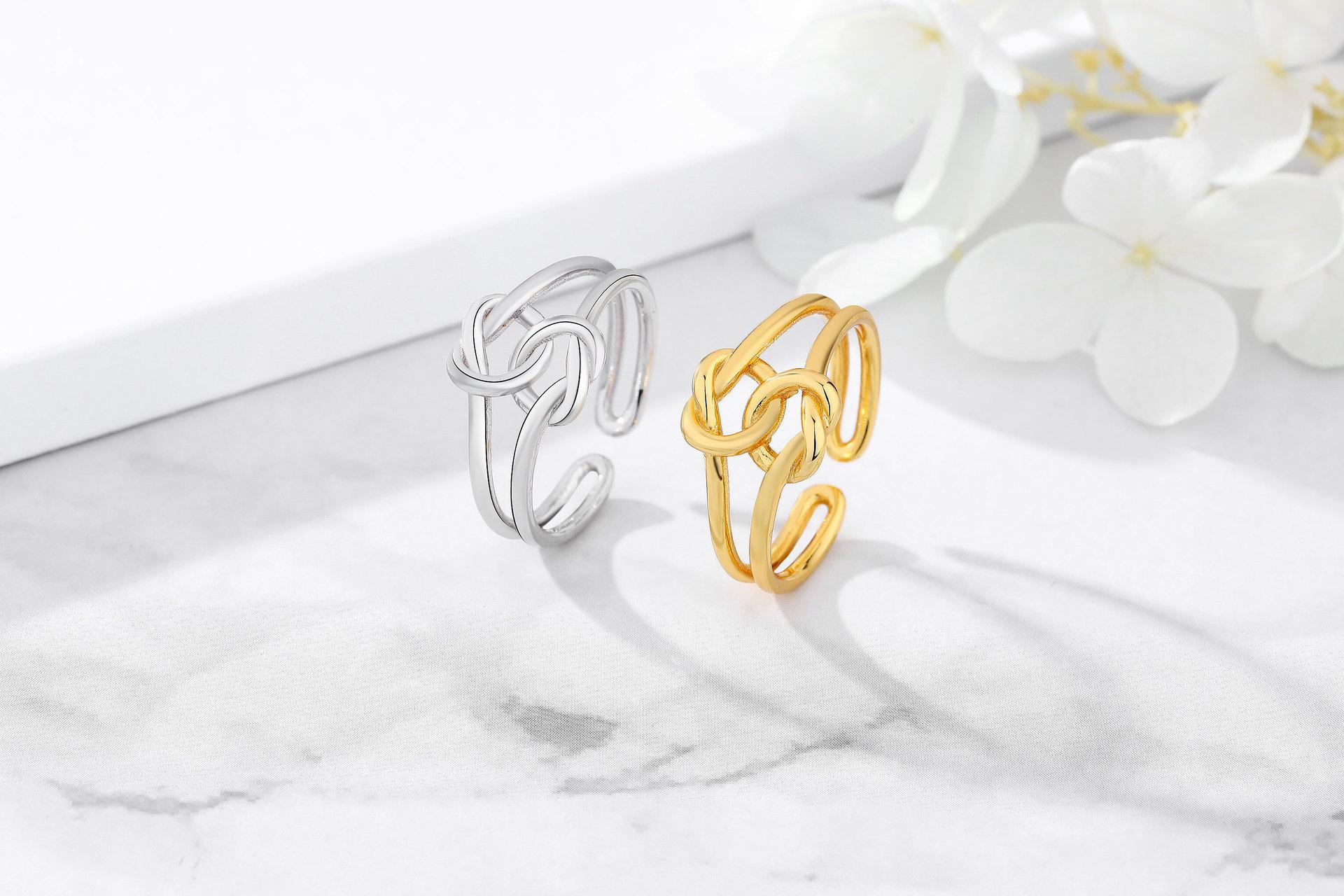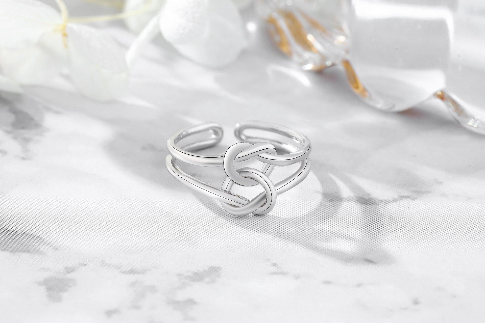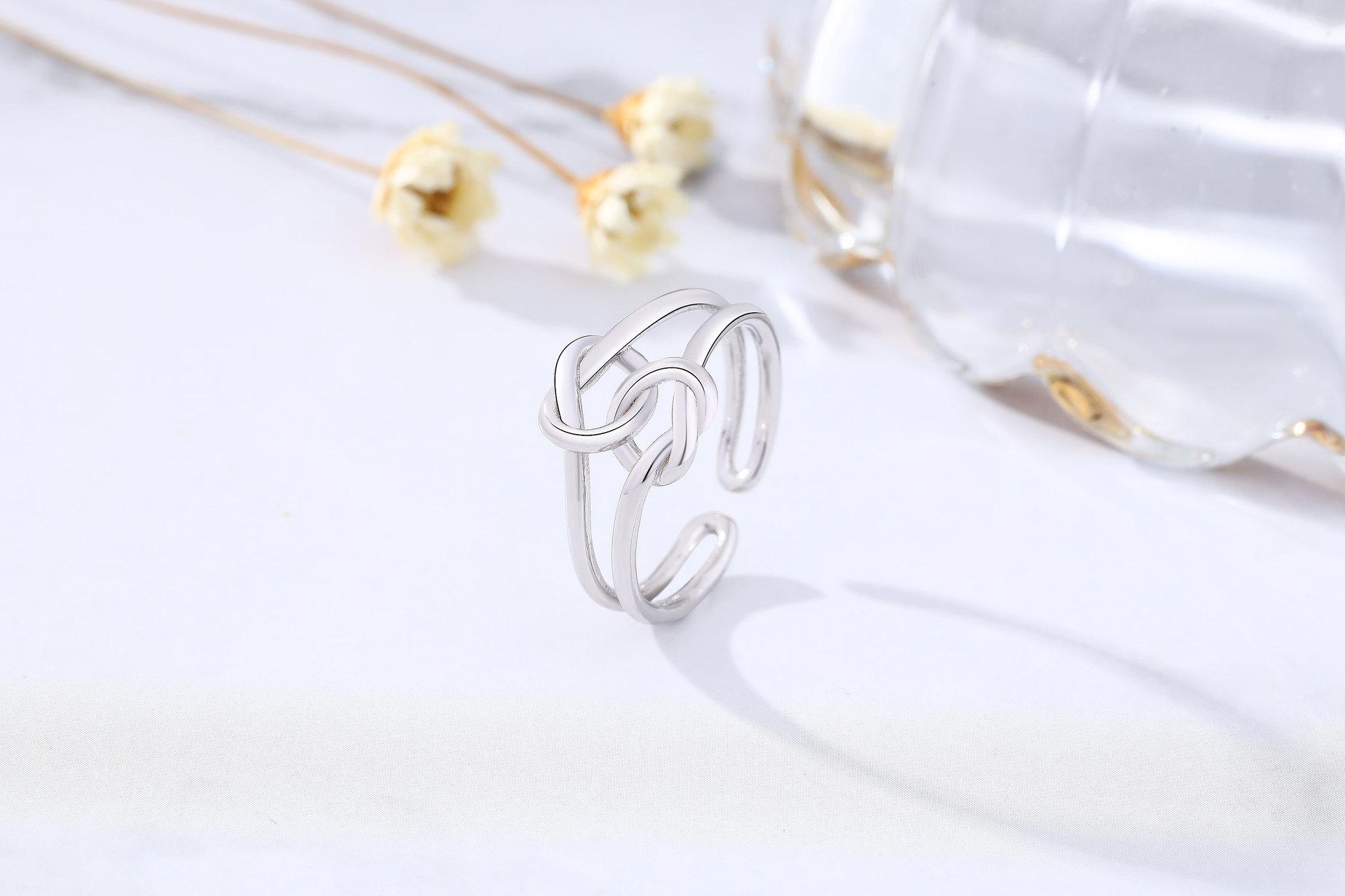 Anillo de Línea de Lazo de Doble Capa de Plata Esterlina S925 Transfronterizo para Mujeres Diseño de Moda Europeo y Americano Anillo de Estilo Frío Abierto