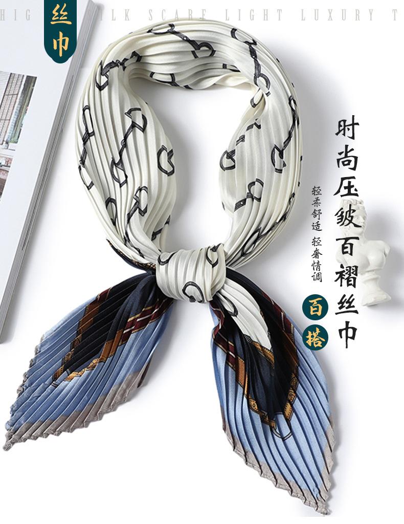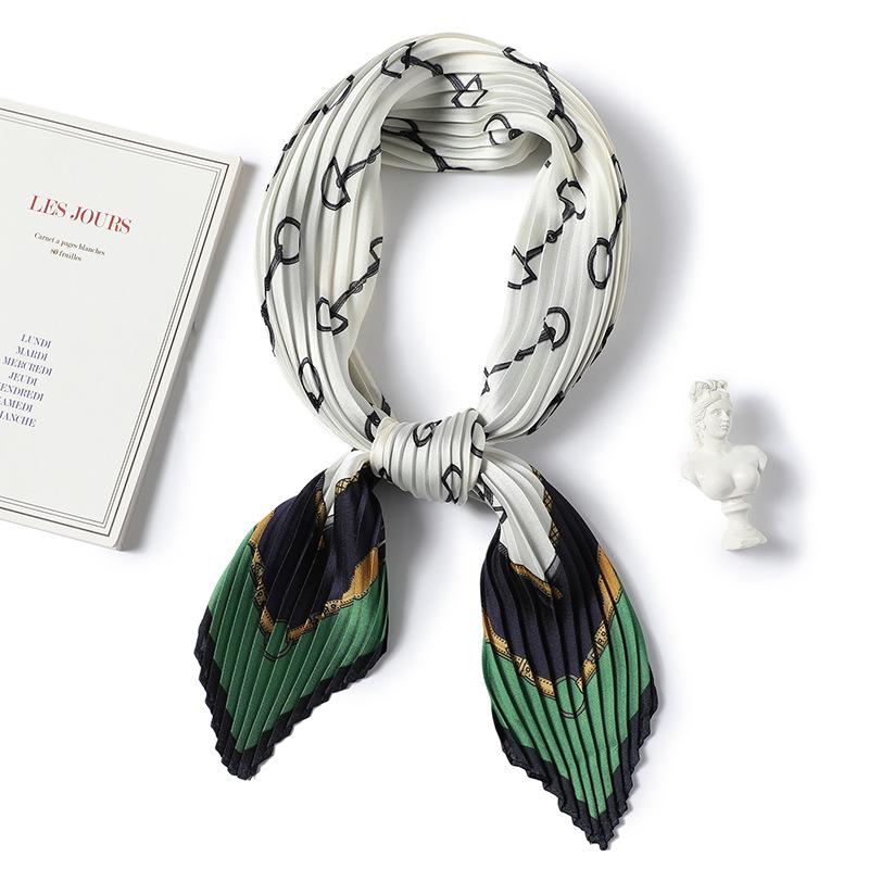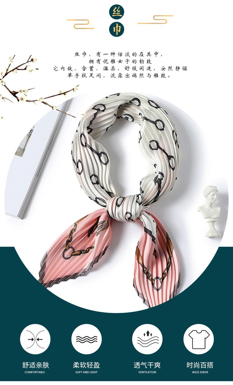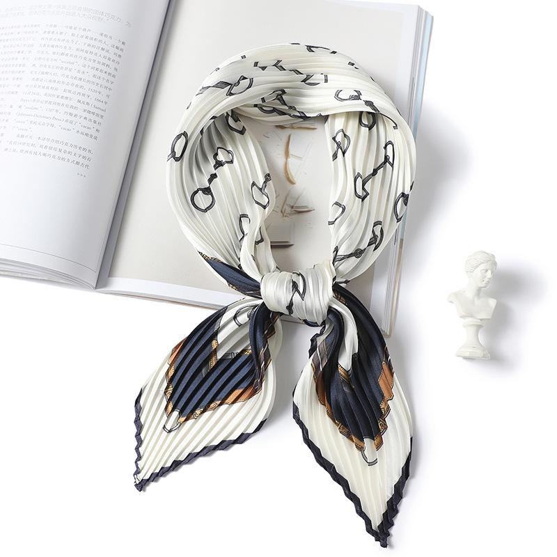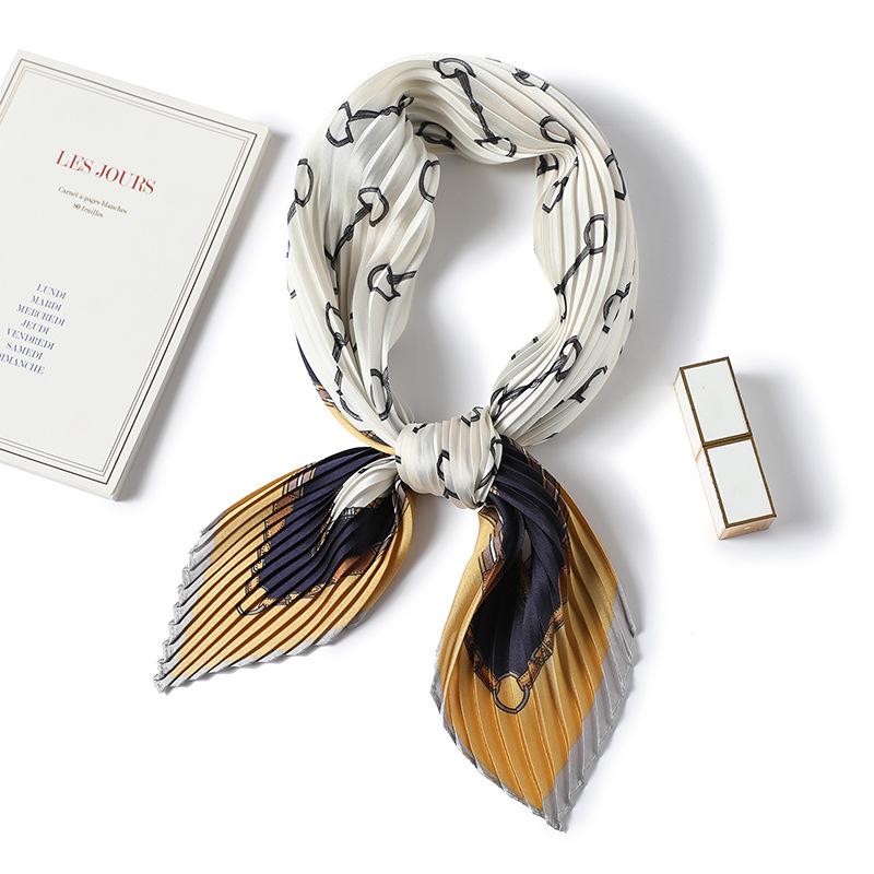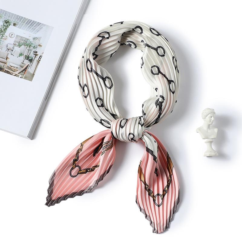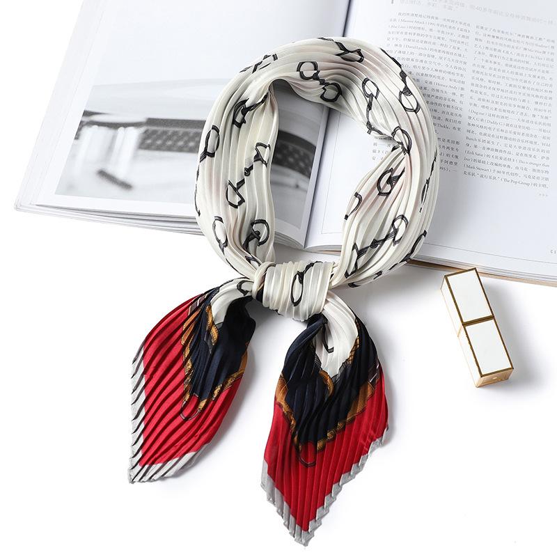 Bufanda de seda sencilla y moderna para mujer, pequeña y arrugada, cuadrada, de 70 cm, combina con todo, con cinturón decorativo.