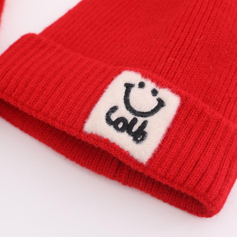 Gorro para niños, gorro de punto de invierno, gorro cálido de algodón para niño, bufanda, conjunto de dos piezas, gorro de lana con cara sonriente para niña, marea