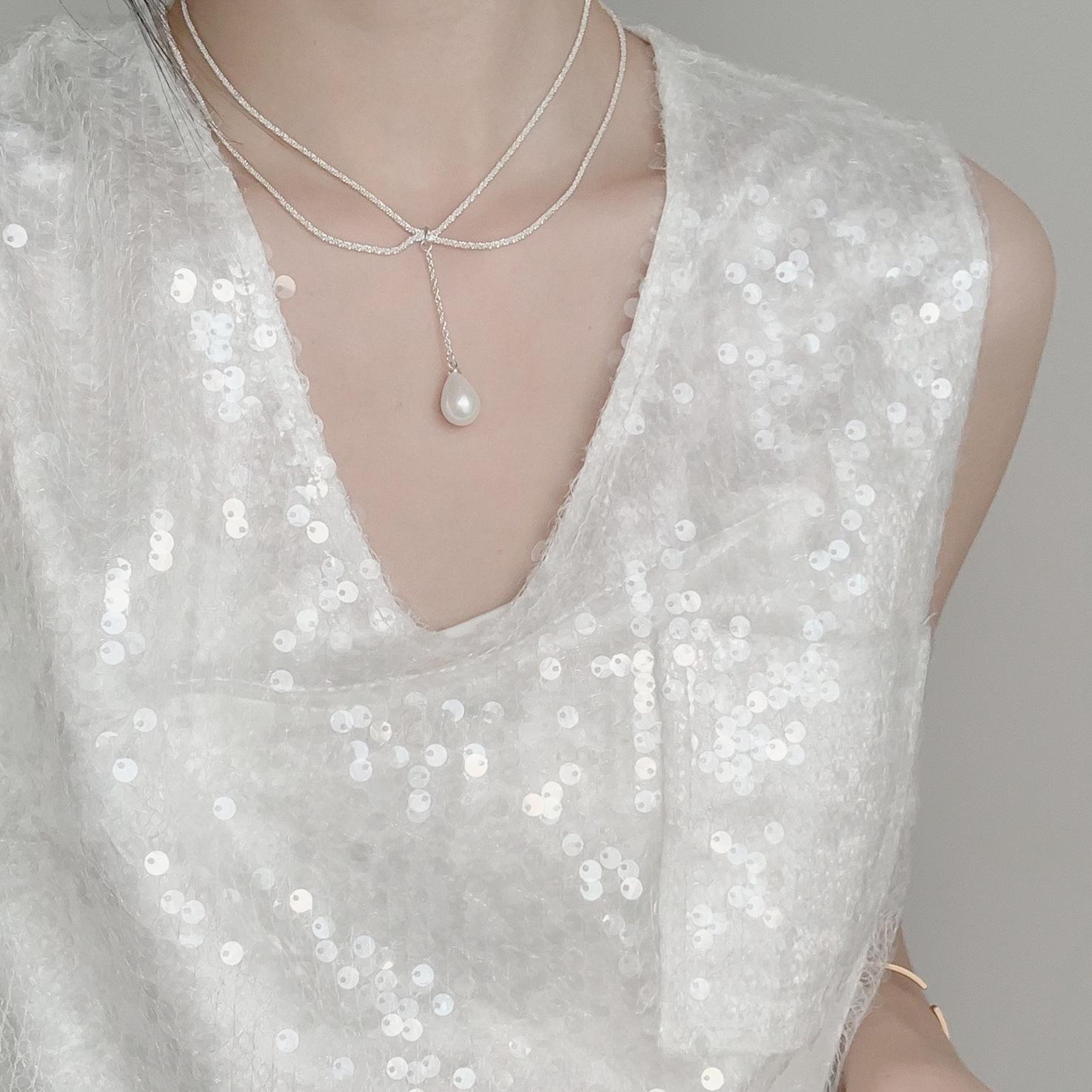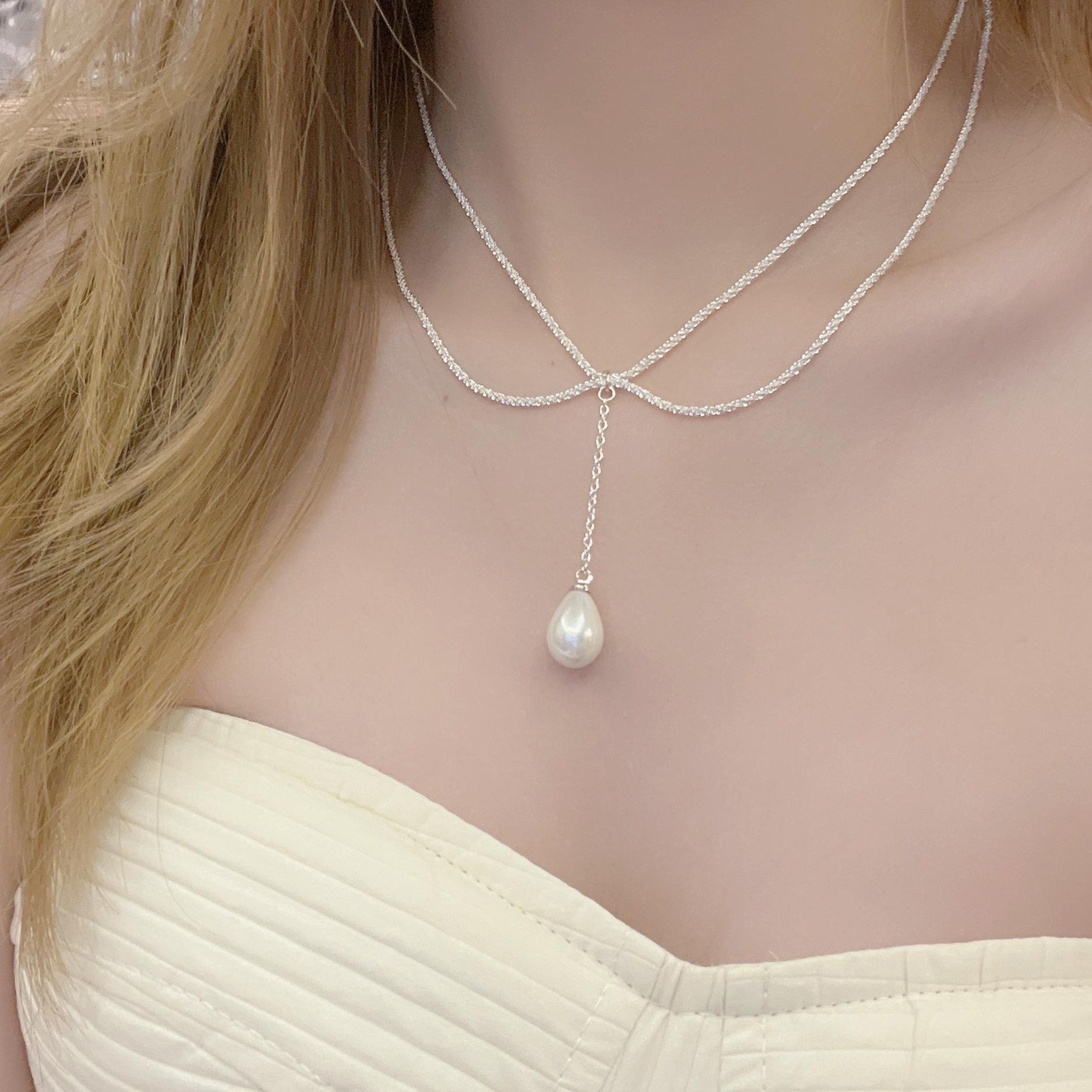 Collar de perlas de hadas Super Flash para mujer, dulce y picante, ligero, de lujo, diseño de nicho, vestido, cadena de clavícula, ligero, de lujo, colgante de estilo francés.