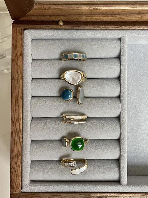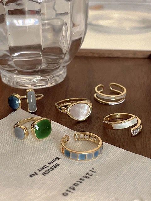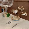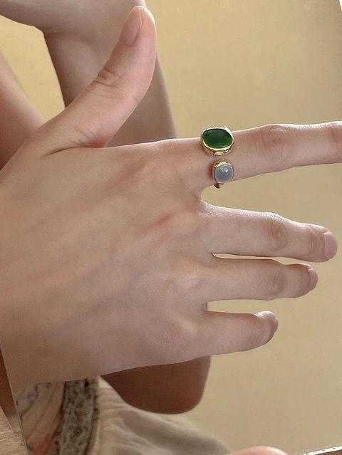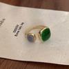 Diseño de anillo con sentido de alta personalidad de moda femenina estilo frío nicho estilo japonés lujo ligero europeo y americano ins dedo esmeralda