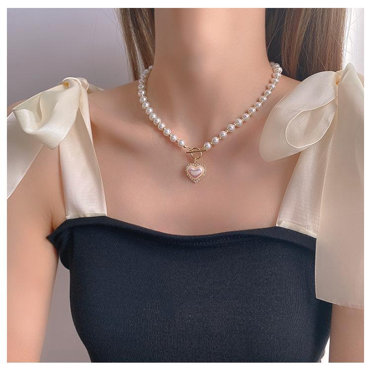 Collar de perlas de lujo ligero y amor para mujer, nuevo diseño de nicho de moda 2022, cadena de clavícula, cadena de cuello de moda versátil