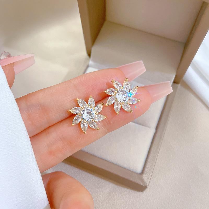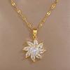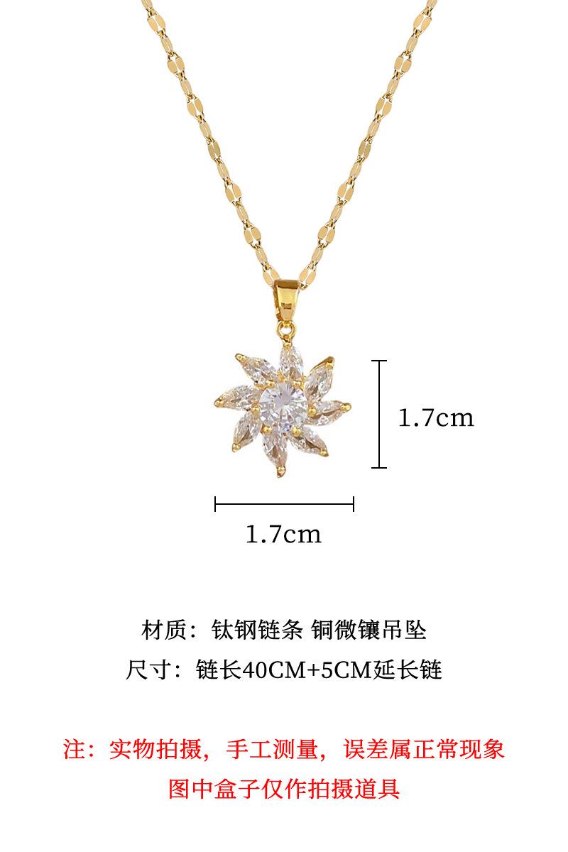[Acero de titanio] Collar con microincrustaciones y pendientes, ligeros y lujosos, con flores giratorias y personalidad, elegantes aretes para banquetes y collares combinados.