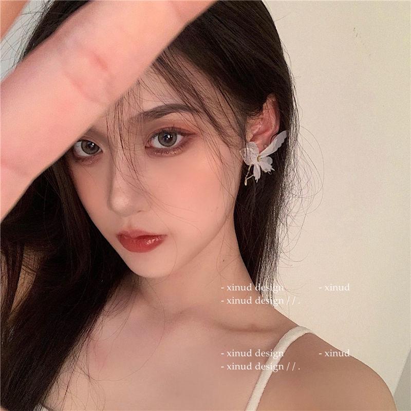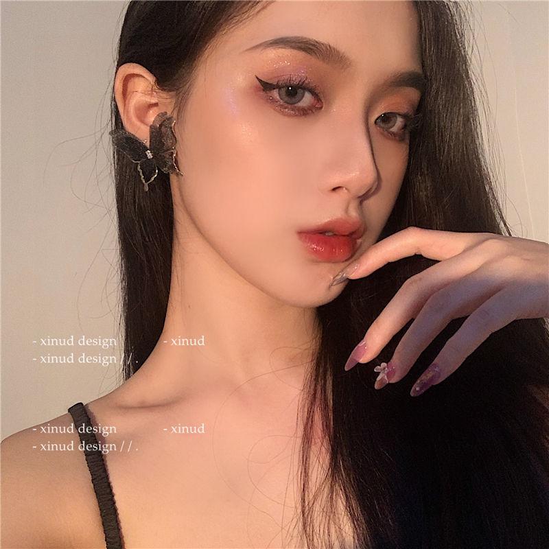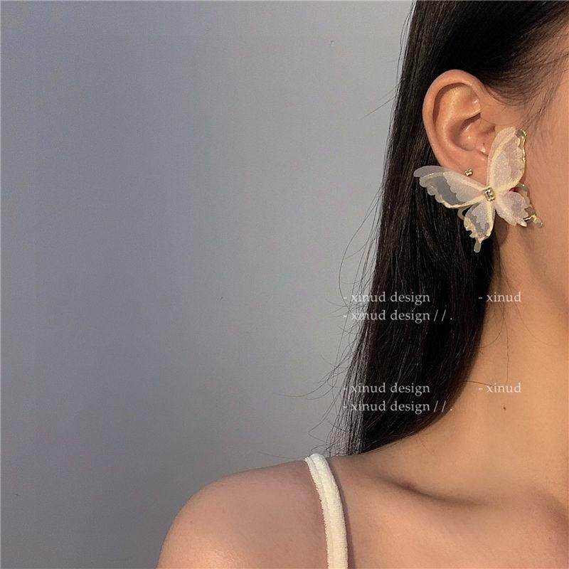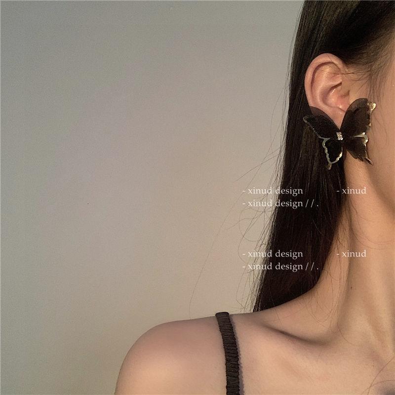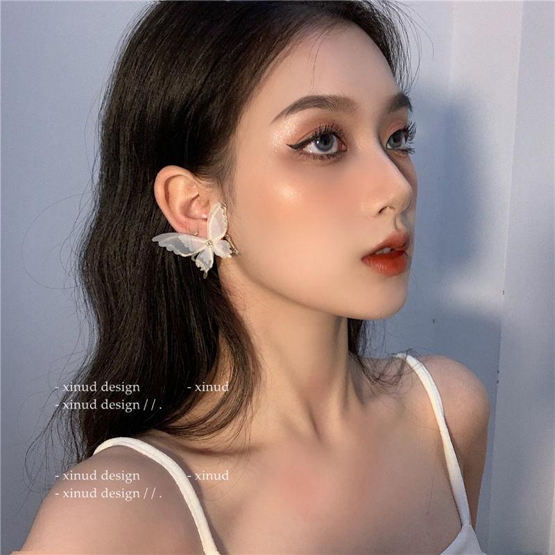 Aretes de mariposa de malla metálica de té ins Aretes de diseño de personalidad súper hada 2022 nuevos aretes aretes de clip