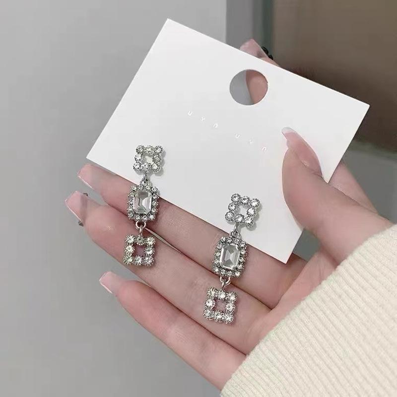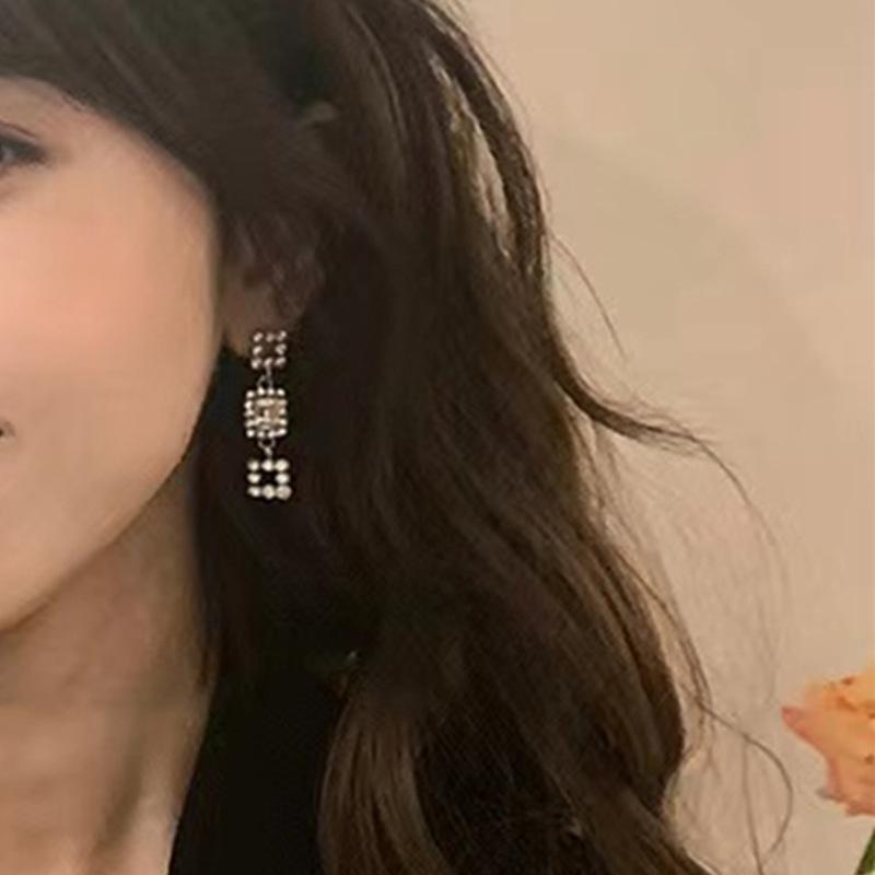 Pendientes de borlas de diamantes con diseño de nicho de aguja de plata S925 de Dongdaemun, Corea del Sur, elegantes, versátiles, estilo retro francés
