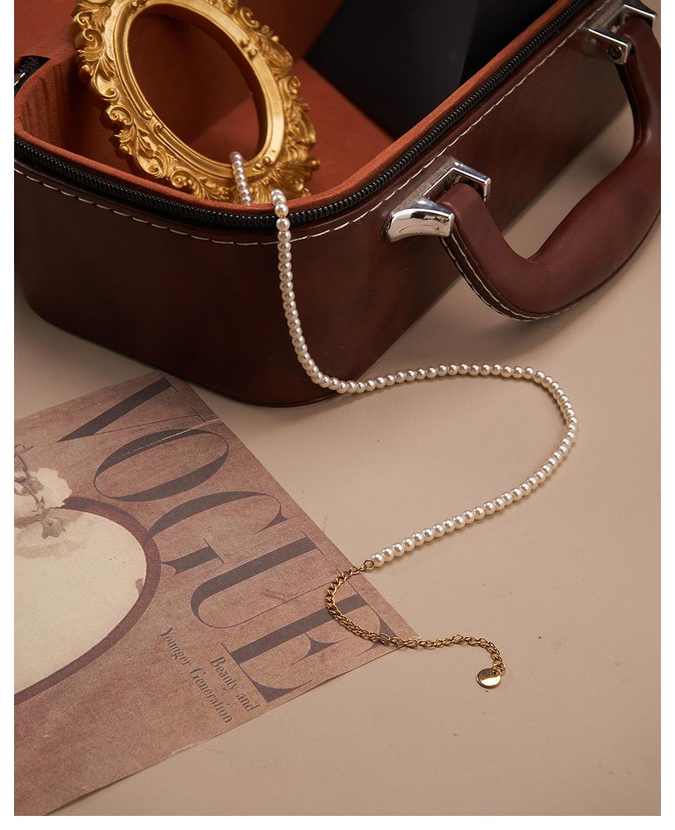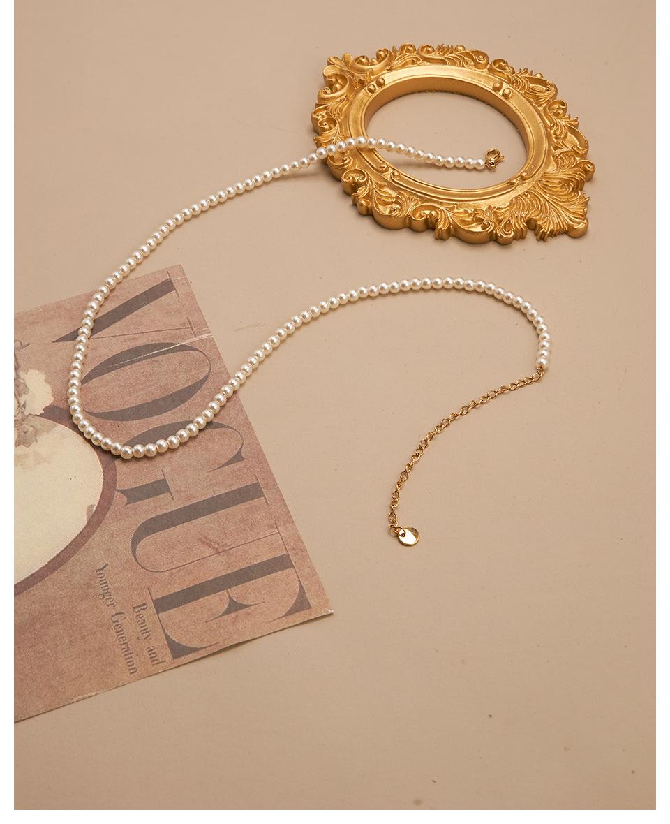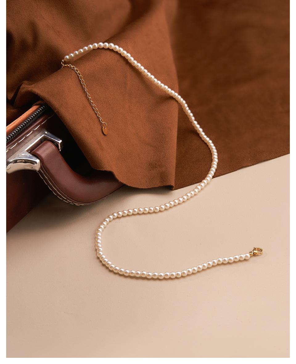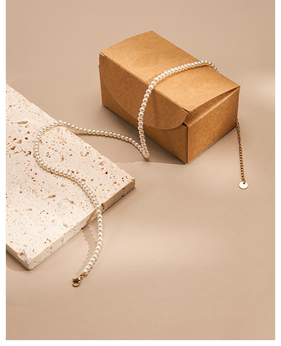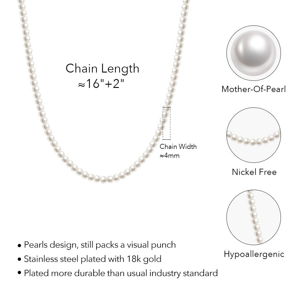 Collar de perlas de imitación de 4 mm con diseño de nicho de acero de titanio chapado en oro de 18 quilates, estilo moderno y con personalidad P243454