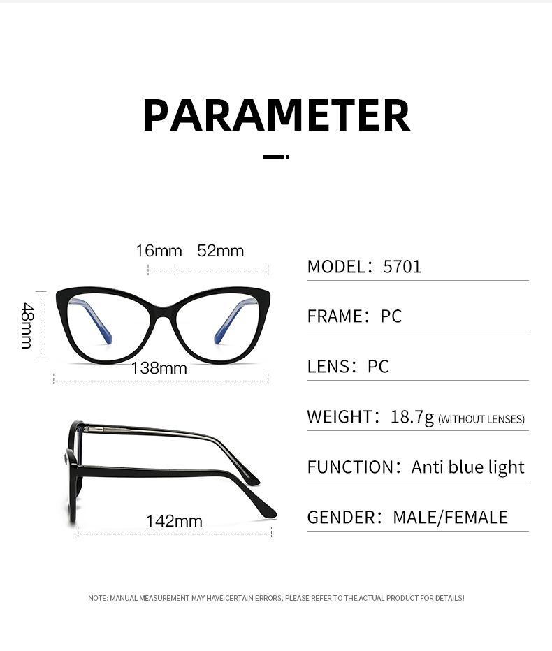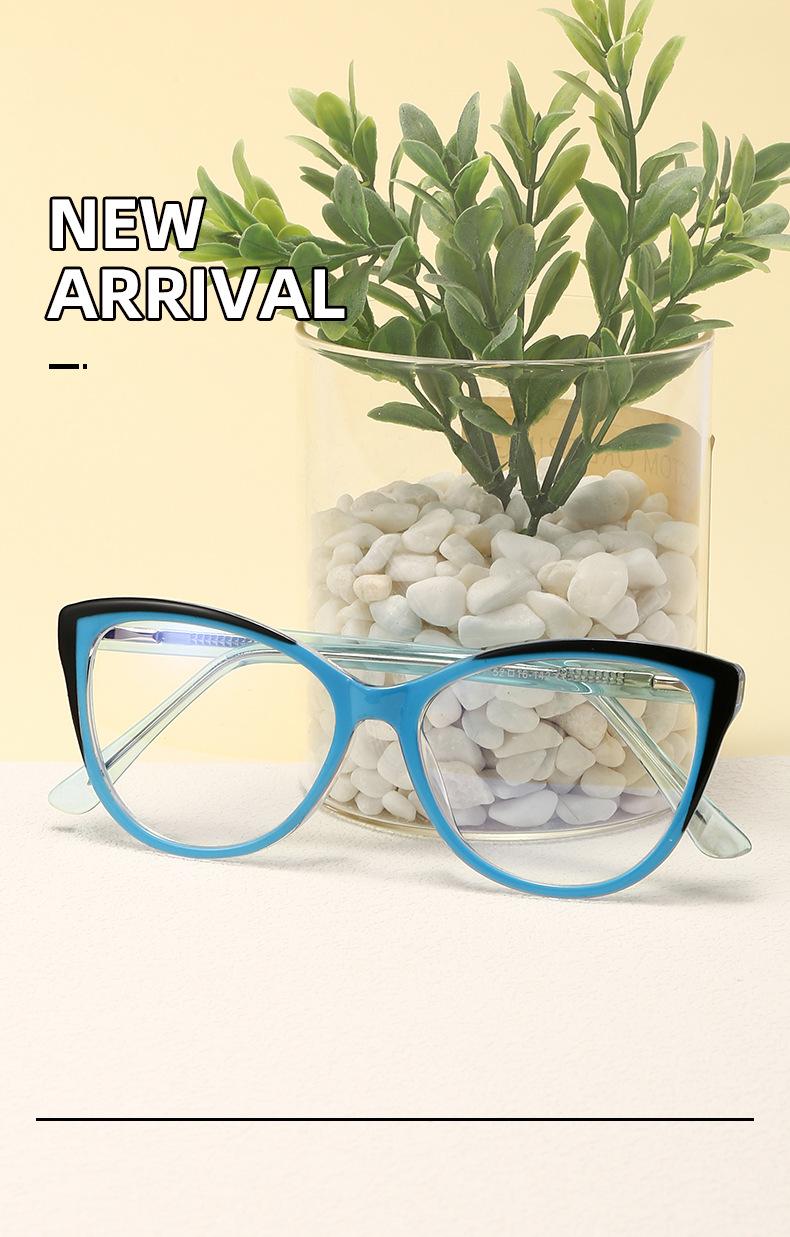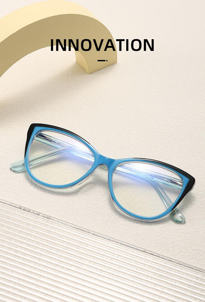 Nuevos lentes anti-luz azul para mujer, montura de PC, pata de metal, moda retro, color de placa, lente plana con espejo para gafas 5701