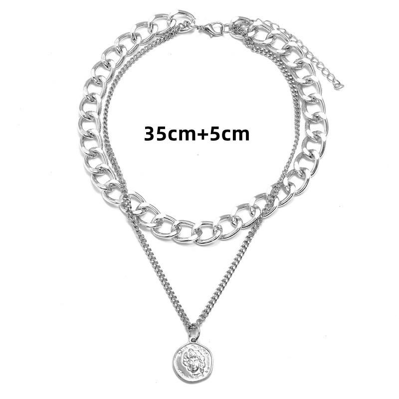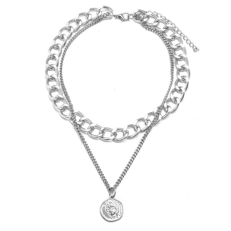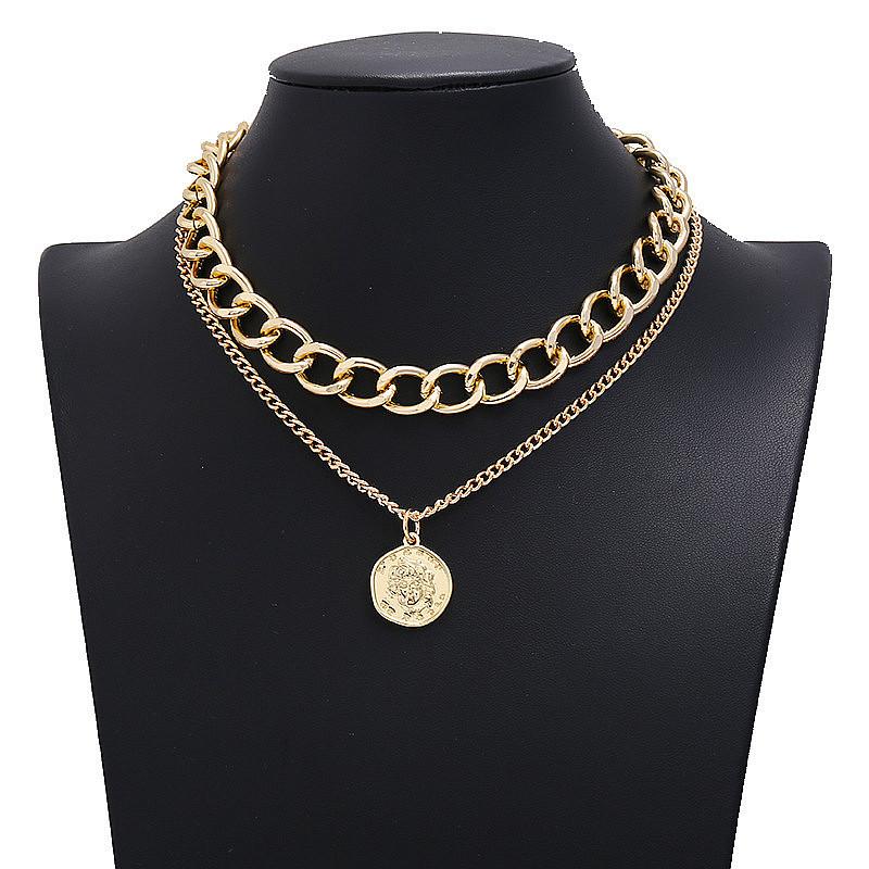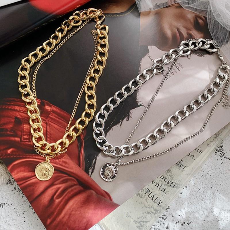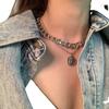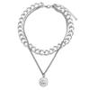 Europeo y Americano Nuevo Distintivo Hip Hop Corto Cadena Clavícula Mujer Doble Capa Punk Cadena Gruesa Retro Colgante Retrato Collar