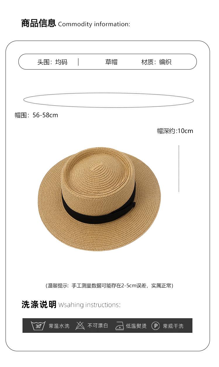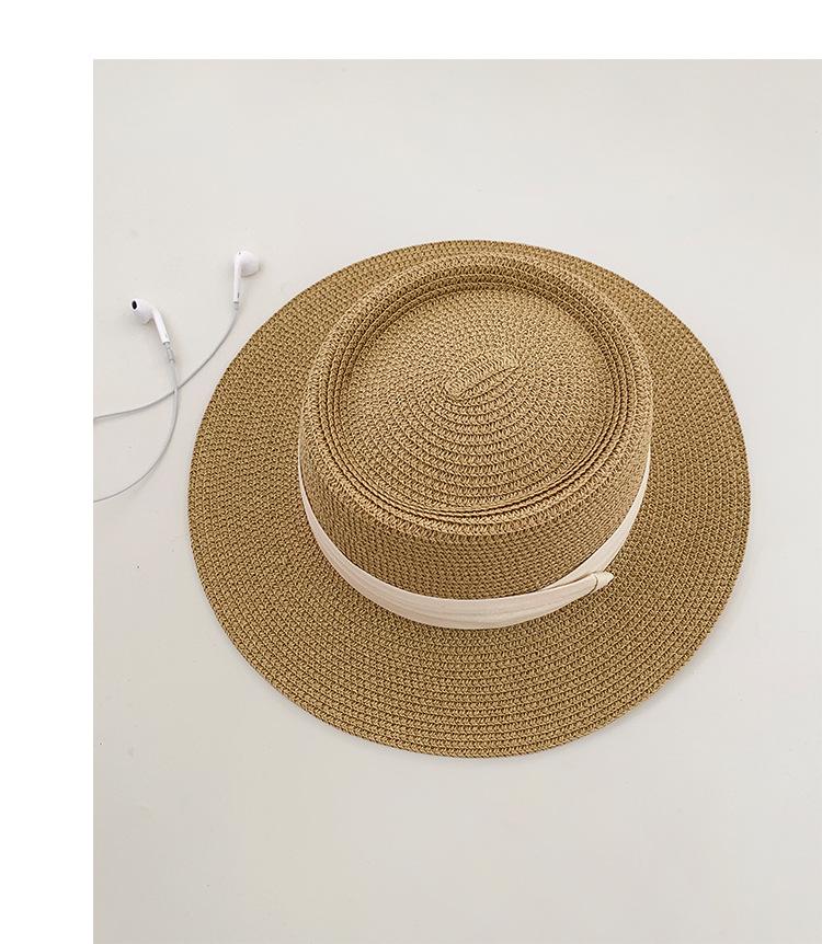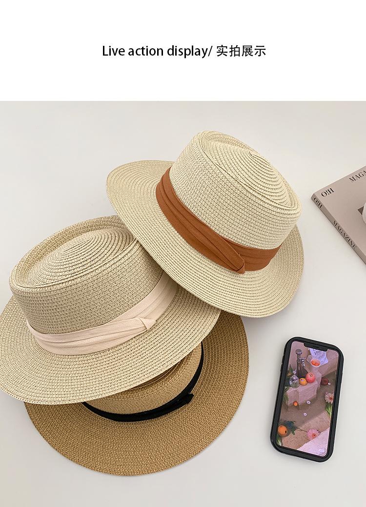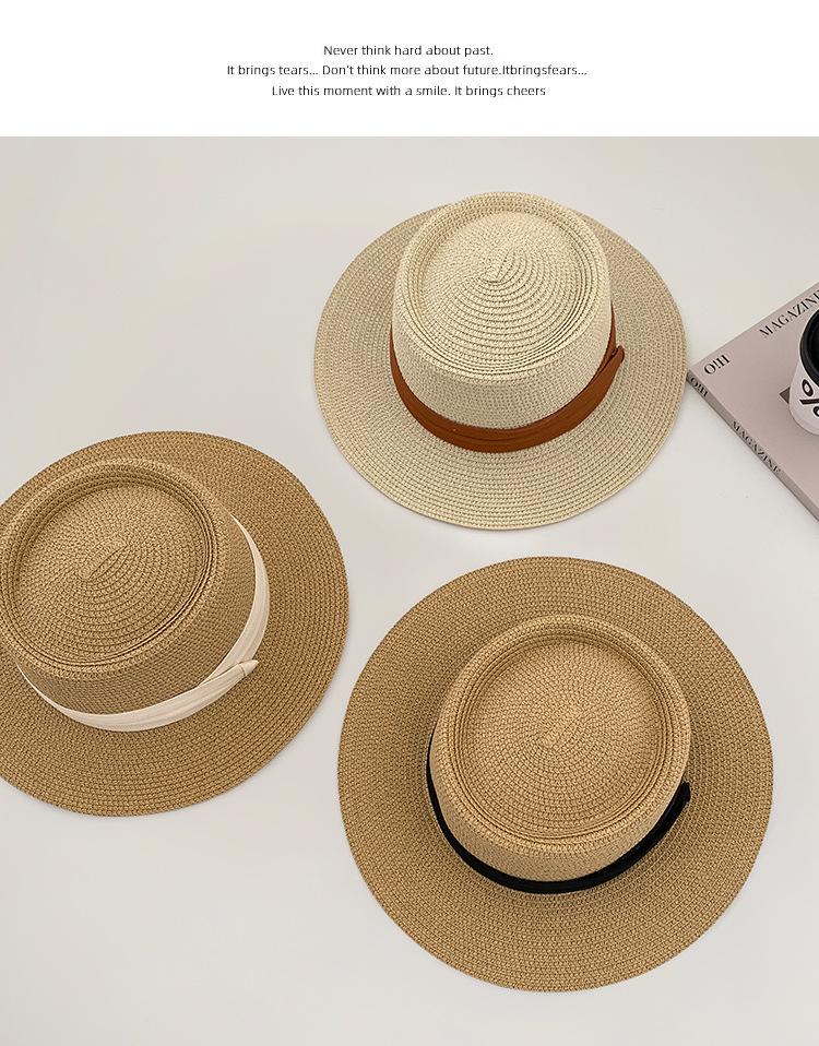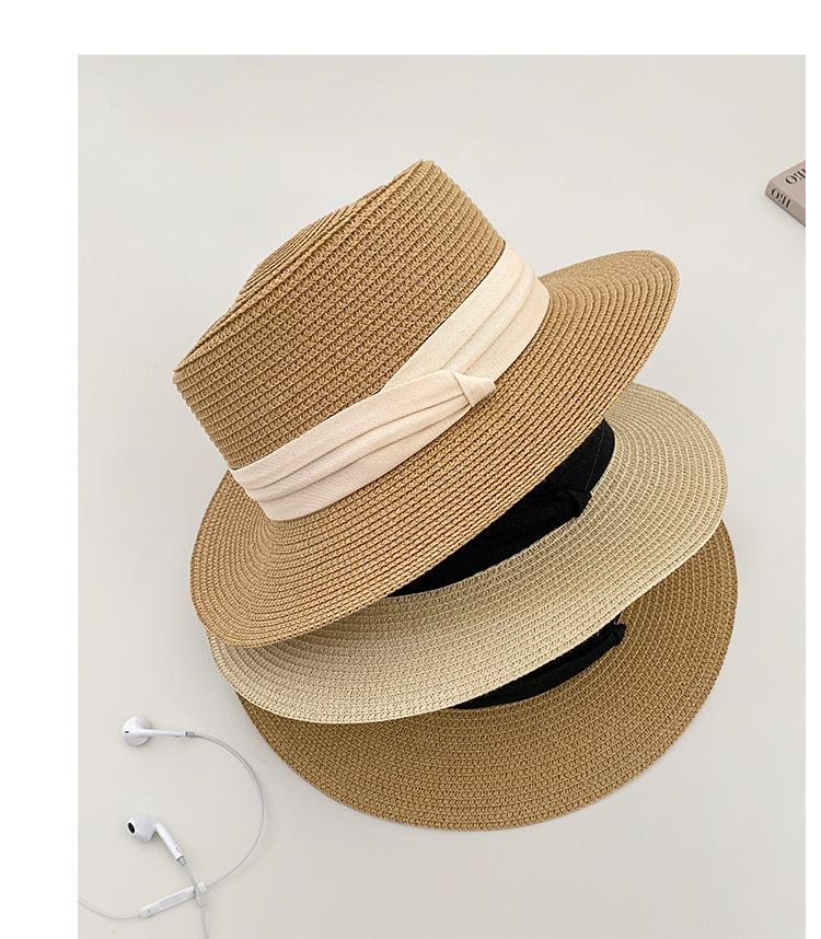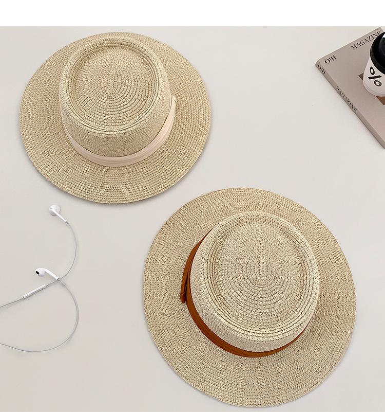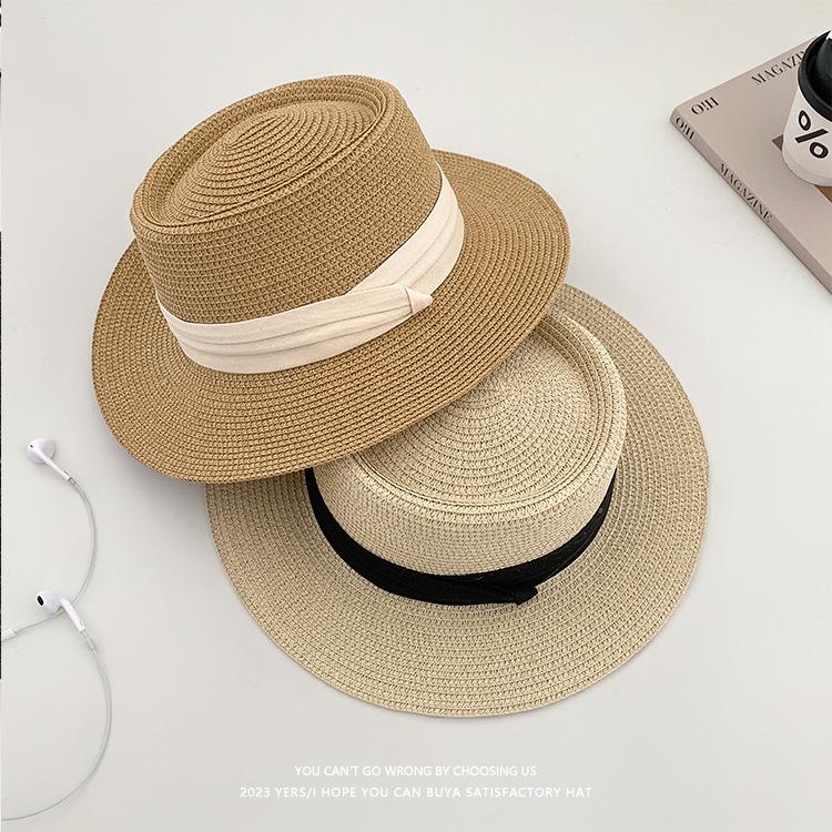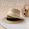 Sombrero de Paja Nuevo 2024 Sombrero de Paja Verano Vacaciones de Playa Ala Plana Copa Plana Sombrero de Sol para Mujer