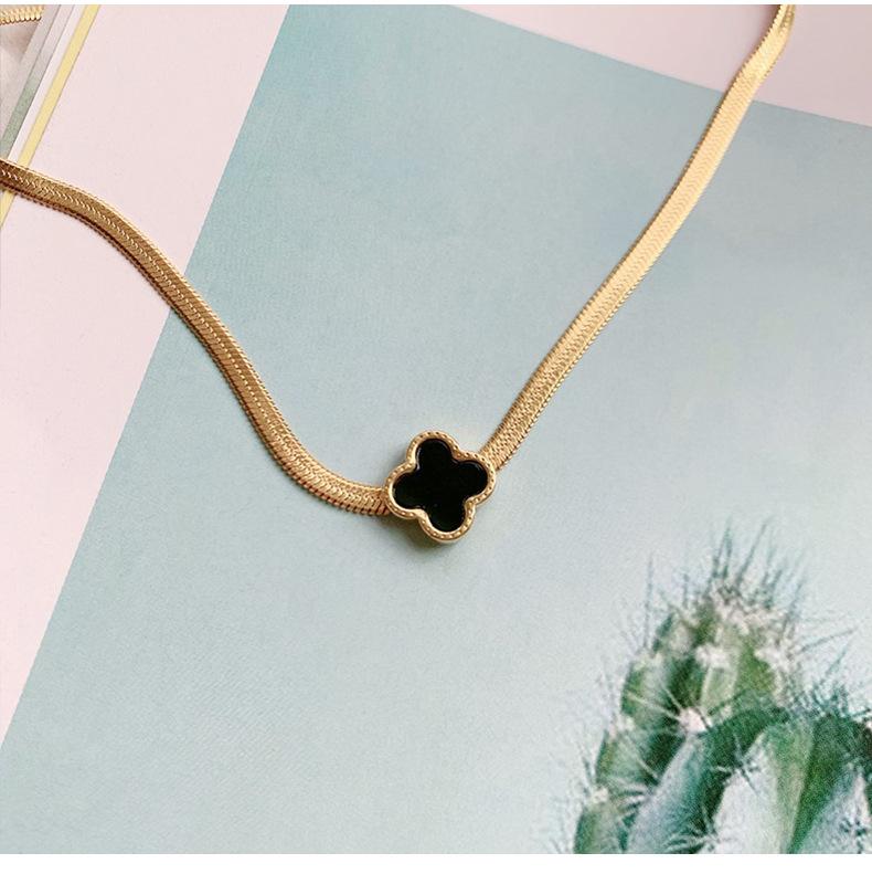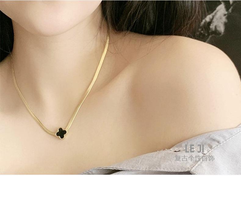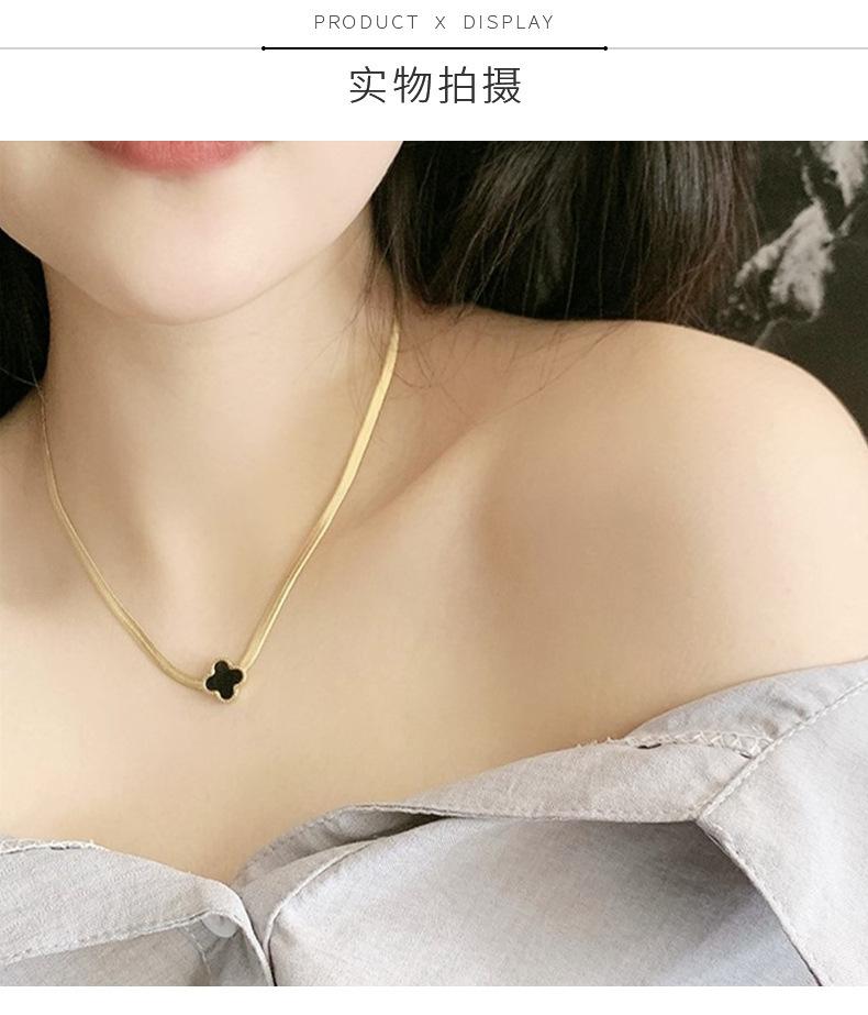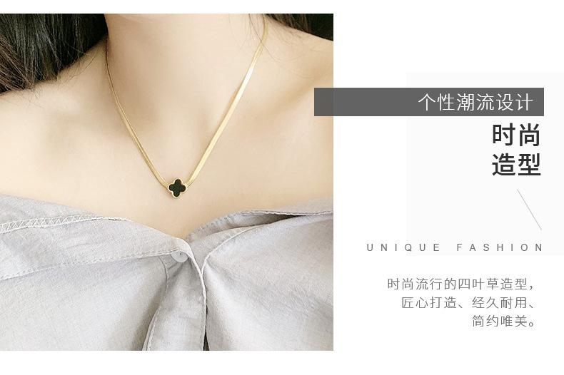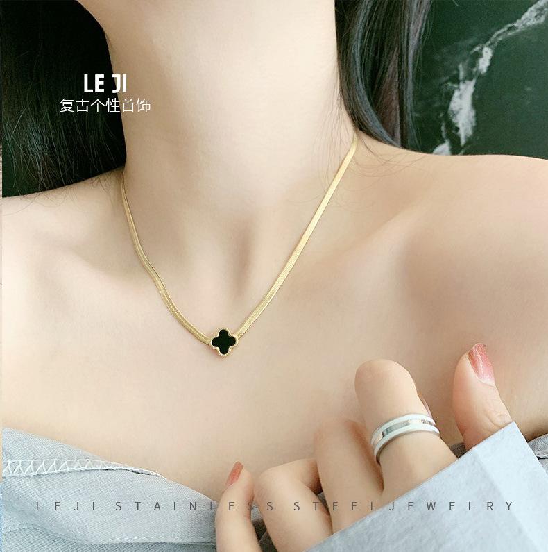 Collar de Acero de Titanio Trébol de Cuatro Hojas Versión Coreana para Mujer, Joyería de Celebridad de Internet en Tendencia, Suministro Directo del Fabricante, Accesorio de Acero Inoxidable, Artículo Popular de Amazon