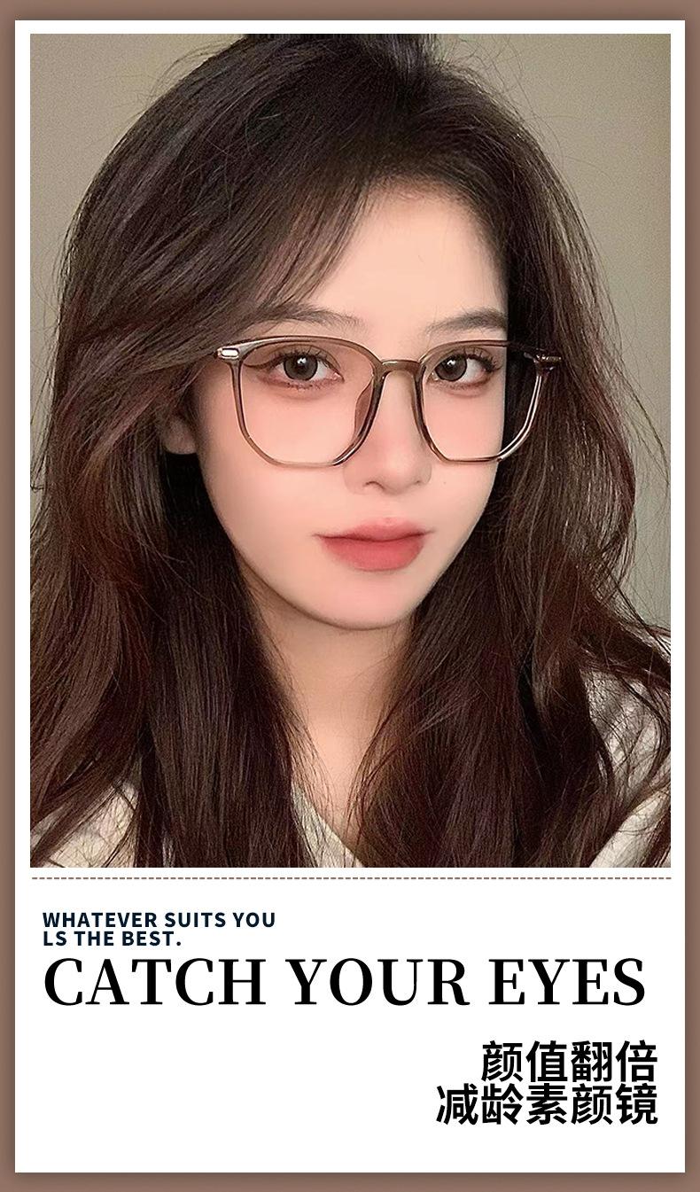 Montura de gafas para miopía ultraligera para mujer en línea que combina con lentes de grado, cara redonda lisa, montura de gafas marrón frío de estilo coreano a la moda