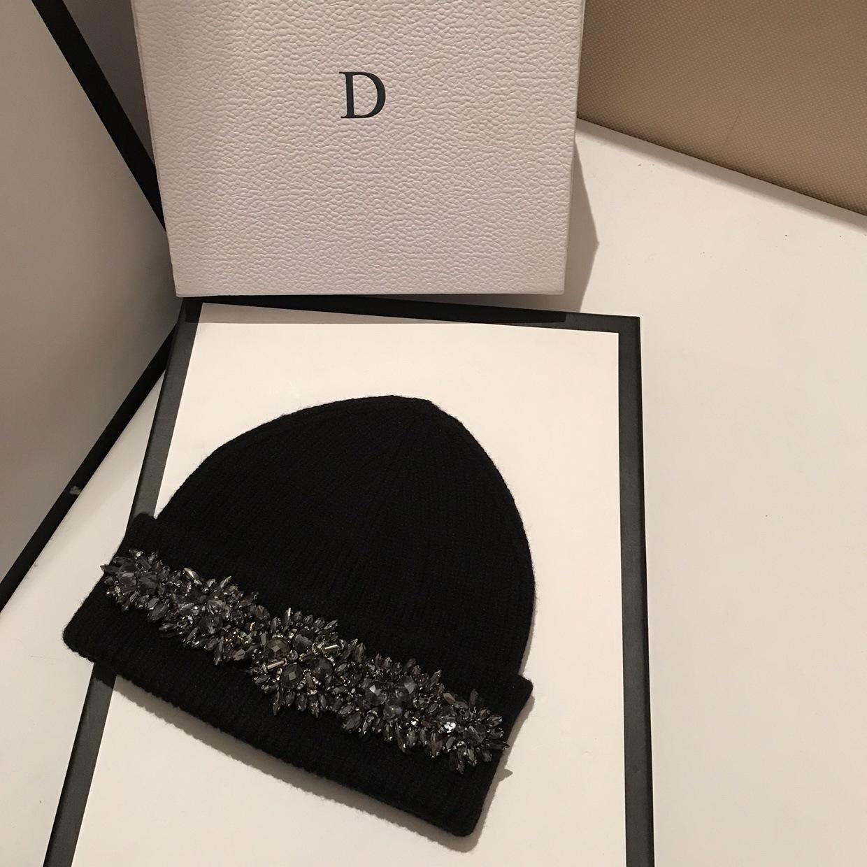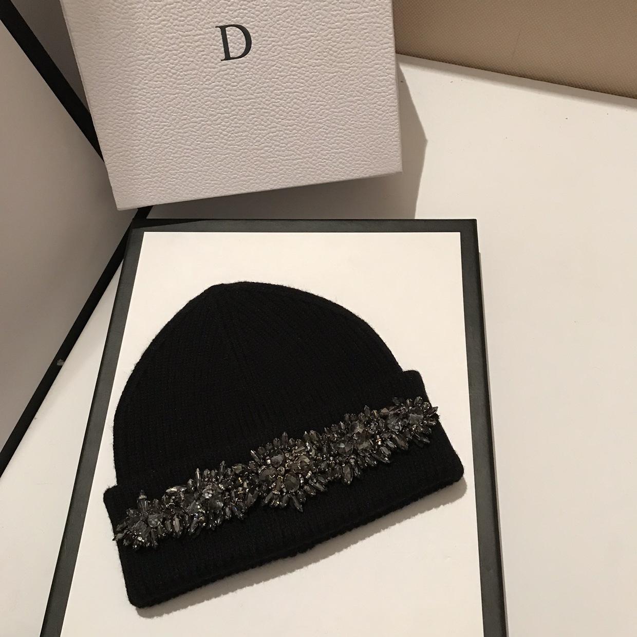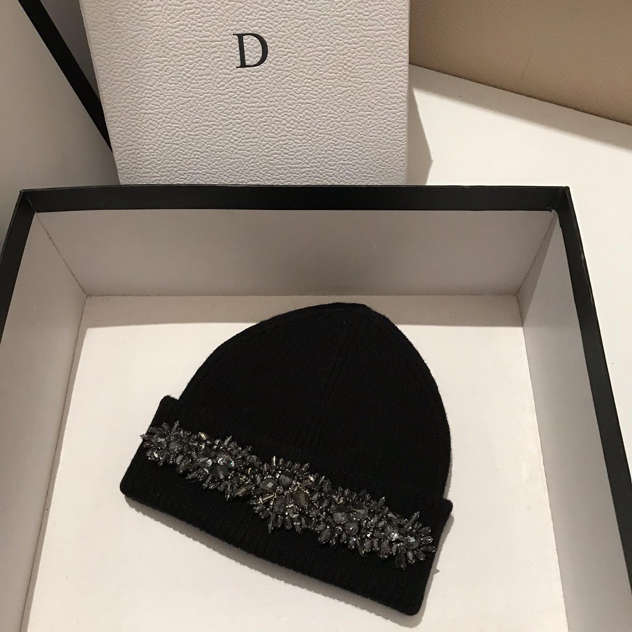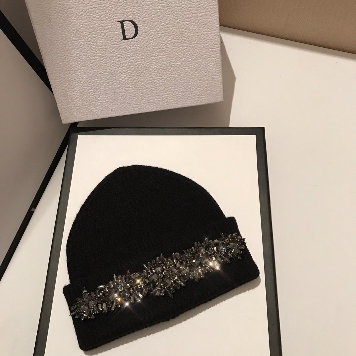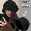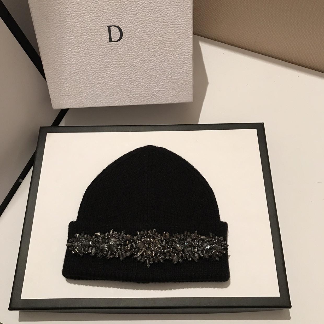 Gorro japonés de punto con diamantes de imitación, hecho a mano, nuevo, para otoño e invierno, estilo coreano, de lana negra que combina con todo, cálido, para viajes y con protección para las orejas.
