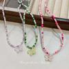 Nuevo collar de cuentas de colores, dulce y moderno, con colgante de mariposa, cadena de clavícula con diseño de nicho, bonita cadena de clavícula.