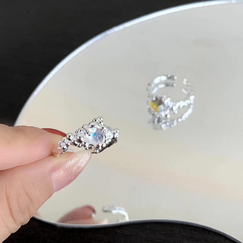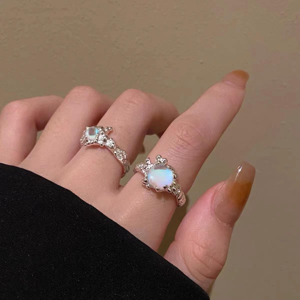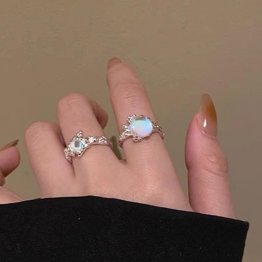 Espuma Verano ~ anillo de piedra lunar personalidad moda 2023 nuevo anillo lujo ligero diseño nicho de alta gama sentido