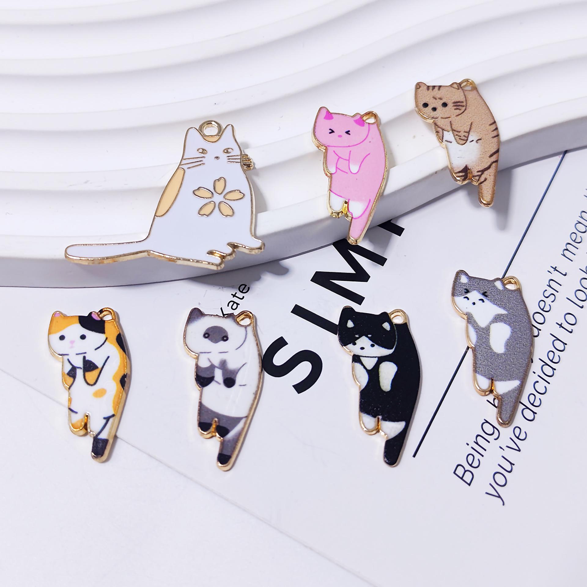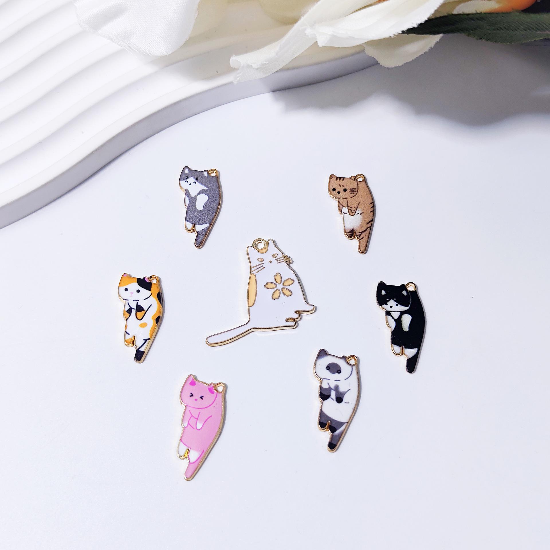 Colgante pequeño de aleación creativa con forma de gato de dibujos animados que gotea aceite, accesorios para pendientes, accesorios para el cabello, accesorios de joyería para teléfono móvil
