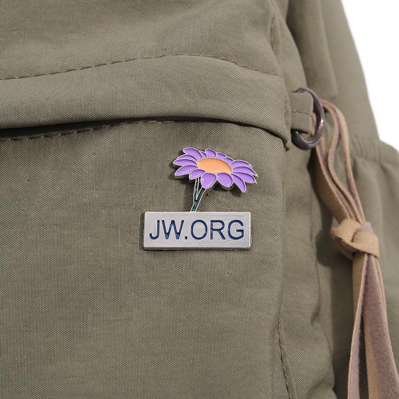 Insignia de flor de JW.ORG con personalidad, forma de planta creativa, mochila, abrigo, sombrero, accesorios, pin, broche de metal de dibujos animados