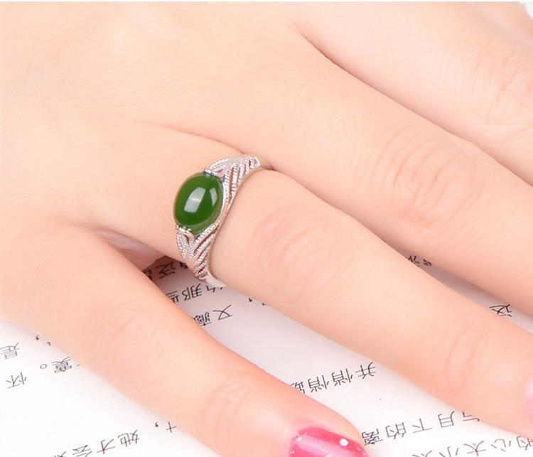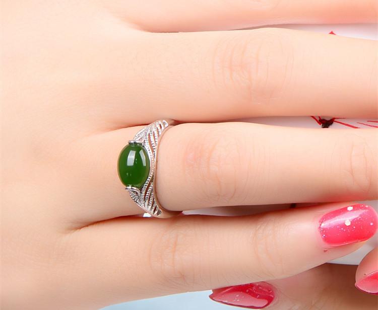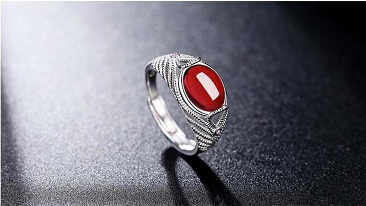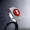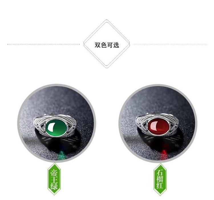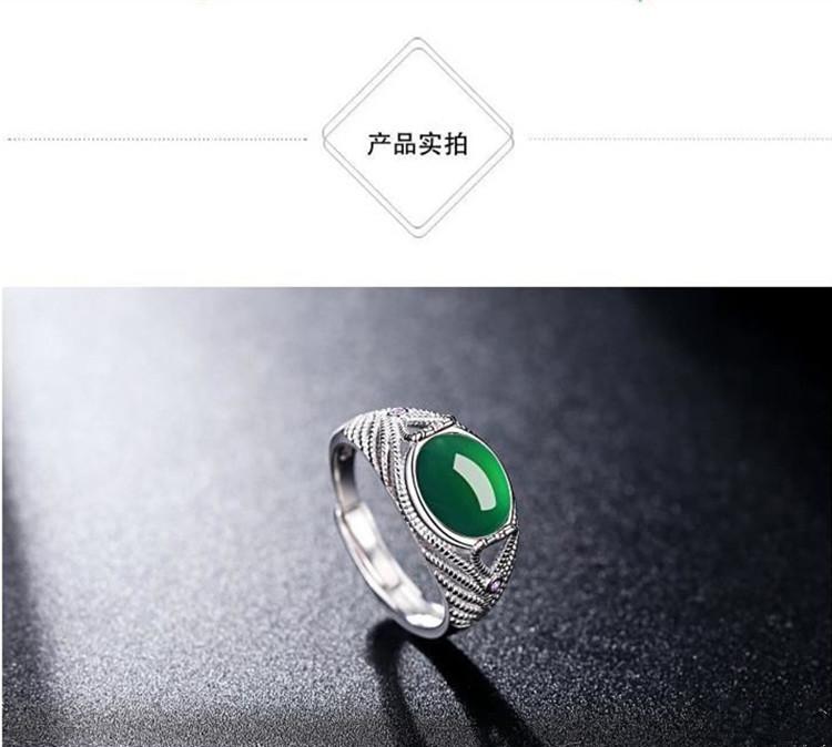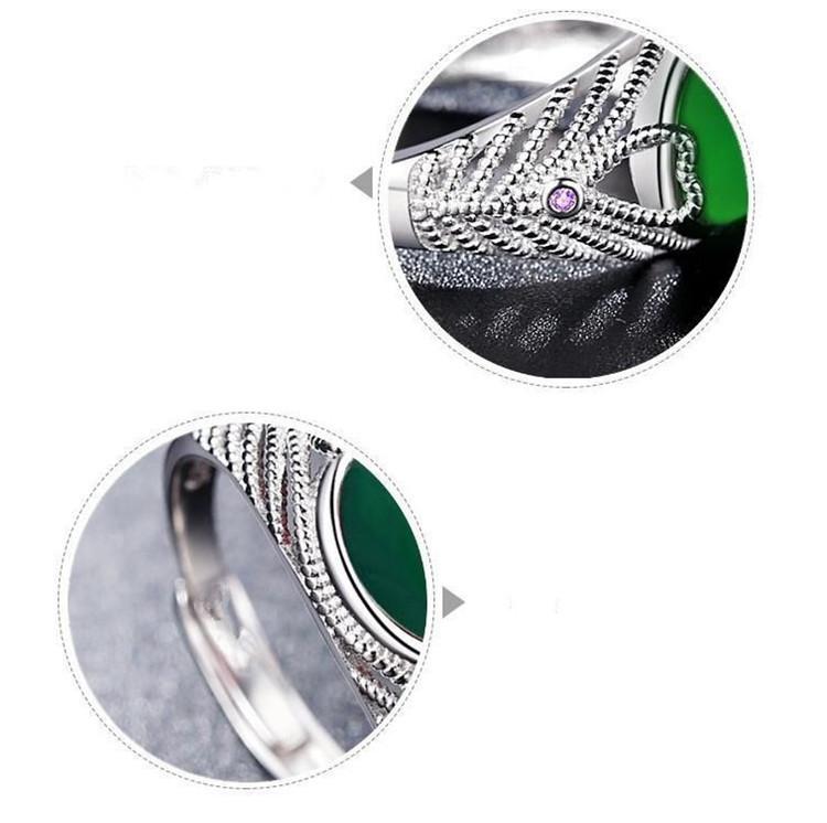 Anillo Retro de Metal Transfronterizo para Mujer Anillo Abierto de Rubí Verde Anillo de Ágata de Corazón Plateado Joyería