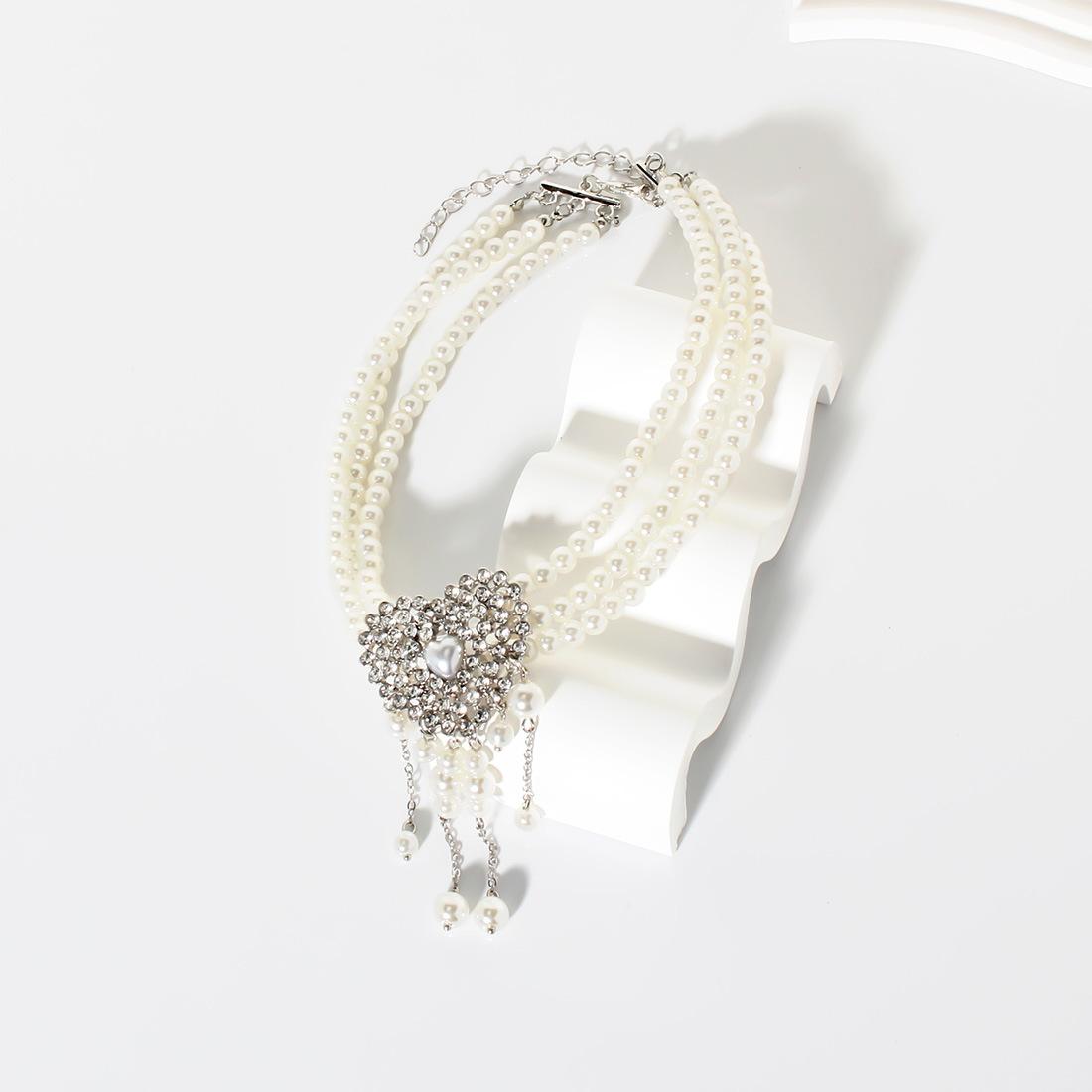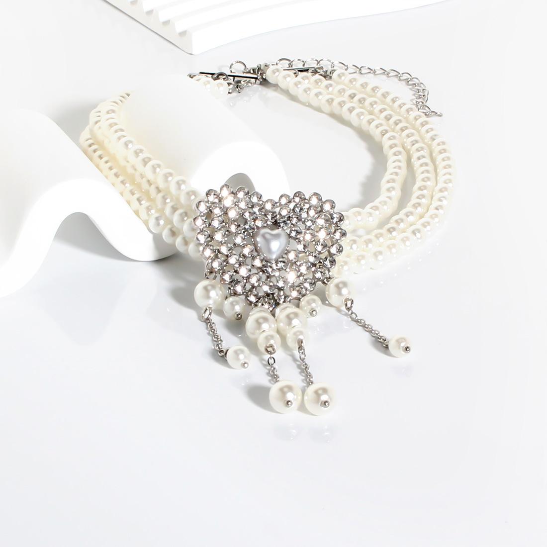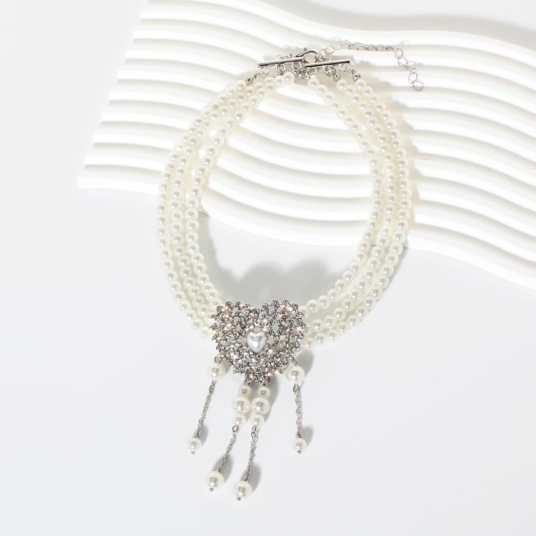Collar con colgante de borla de diamantes y perlas estilo europeo y americano para mujer NK23580