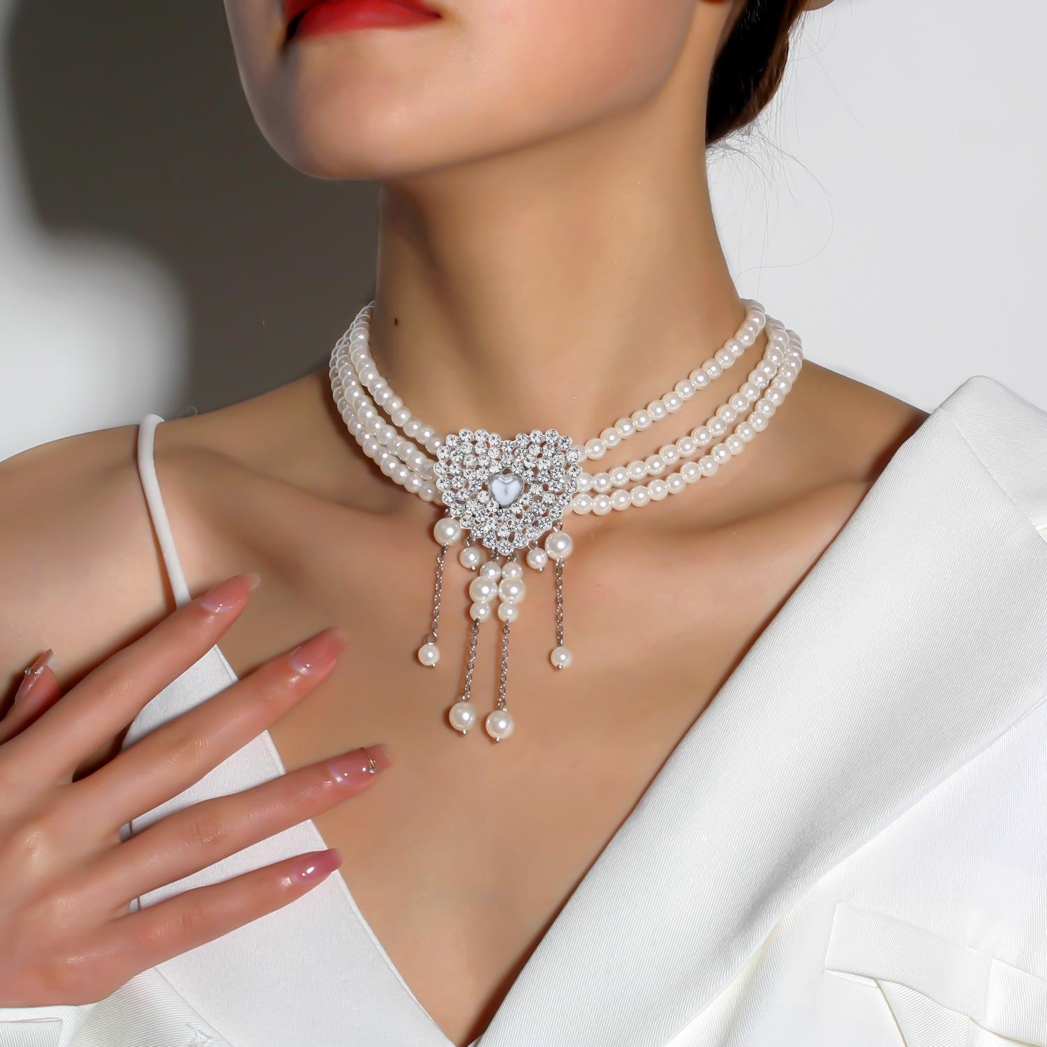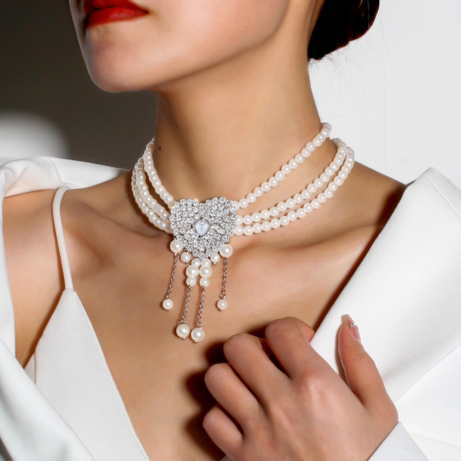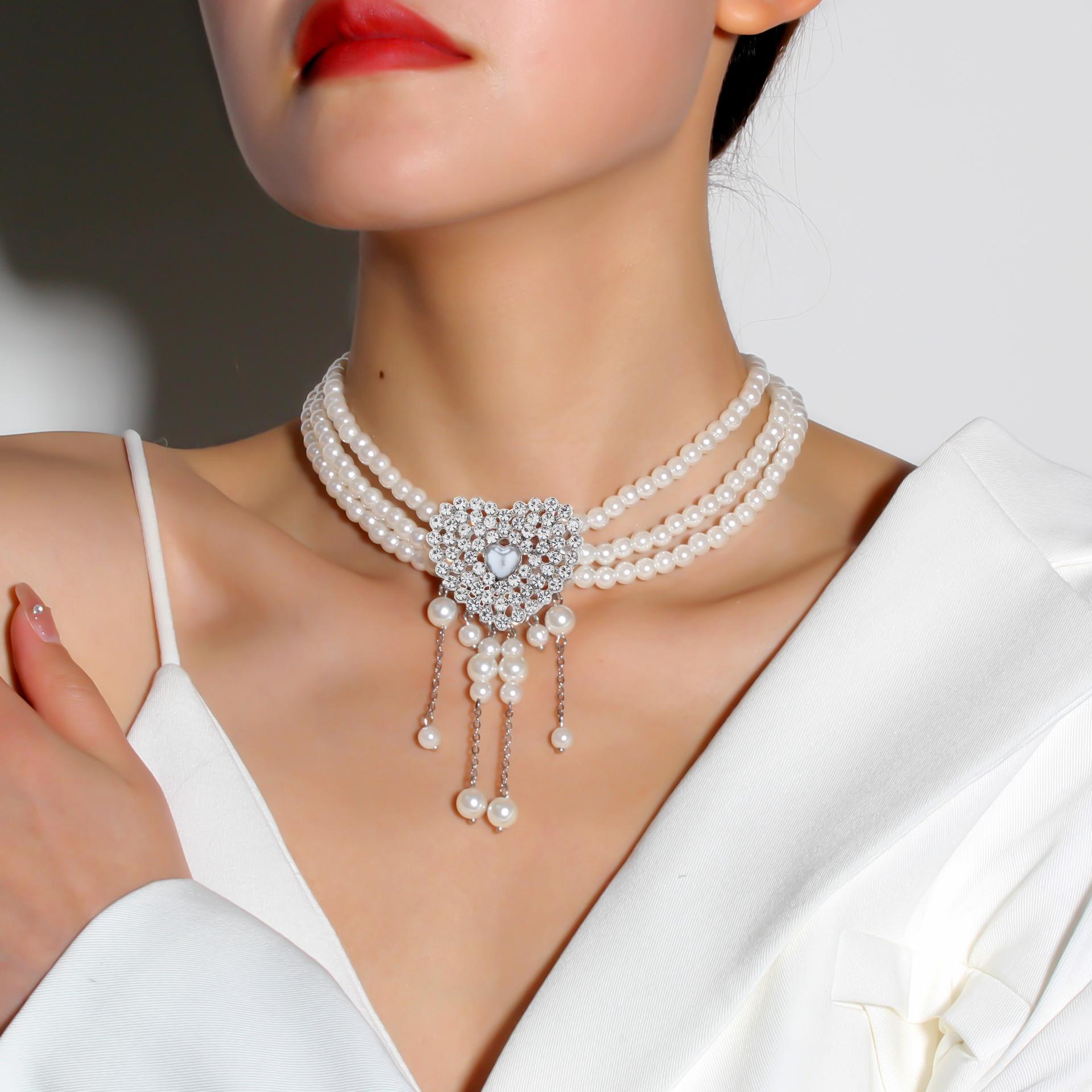 Collar con colgante de borla de diamantes y perlas estilo europeo y americano para mujer NK23580