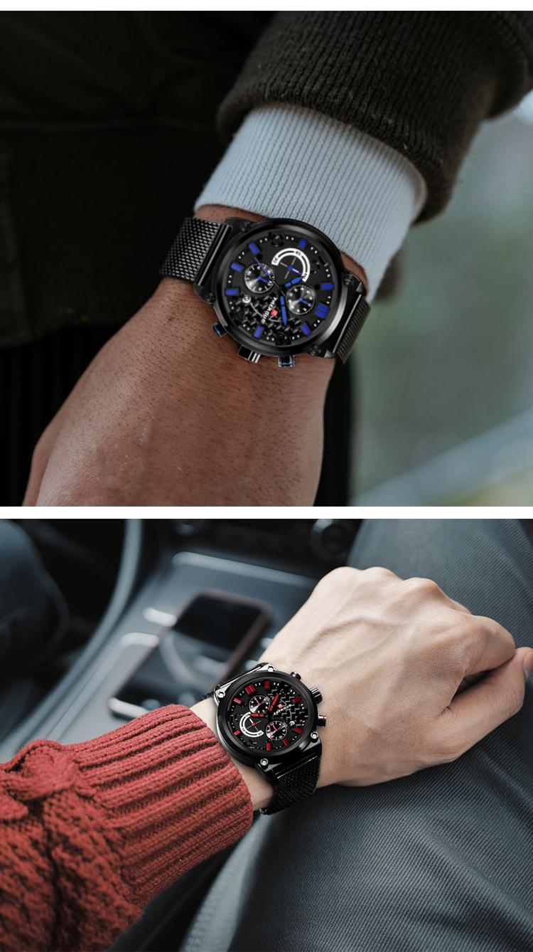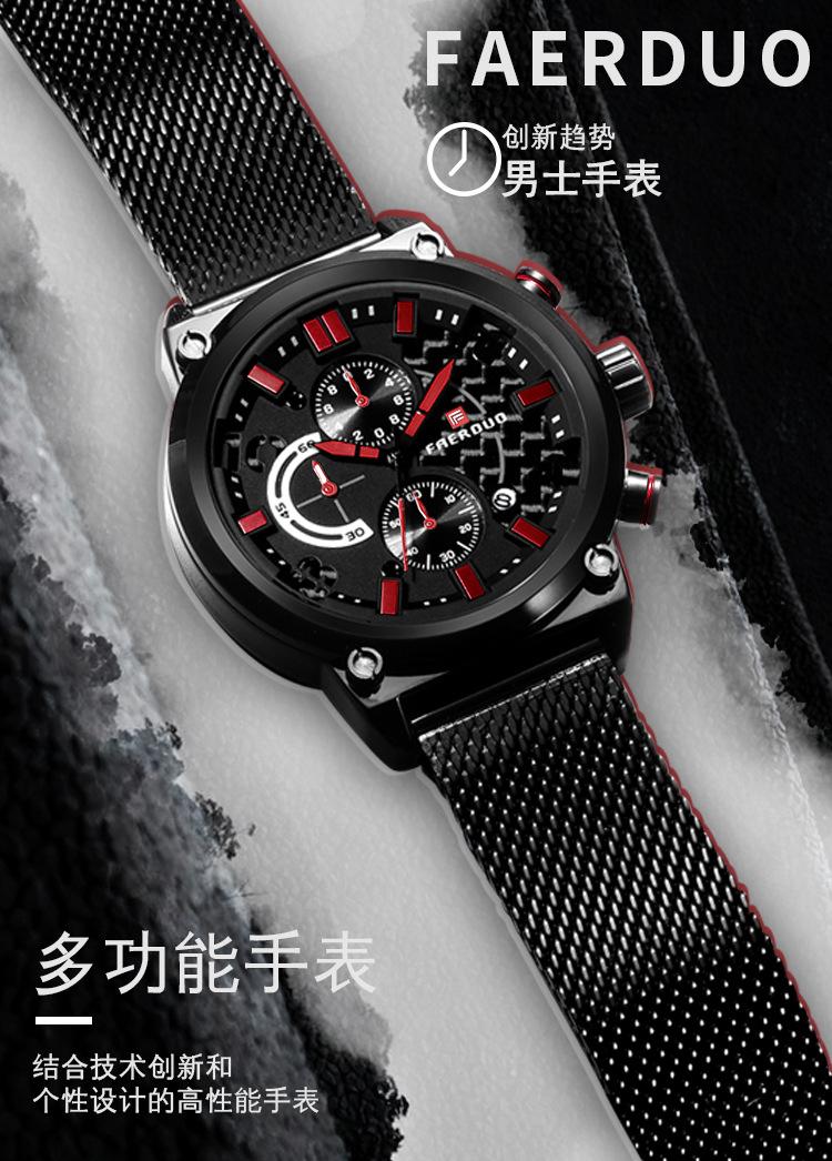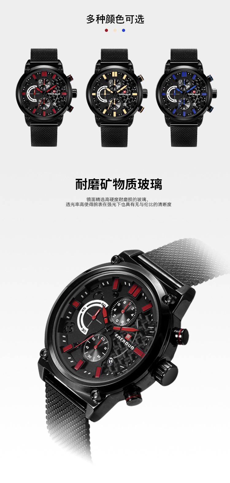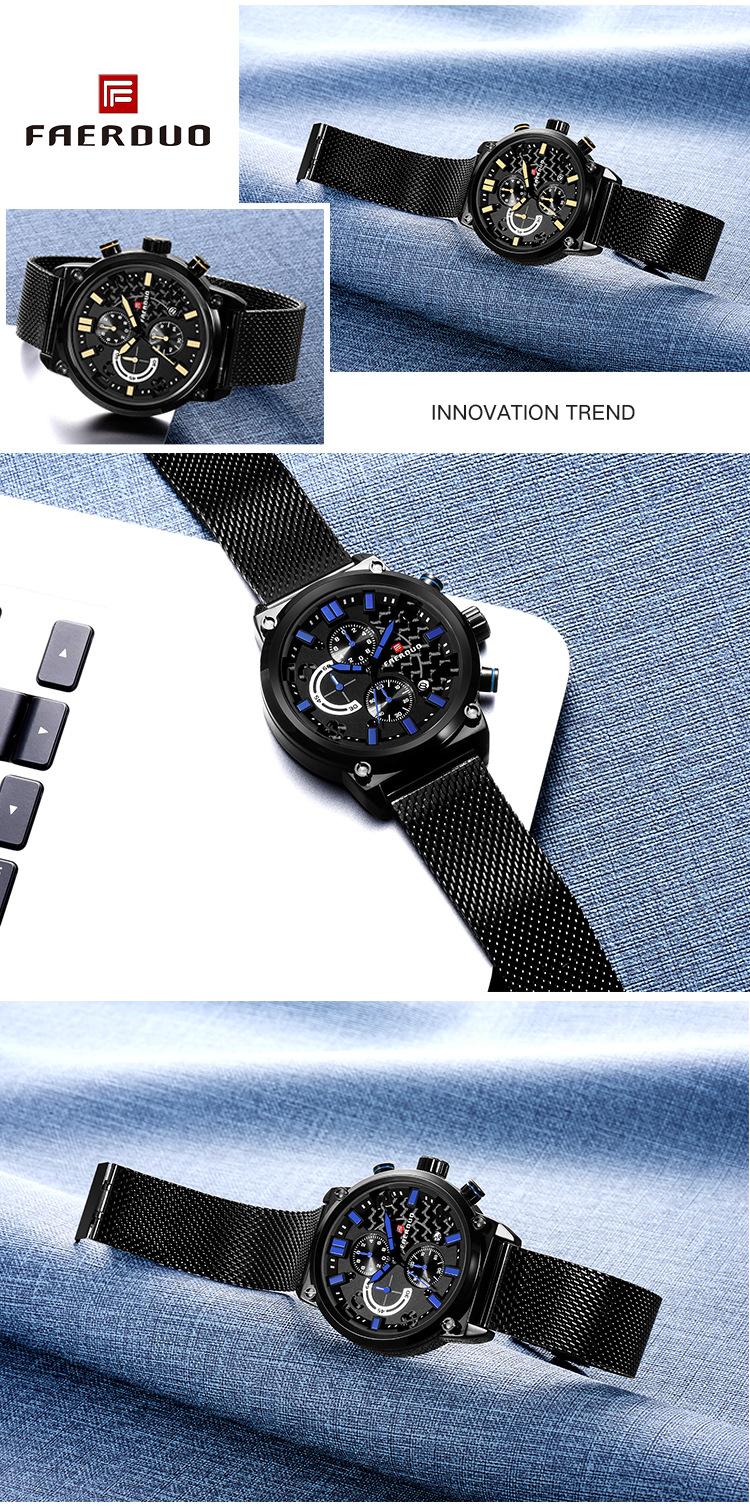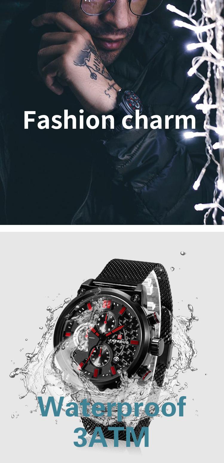 FAERUOU nuevo reloj de malla deportiva personalizado para hombre con espejo de cristal, reloj de cuarzo impermeable de seis agujas