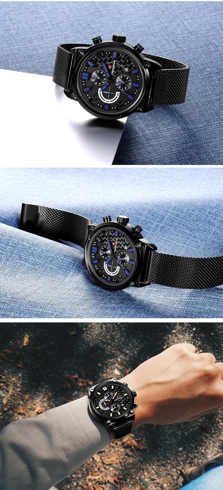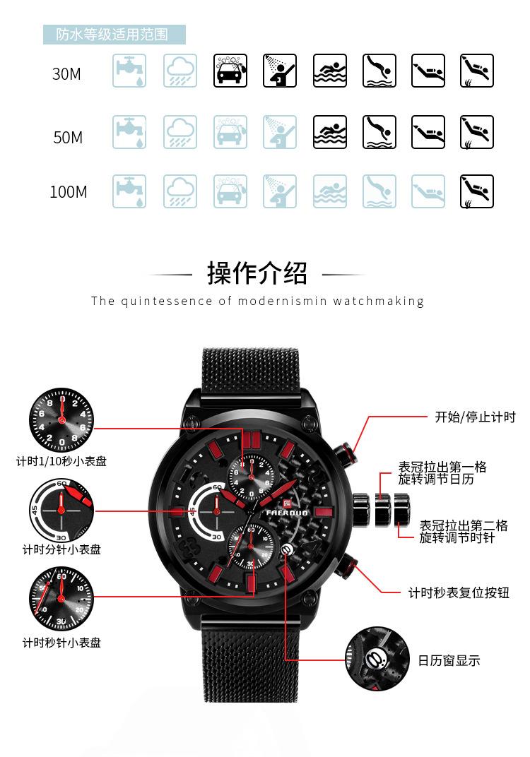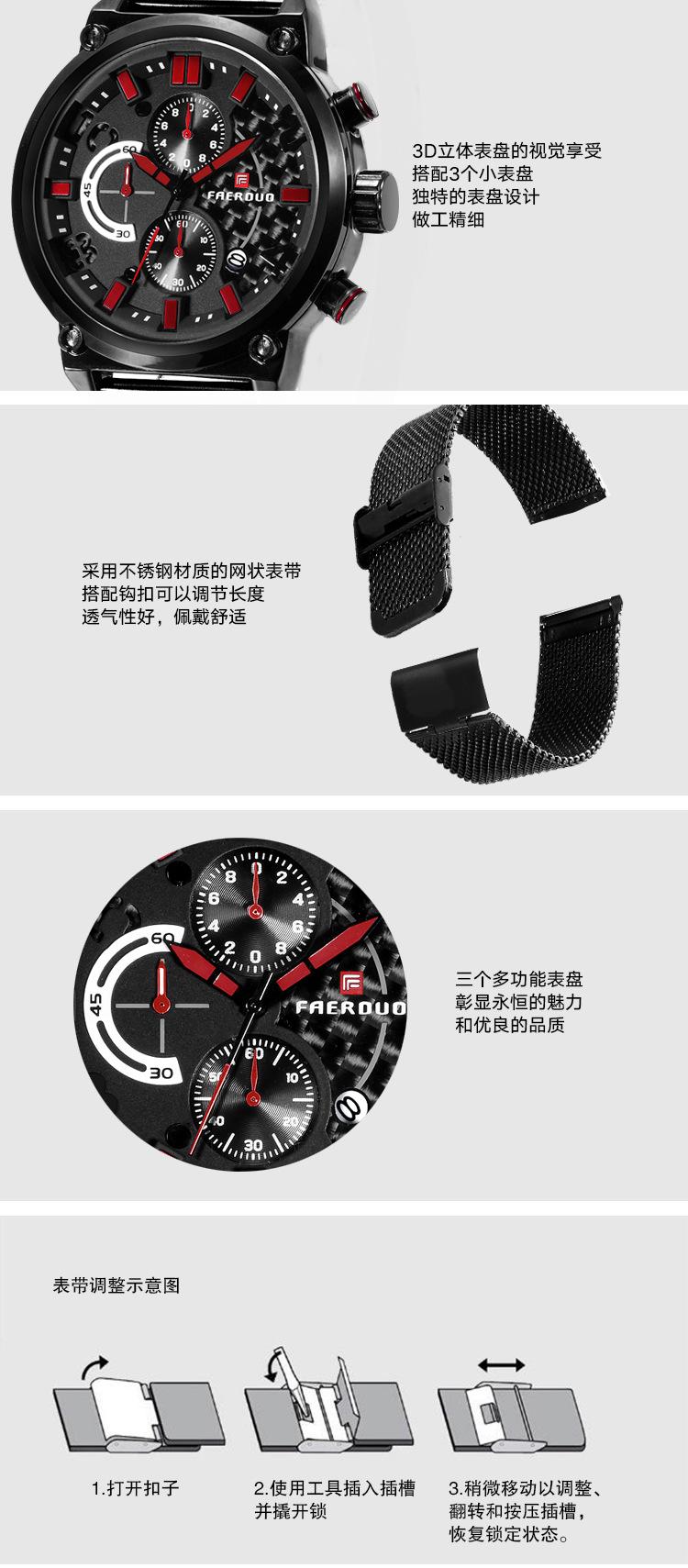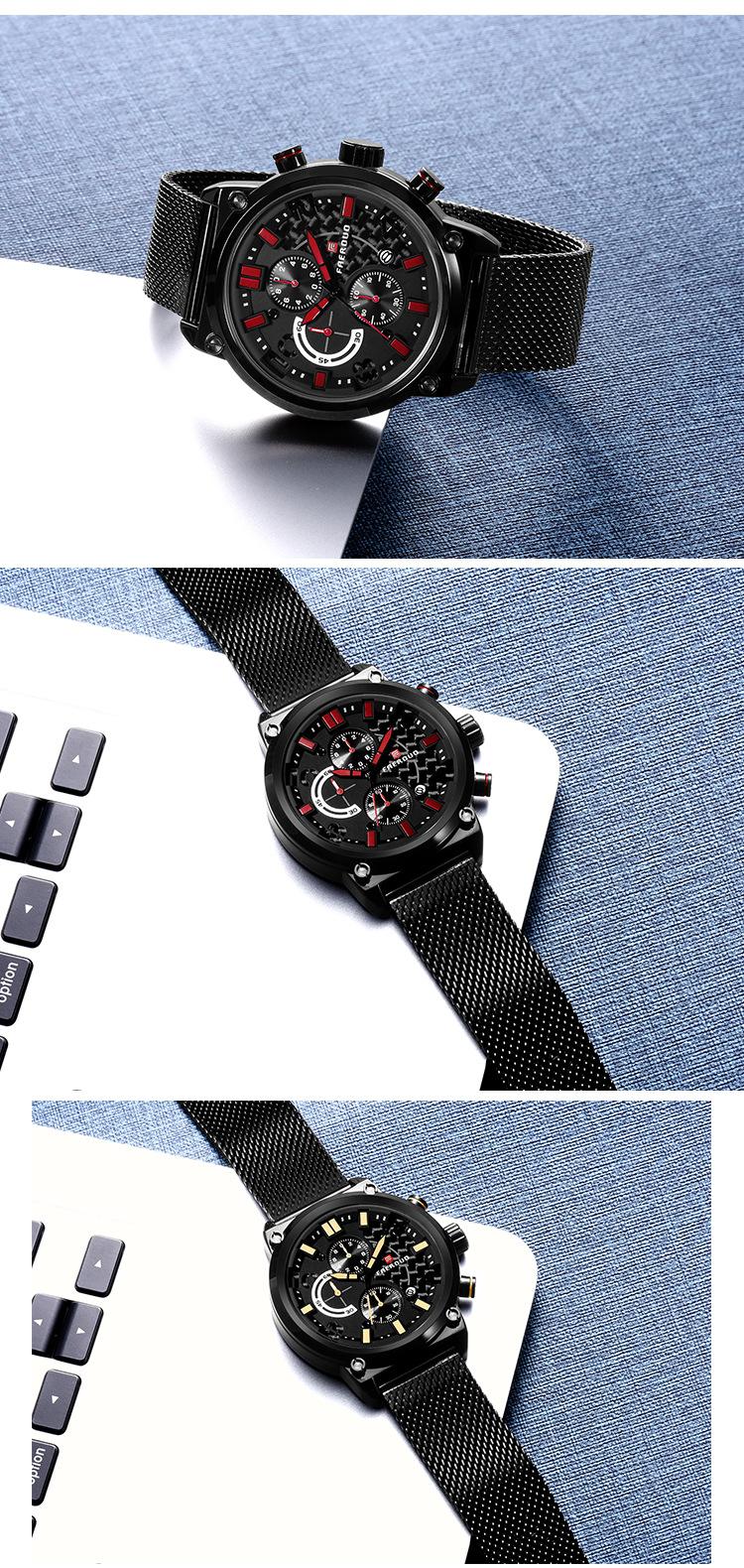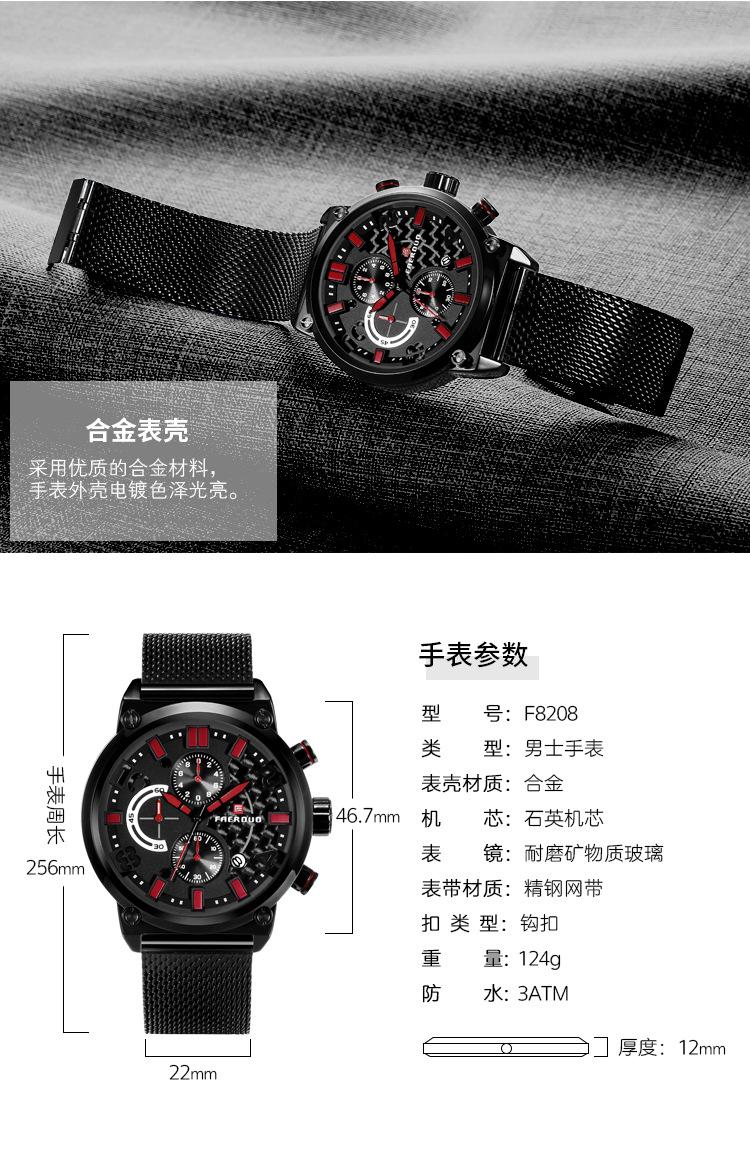 FAERUOU nuevo reloj de malla deportiva personalizado para hombre con espejo de cristal, reloj de cuarzo impermeable de seis agujas