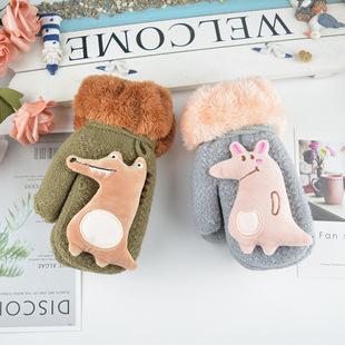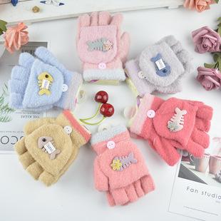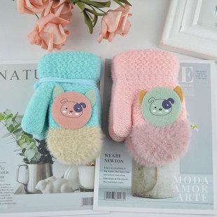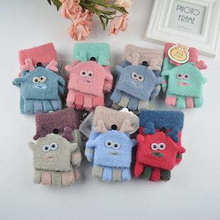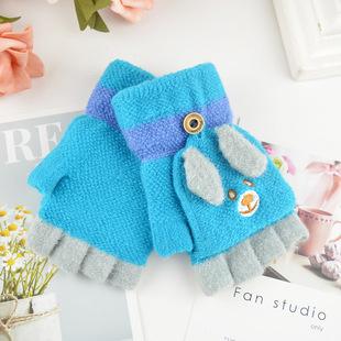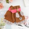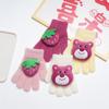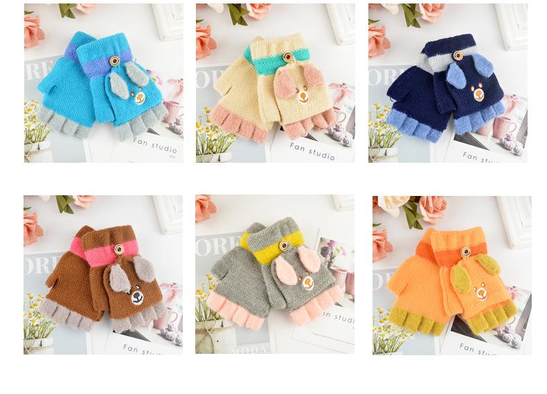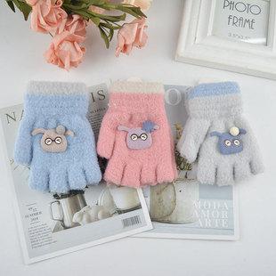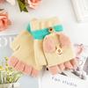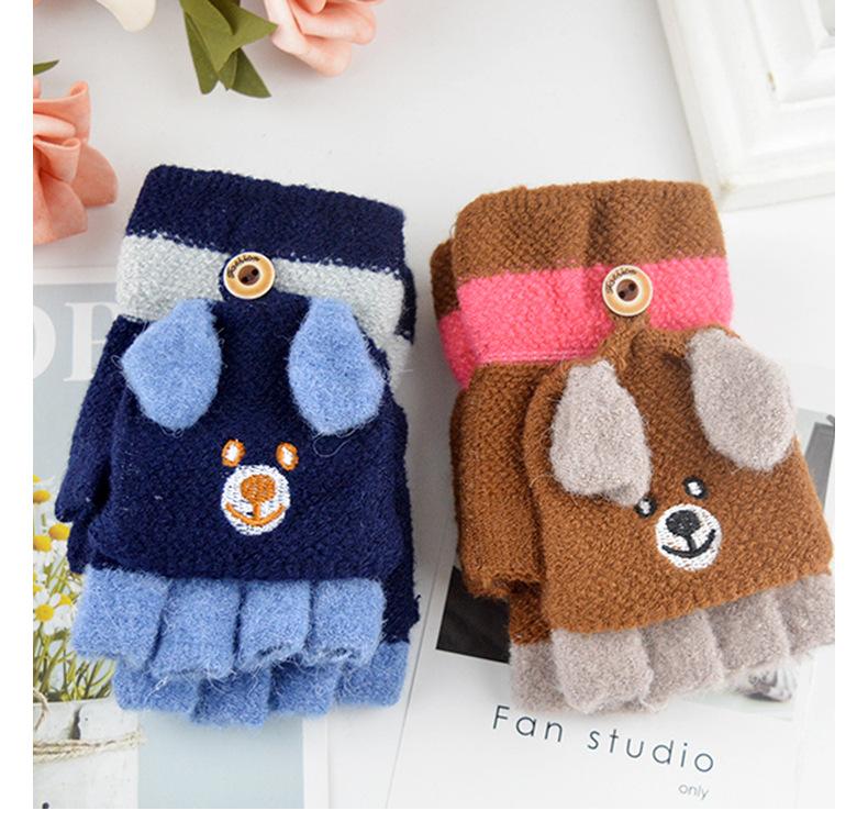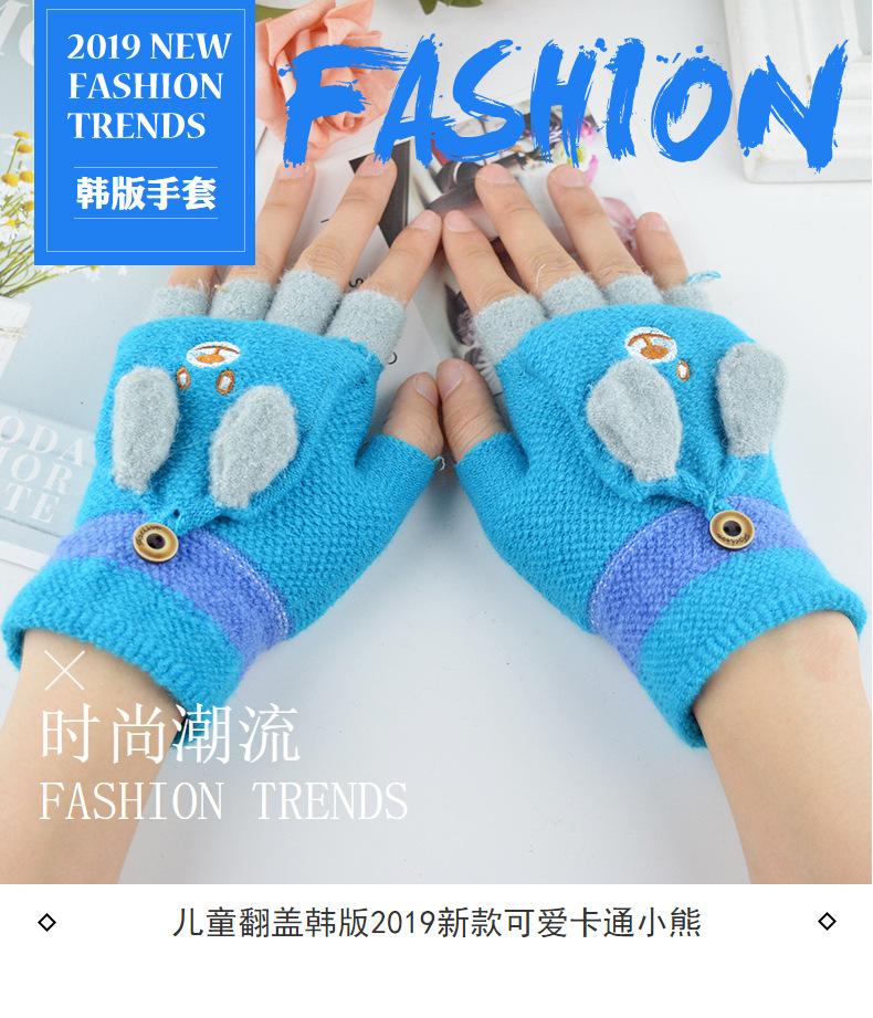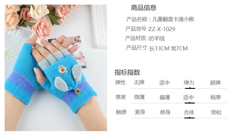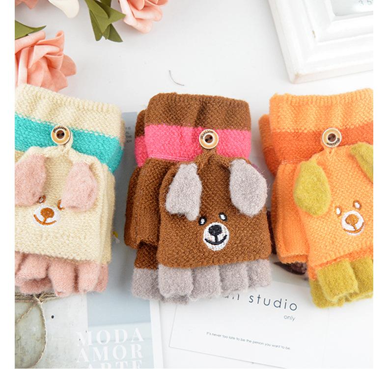 Guantes para niños otoño e invierno con medio dedo abatible para niños y niñas, bonitos guantes de dibujos animados con forma de oso y dedos abiertos de lana de punto grueso y cálido