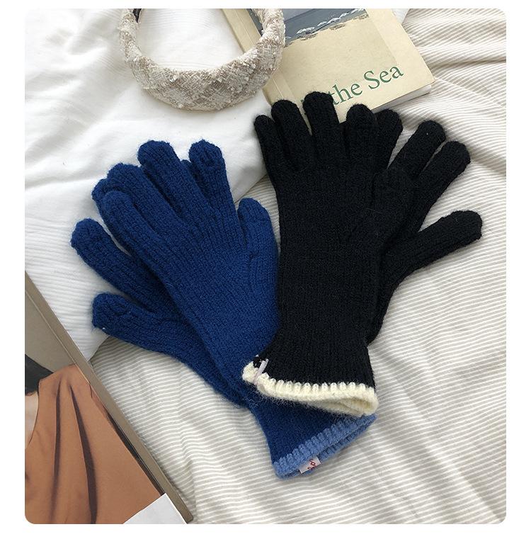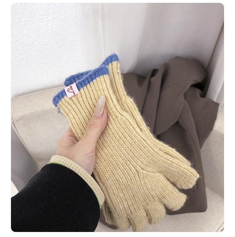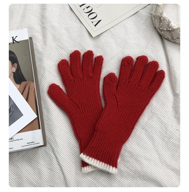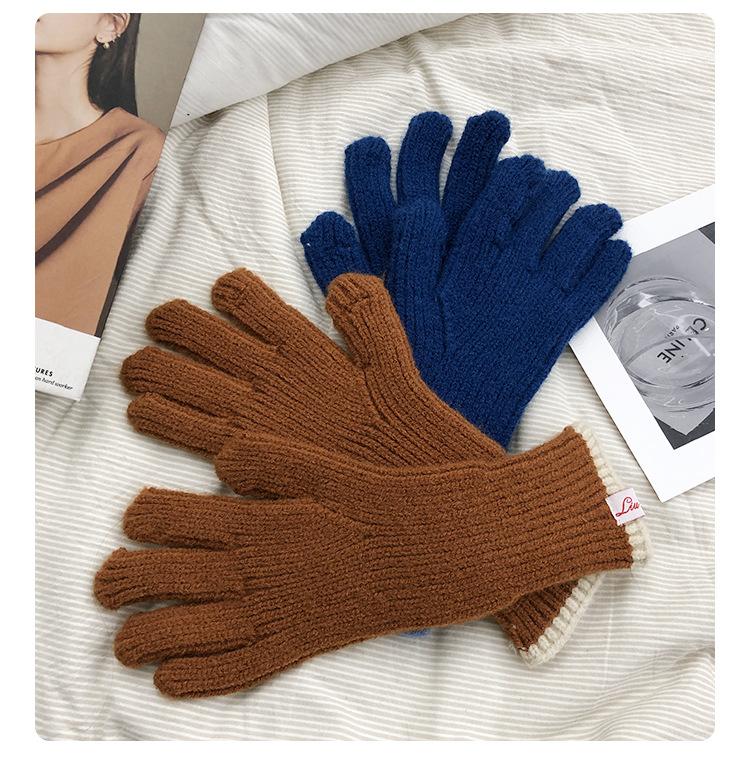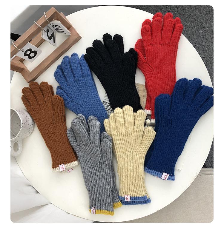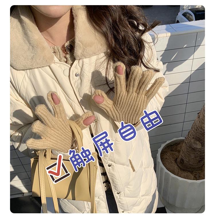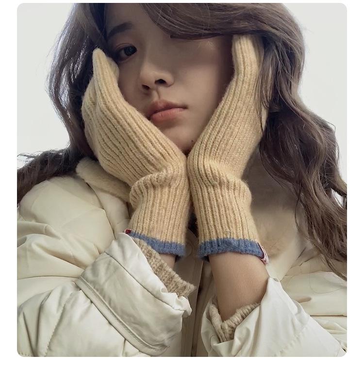 Pantalla táctil ~ Guantes de algodón coreano para mujer Invierno Lindo ins Cálido Montar Pareja Dedo Tejido Lana Estudiantes