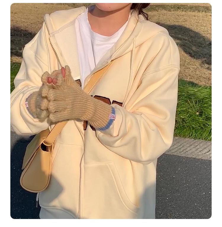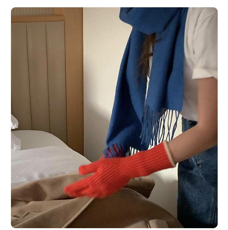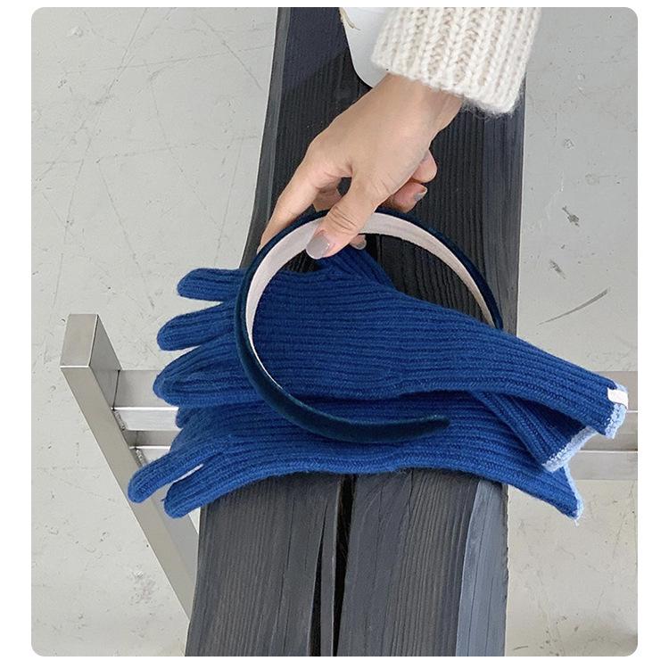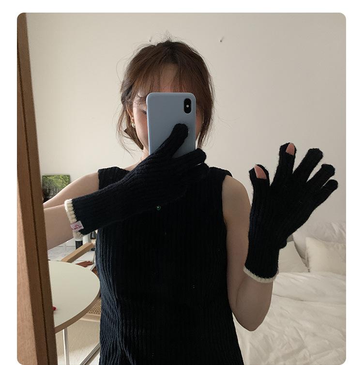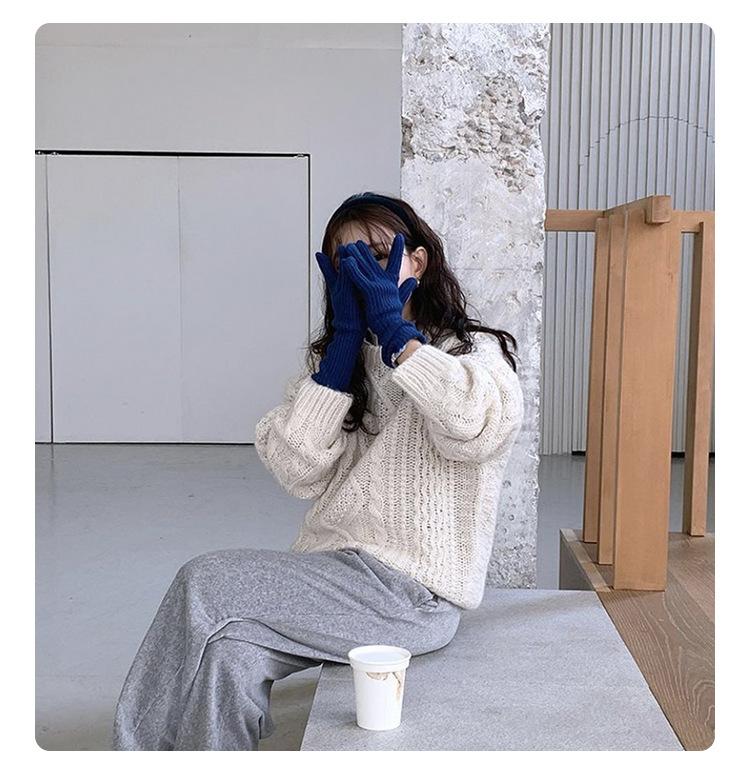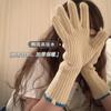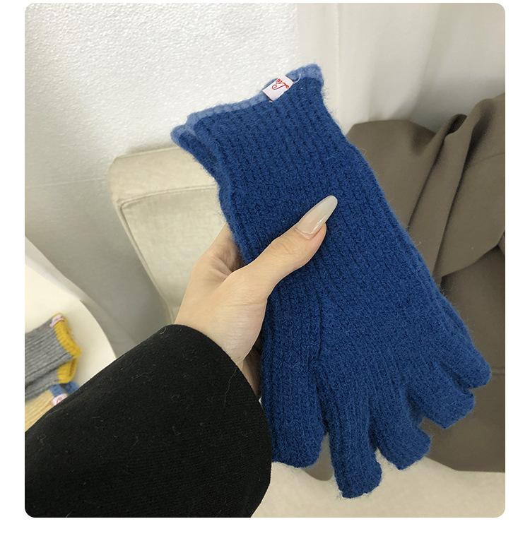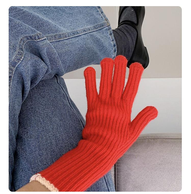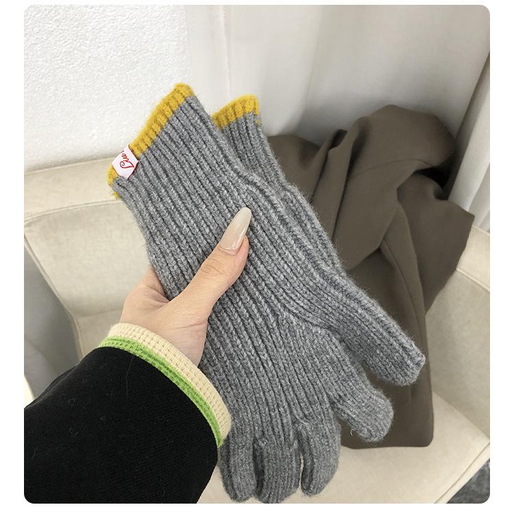 Pantalla táctil ~ Guantes de algodón coreano para mujer Invierno Lindo ins Cálido Montar Pareja Dedo Tejido Lana Estudiantes