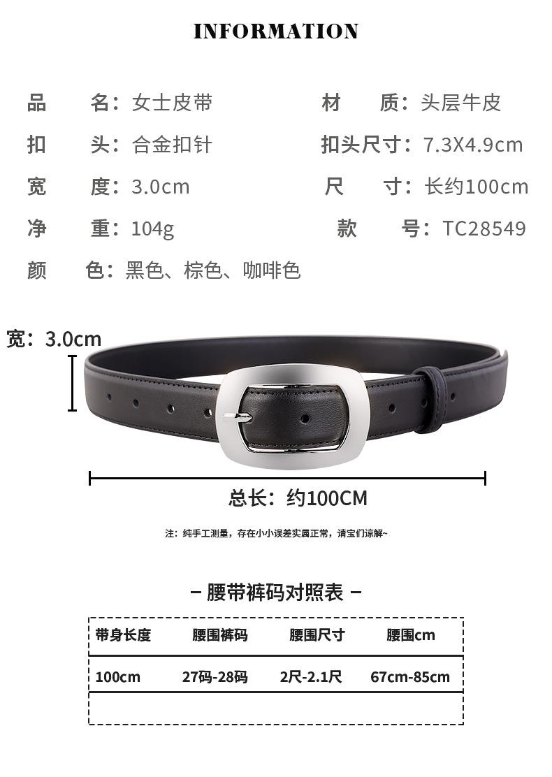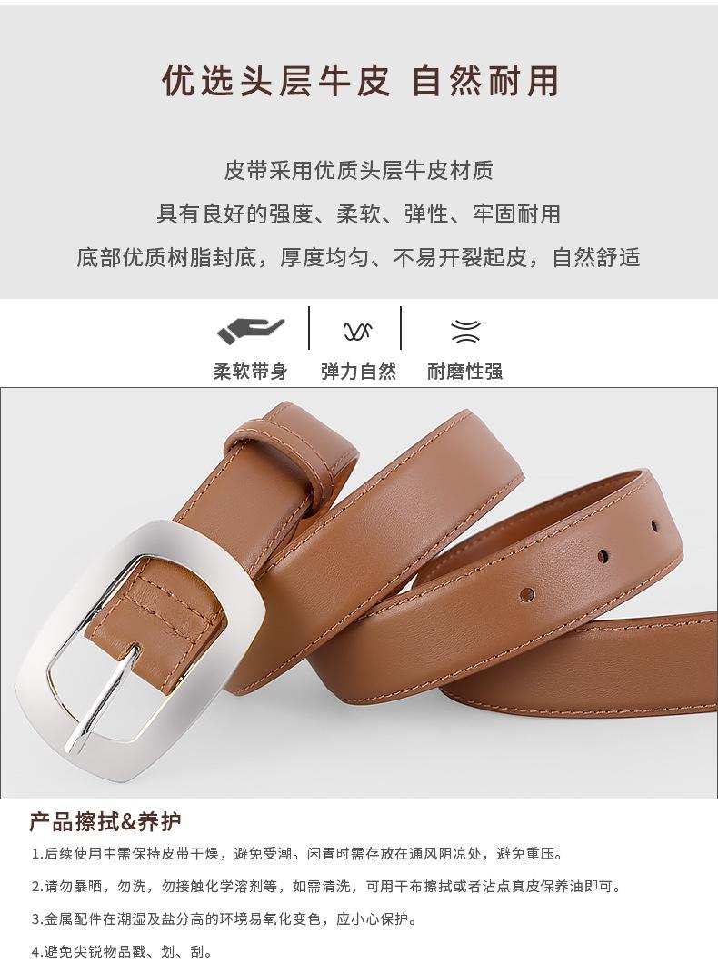 Cinturón de cuero nuevo para mujer, hebilla cuadrada Joker sencilla, decoración con jeans, fábrica en stock, venta directa.