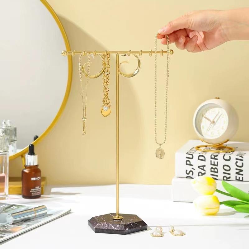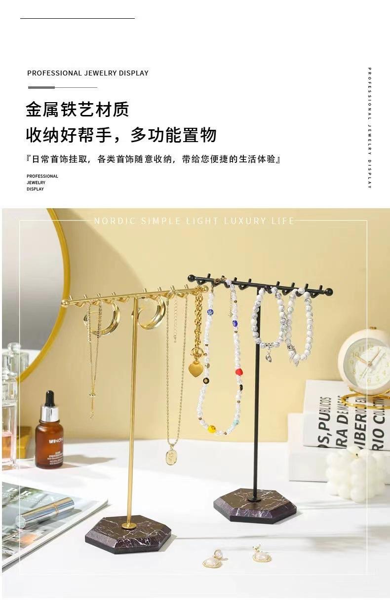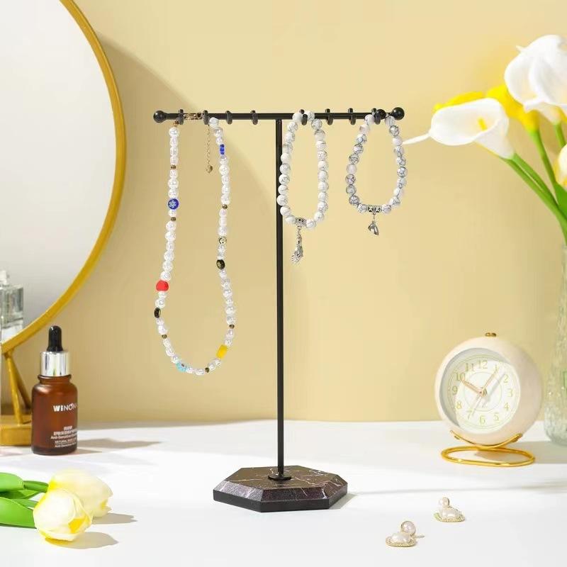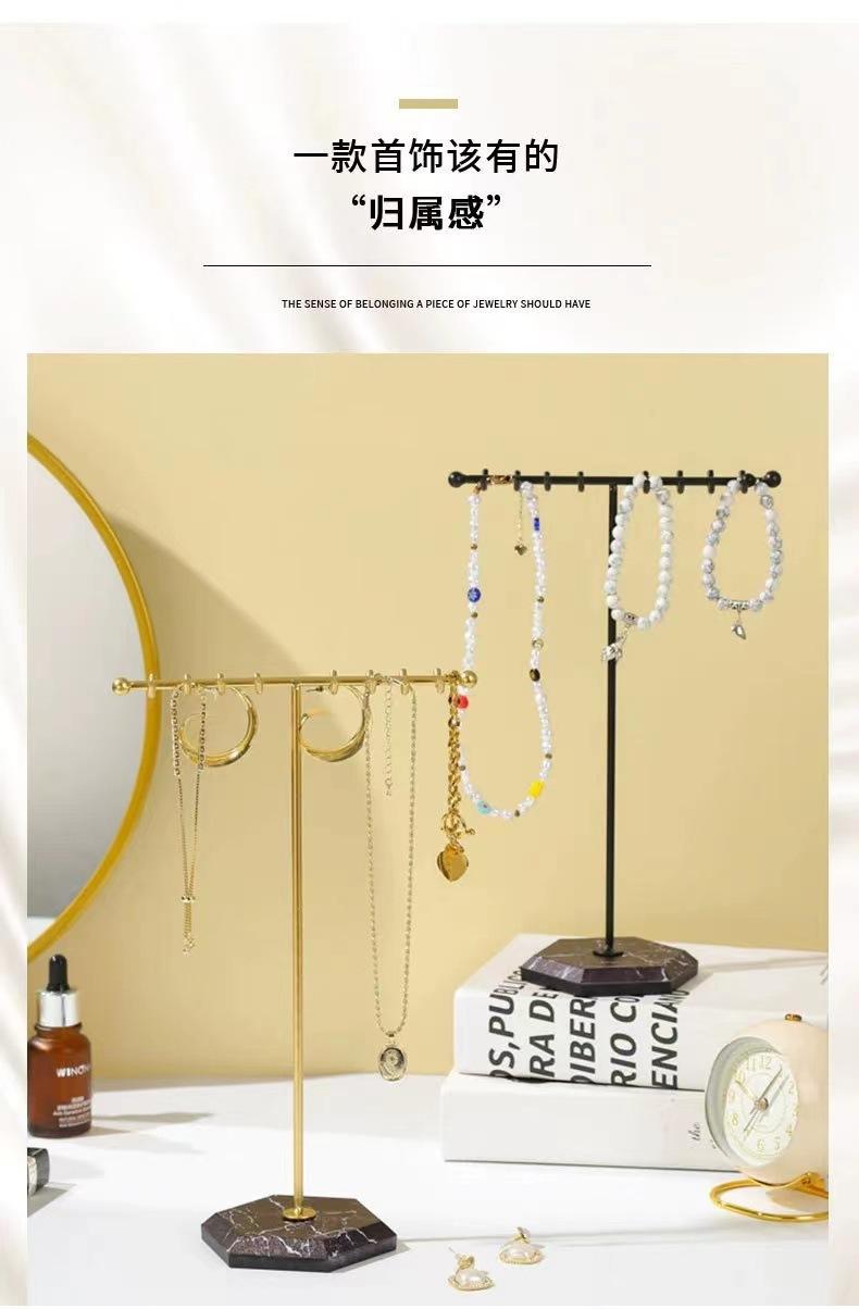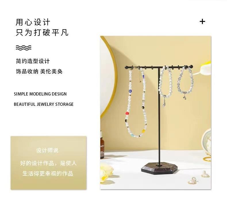 Exhibidor de Joyería de Mármol Europeo y Americano Simple en Forma de T de Doble Fila con Ganchos Exhibidor al por Mayor
