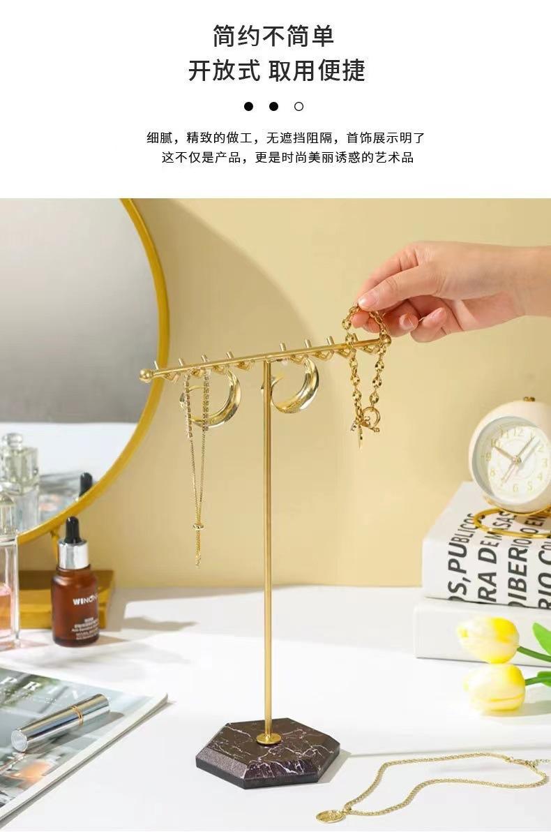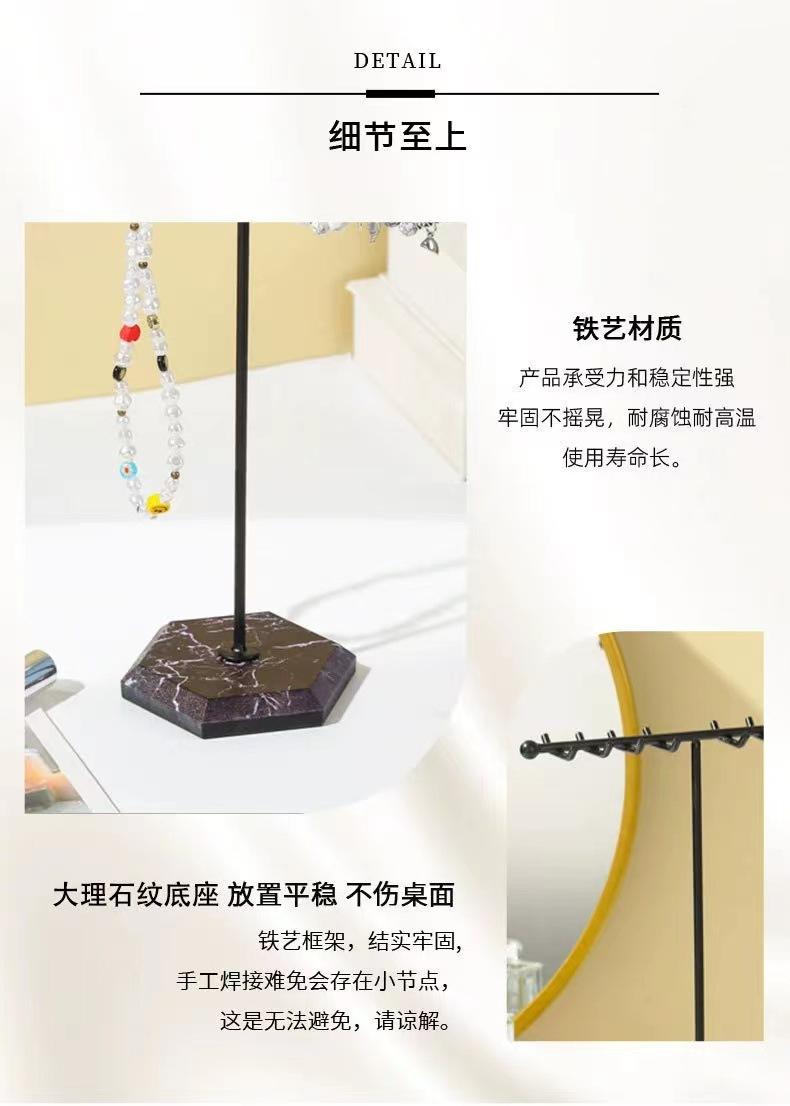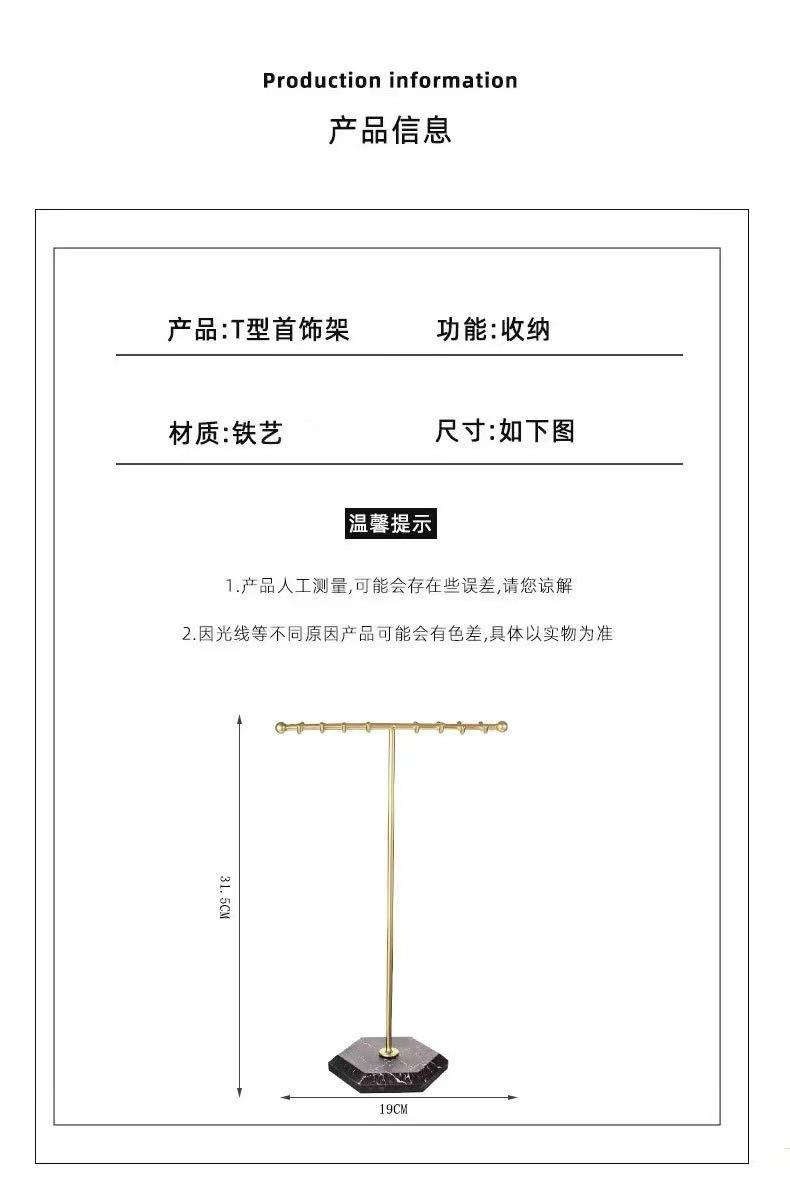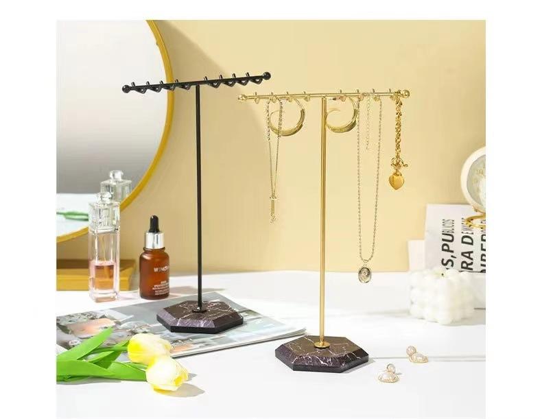 Exhibidor de Joyería de Mármol Europeo y Americano Simple en Forma de T de Doble Fila con Ganchos Exhibidor al por Mayor