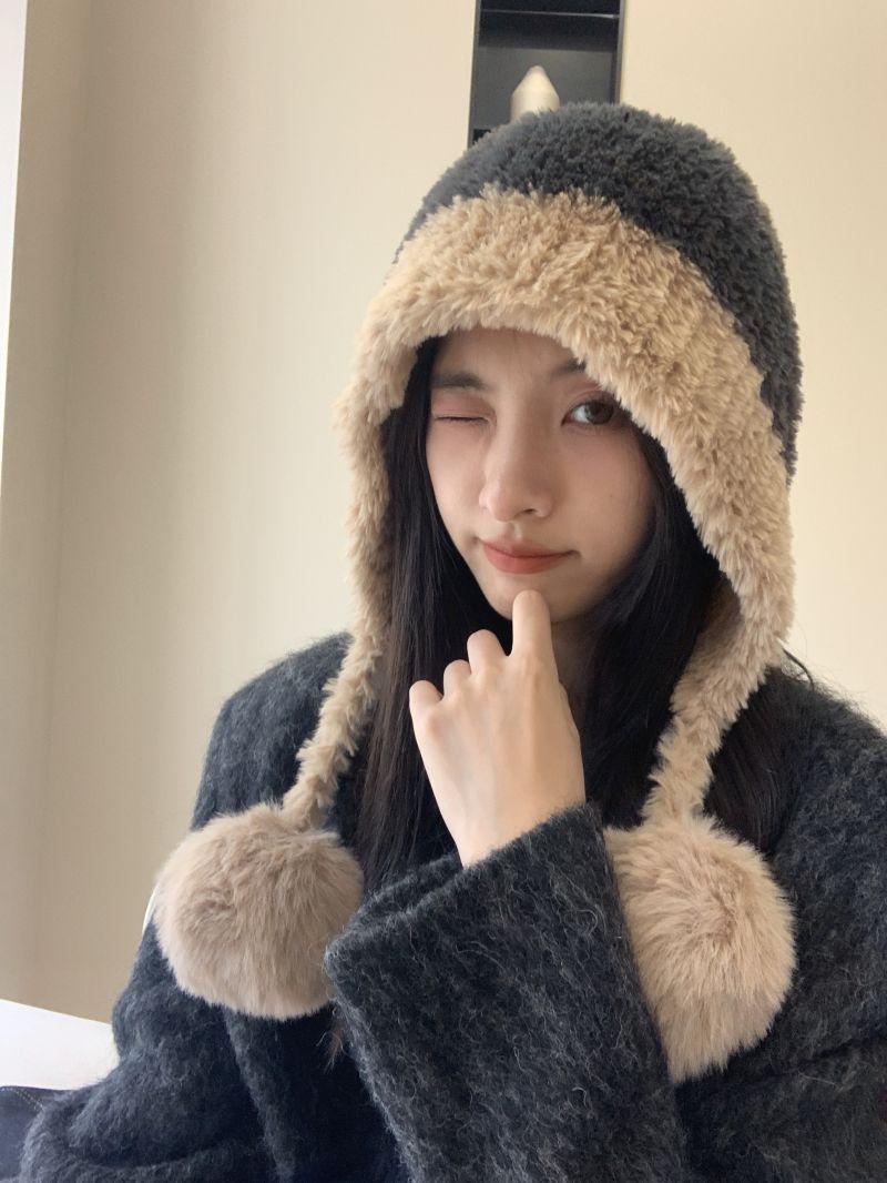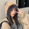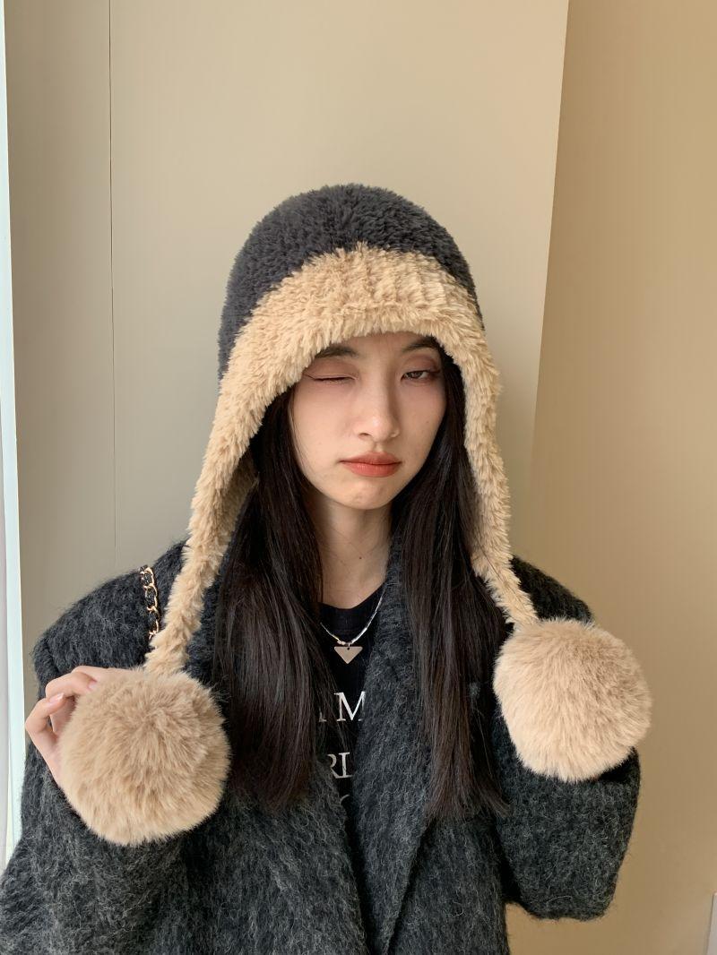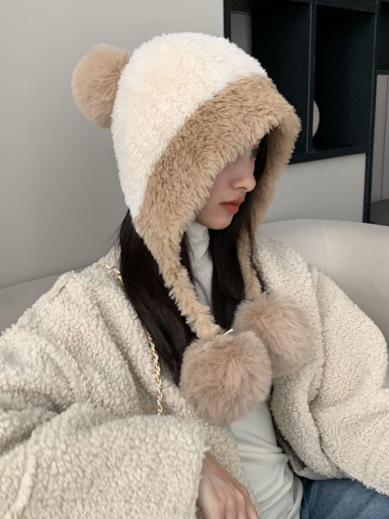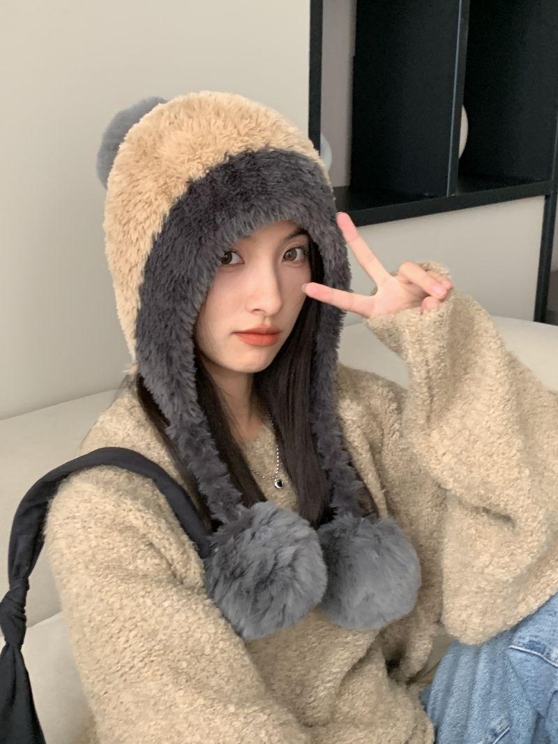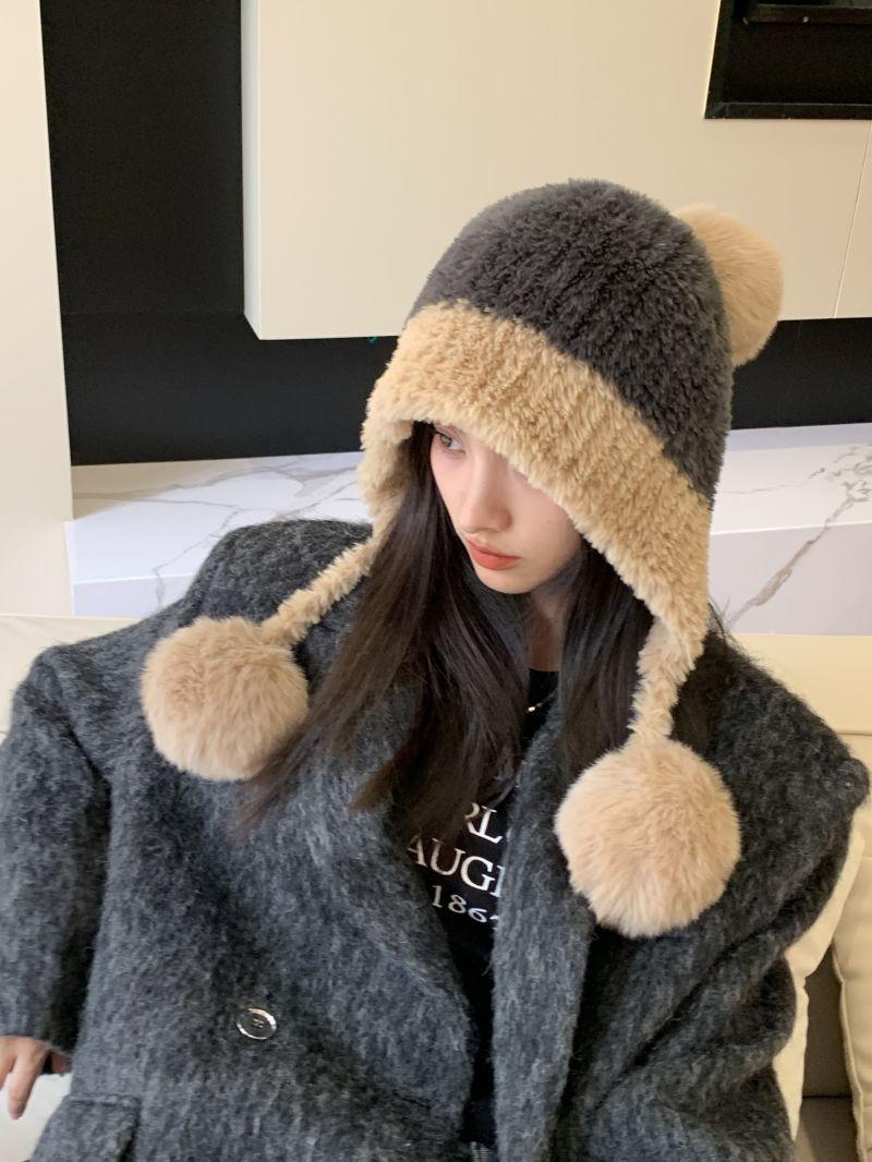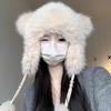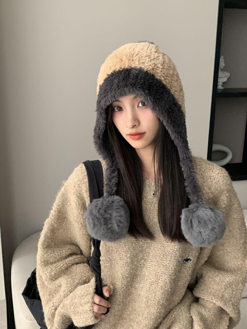 Gorro de felpa de oso para mujer, invierno, tejido de lana con costuras, para exteriores, para montar, protección para las orejas, gorro de punta, sombrero Lei Feng, sombrero cálido