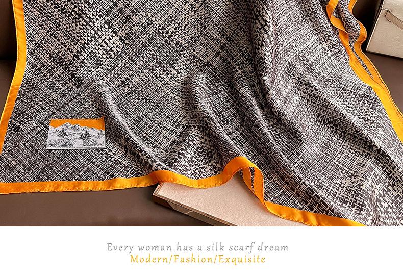 Bufanda de Seda Blanca y Negra para Mujer Primavera, Otoño e Invierno Combinación Camisa Protección de Cuello Larga Delgada Toalla de Playa Bufanda Oversize