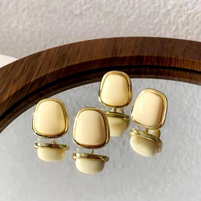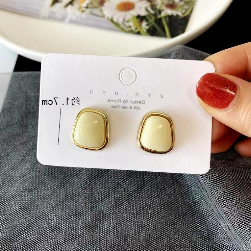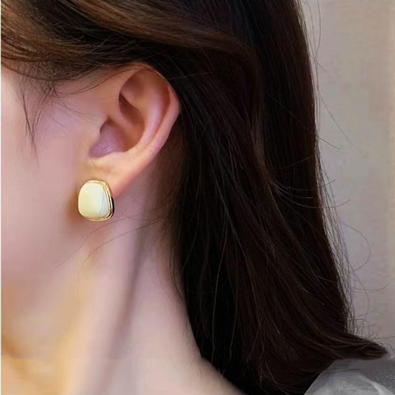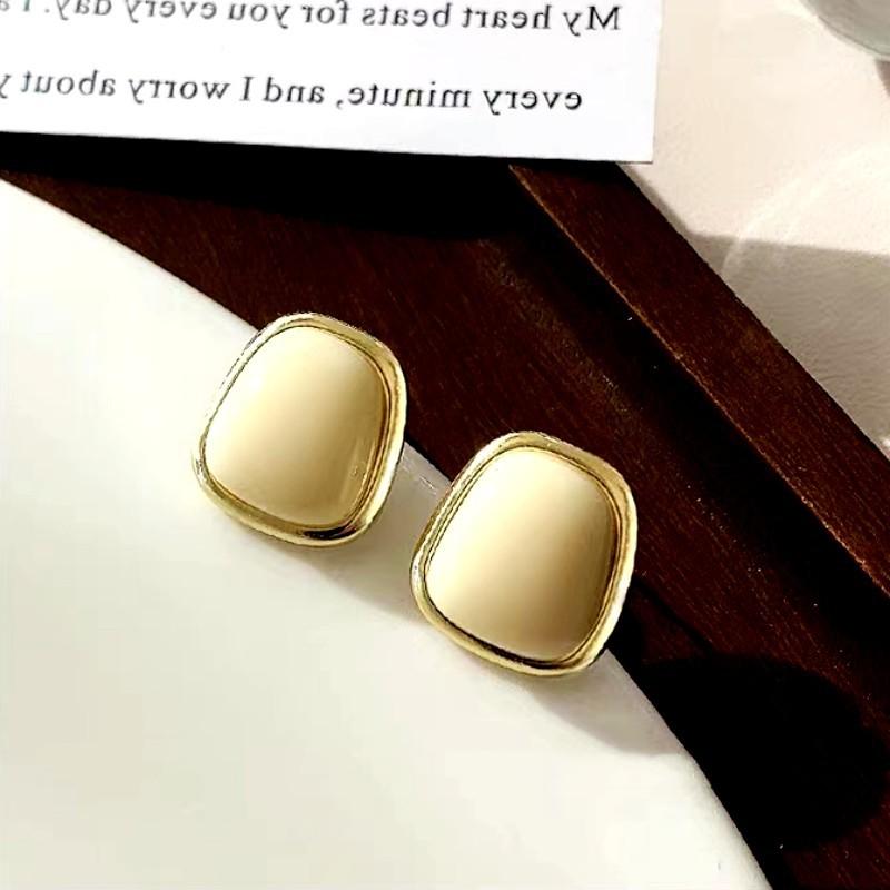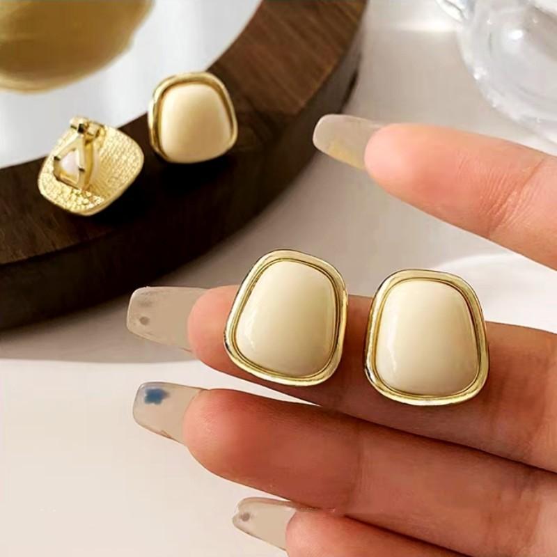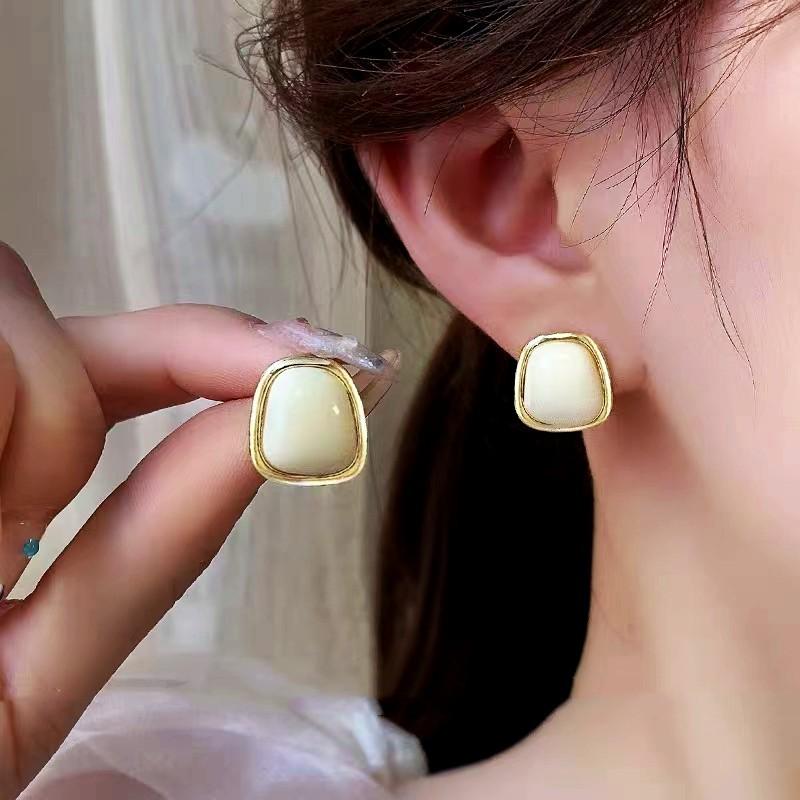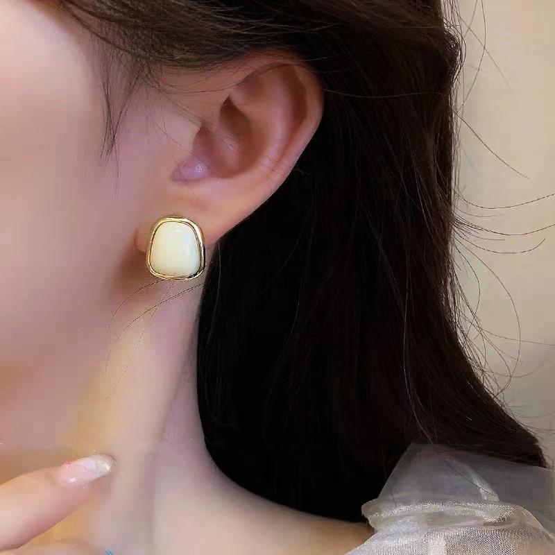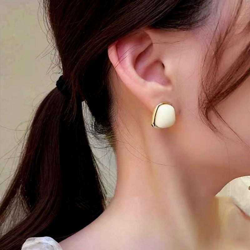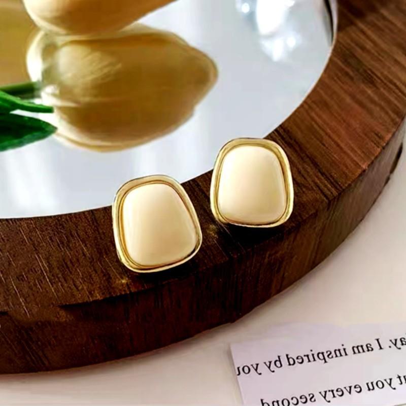 Aretes Geométricos Blanco Leche de Temperamento Simple y Elegante para Mujer, Aretes de Celebridad de Internet para Ir al Trabajo a la Moda, Nueva Tendencia