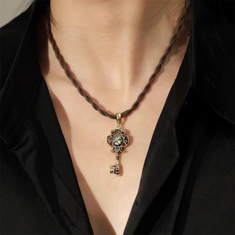 Colgante de Llave de Búho Diosa Atenea de Diseño Único para Mujer, Colgante de Collar Versátil Vintage de Artesanía Pesada Retro a la Moda